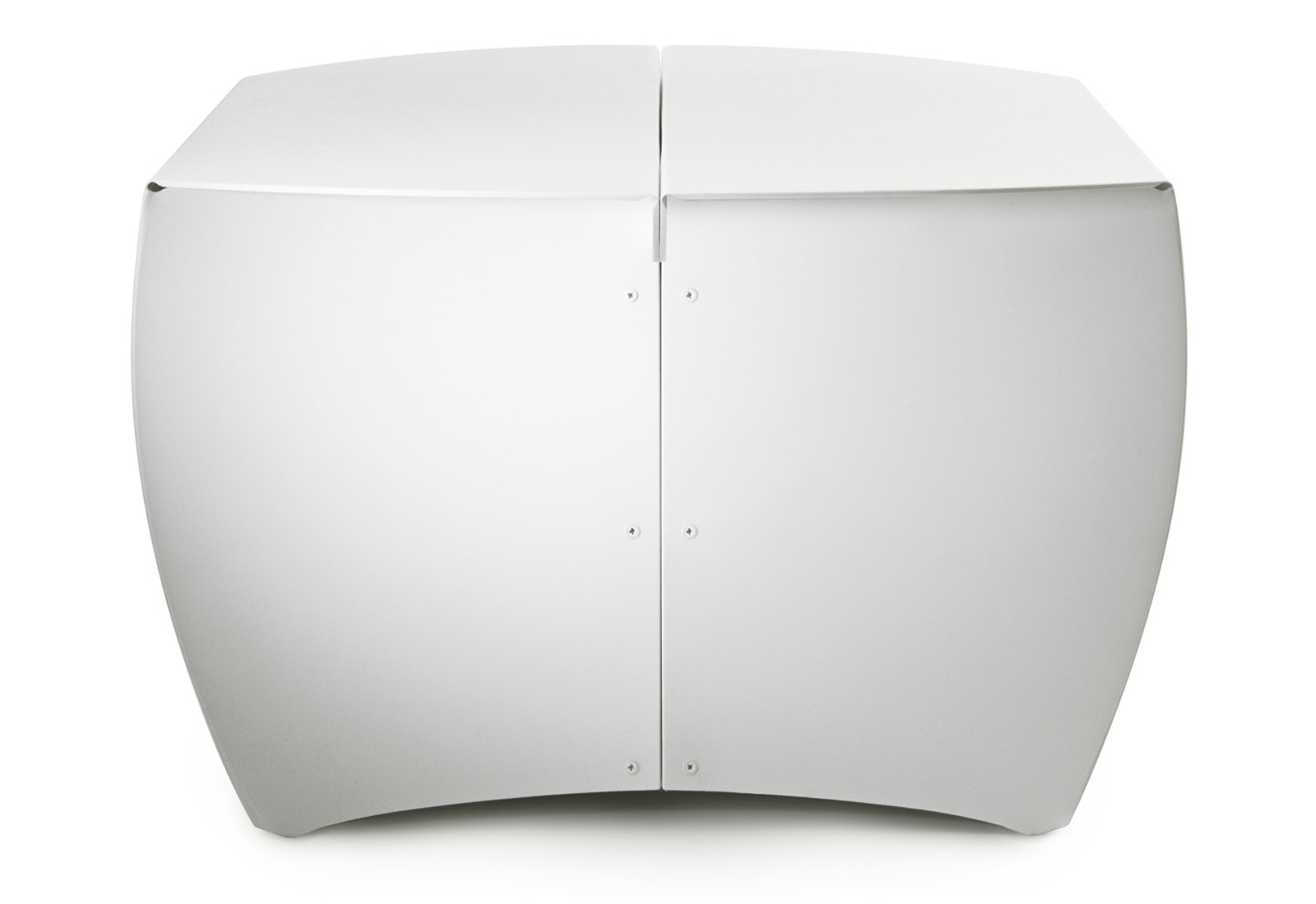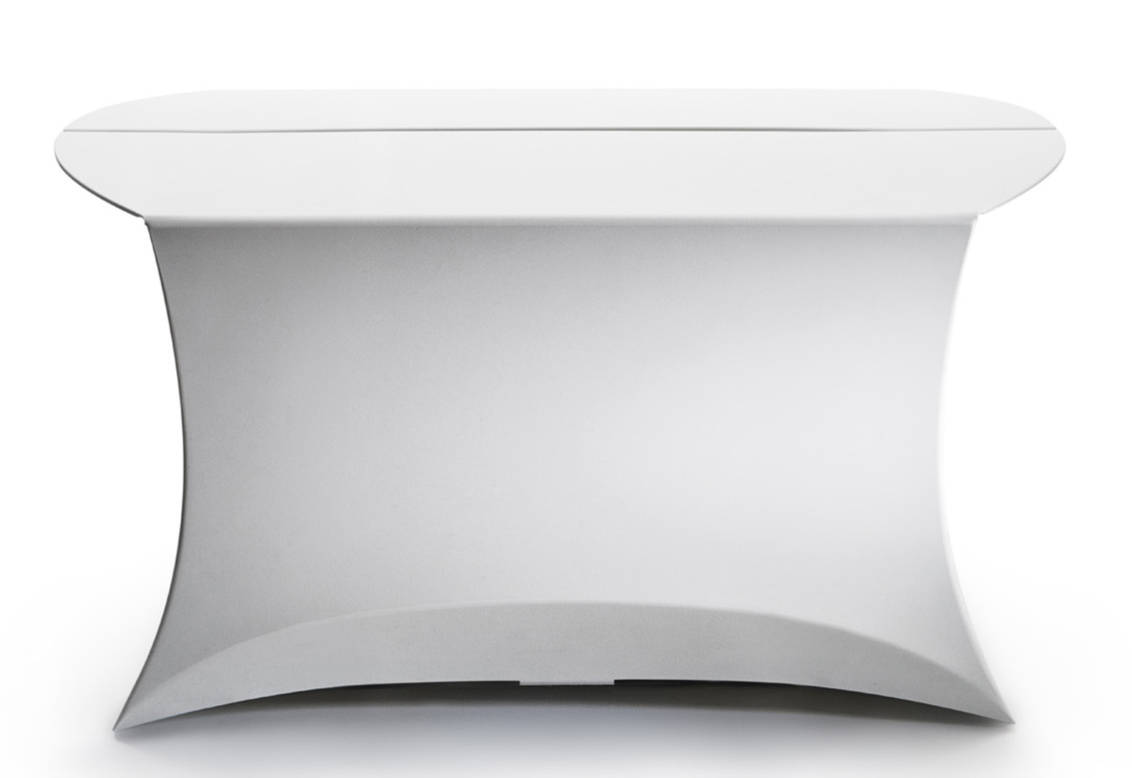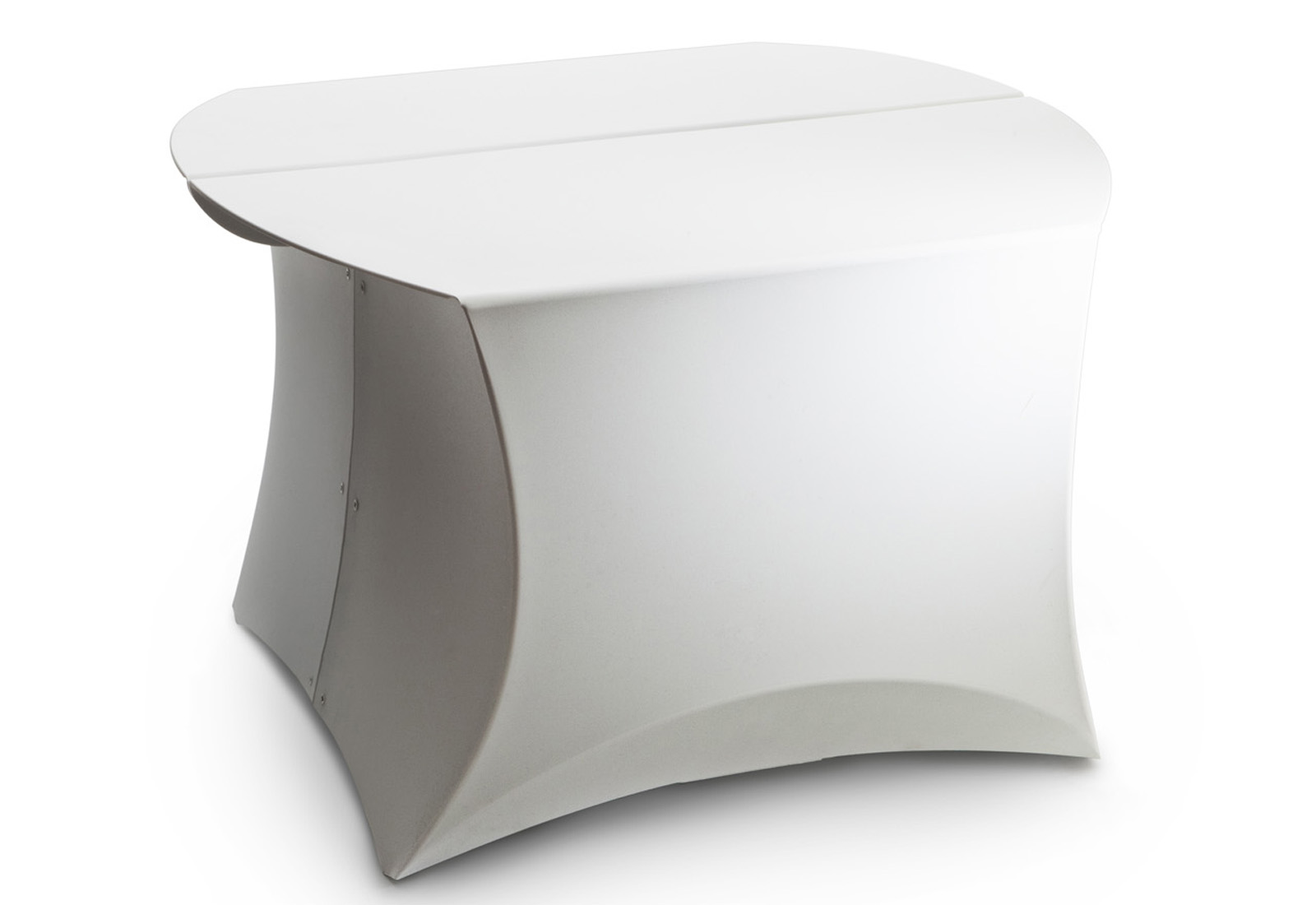 Die wohl einzigartigste Eigenschaft des Coffee Tisches ist die jederzeit komprimierbare Außenhülle. Zusammengelegt ist der Coffeetisch lediglich 1,8 cm dick und lässt sich platzsparend lagern.