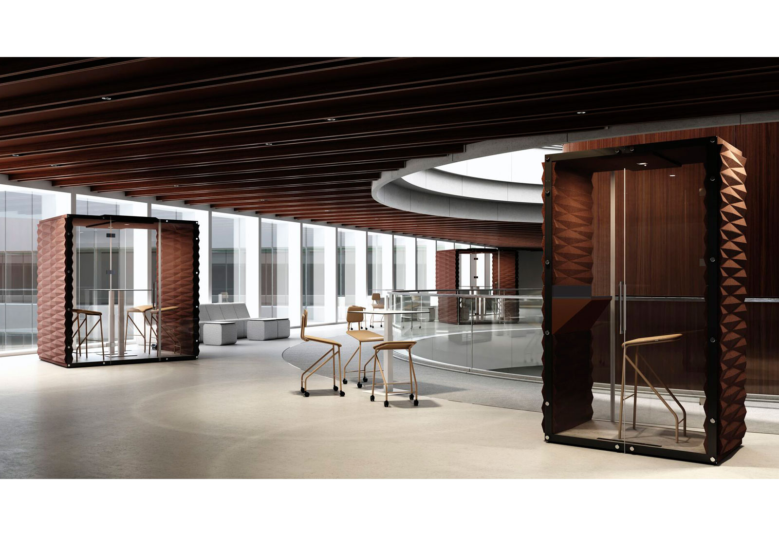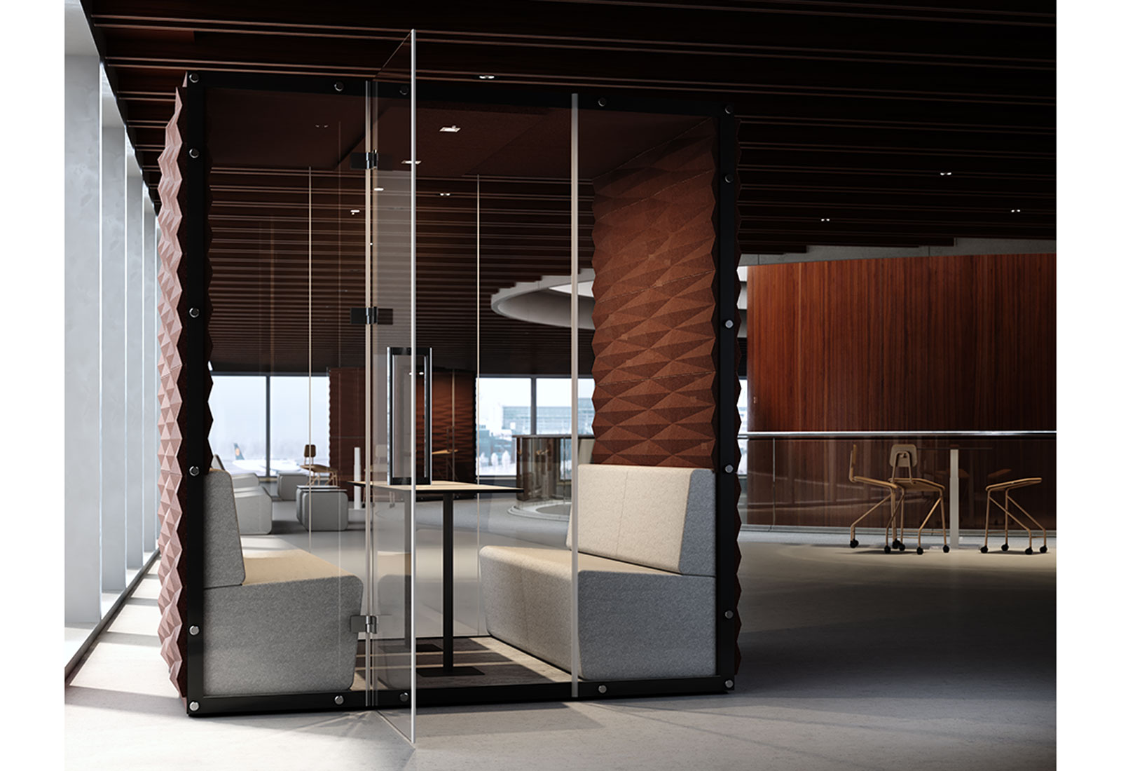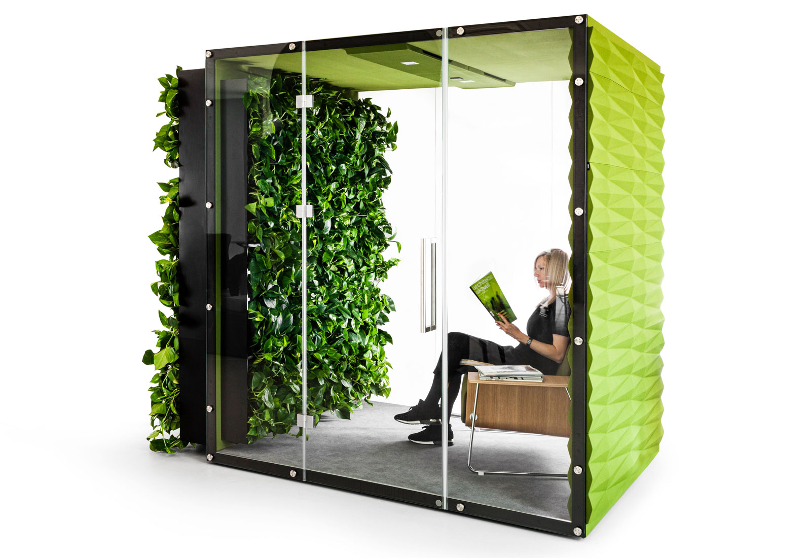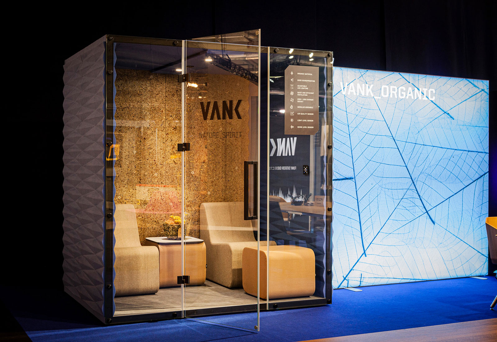 Die Ausstattung lässt keine Wünsche offen. Außen sind unsere Aktstikboxen glatt gepolstert und mit SONUS-Stoff bezogen, der sich durch seine schallabsorbierenden Eigenschaften auszeichnet. Bei der Farbauswahl der Akustikstoffe steht eine große Palette zur Auswahl zur Verfügung. Die Grundausstattung unserer VANK Raumeinheiten verfügt über ein leises Lüftungssystem, hochwertige LED-Beleuchtung und Anschlüsse, die nach Wünschen der Benutzer konfiguriert werden können. Die Akustikboxen für eine Person sind mit einem Laptopfach ausgestattet, während die größere Akustikboxen mit einem Tisch und Stühlen ausgestattet werden können. Sowohl der Korpus als auch der Bodenbelag unserer Akustikboxen verfügt über schallabsorbierende Eigenschaften.