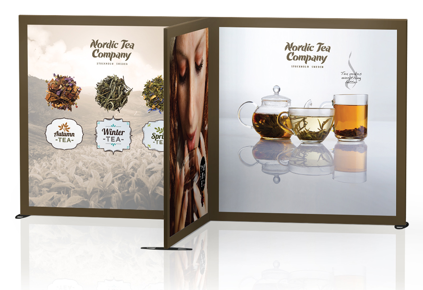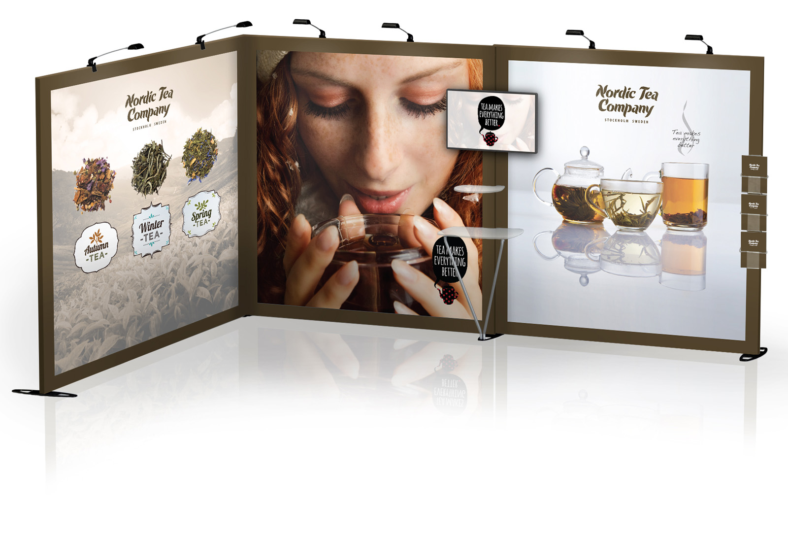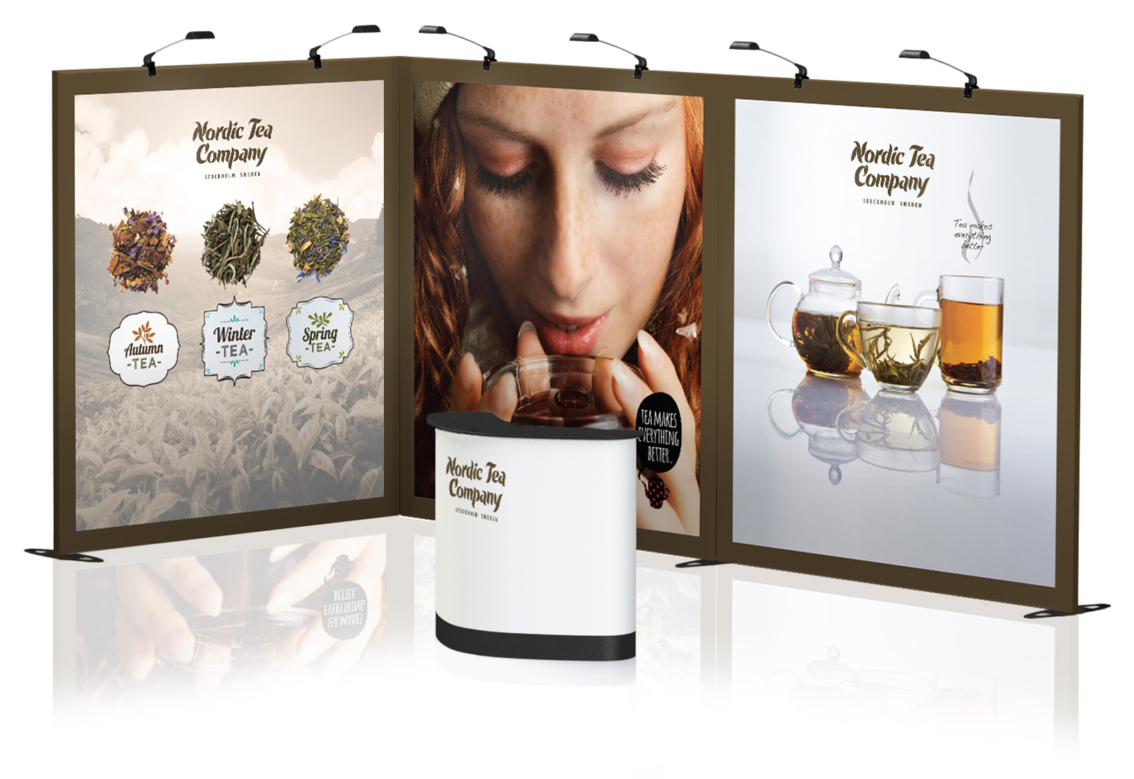 The Expand GrandFabric system technology offers you the possibility to quickly and easily install an individual booth. With the extensive system components of the GrandFabric family, an uncomplicated and quick deployment of your stand is possible in many locations. Every GrandFabric module, whether straight, curved, as a lightbox module or column segment, can be designed as a row, corner or head stand. However, with an Expand GrandFabric booth, you are not tied to a fixed booth surface. Since all system components can be expanded, interchanged and connected differently, the construction variations are almost infinite. So you can expand your stand with little effort, expand and tune to different purposes. The individual graphic covering is done on strech material that is simply pulled over the frame structure of GrandFabric and fixed to the underside of the system with a zipper. All Expand GrandFabric wall modules can be packed in a convenient transport trolley and transported and shipped in a handy format.