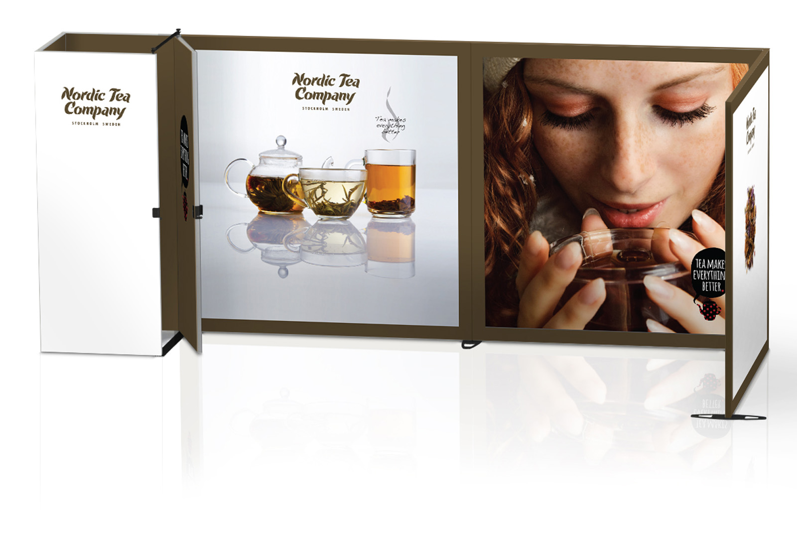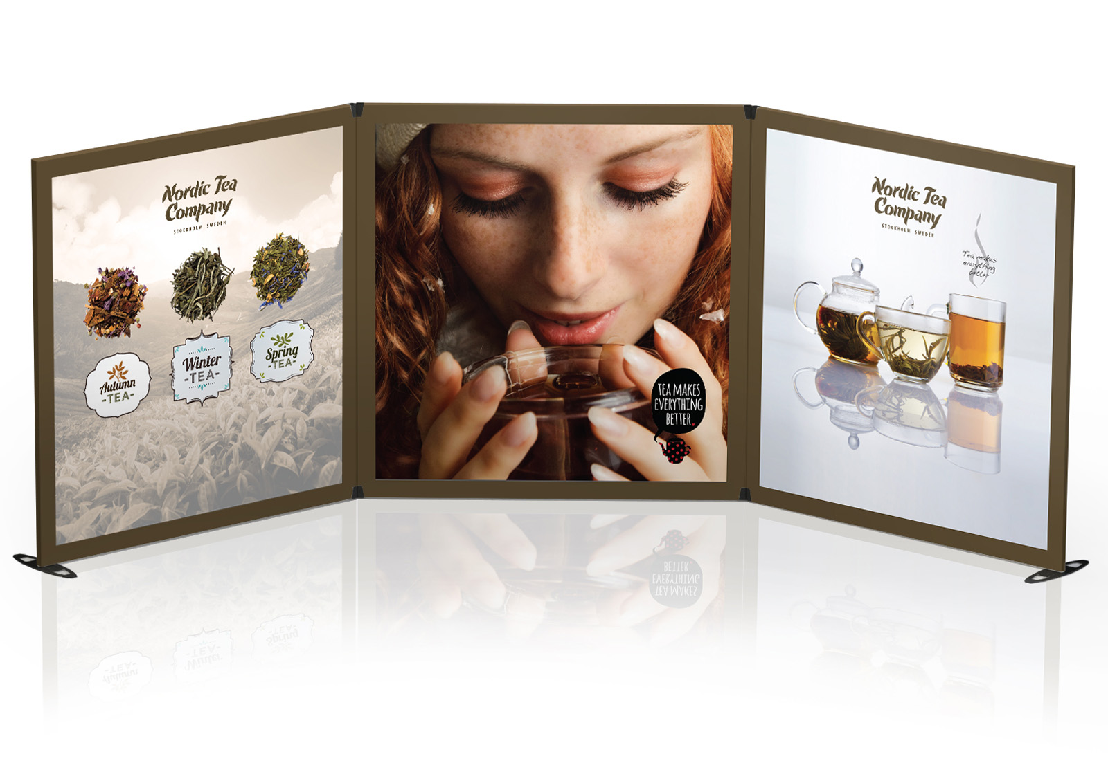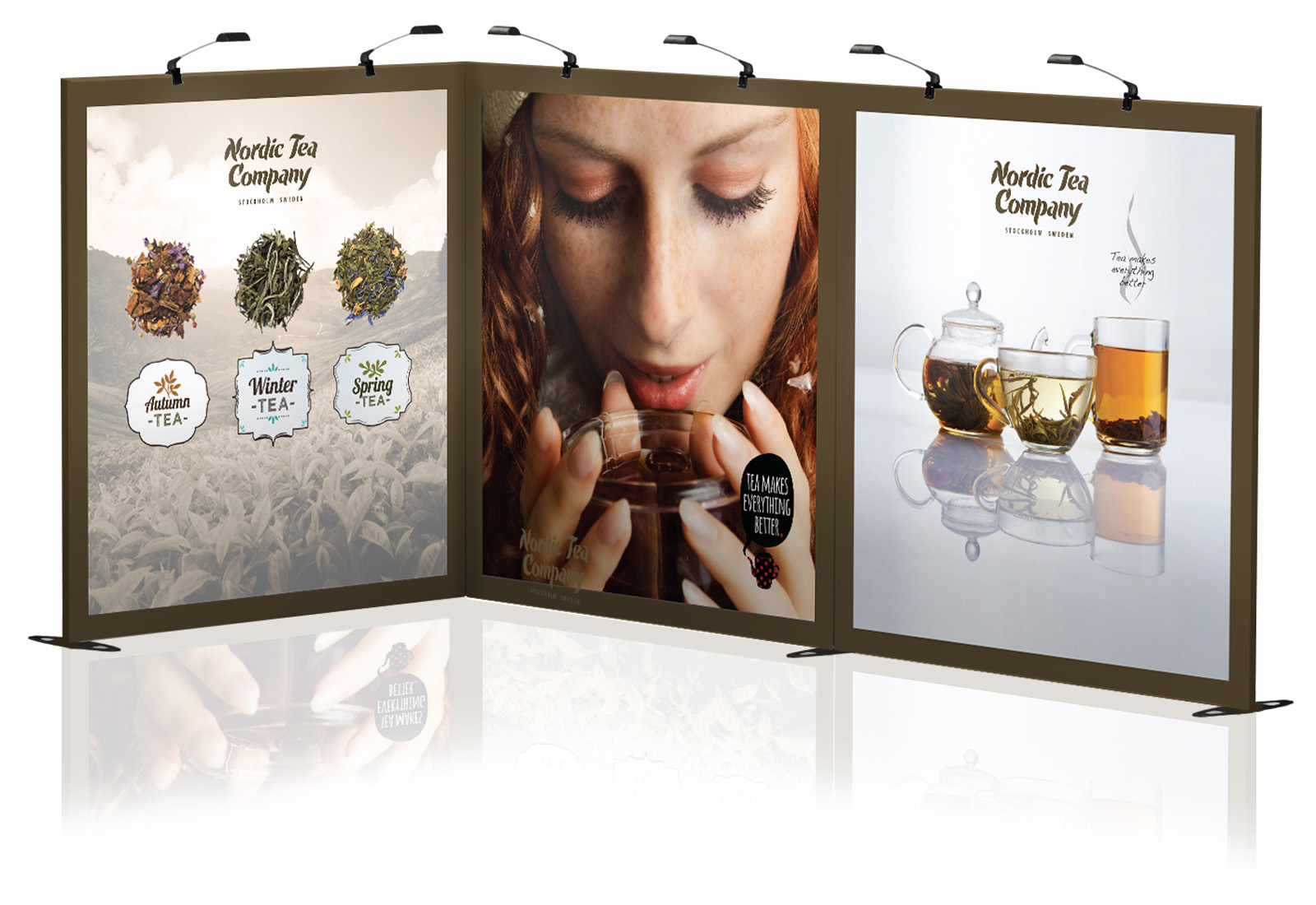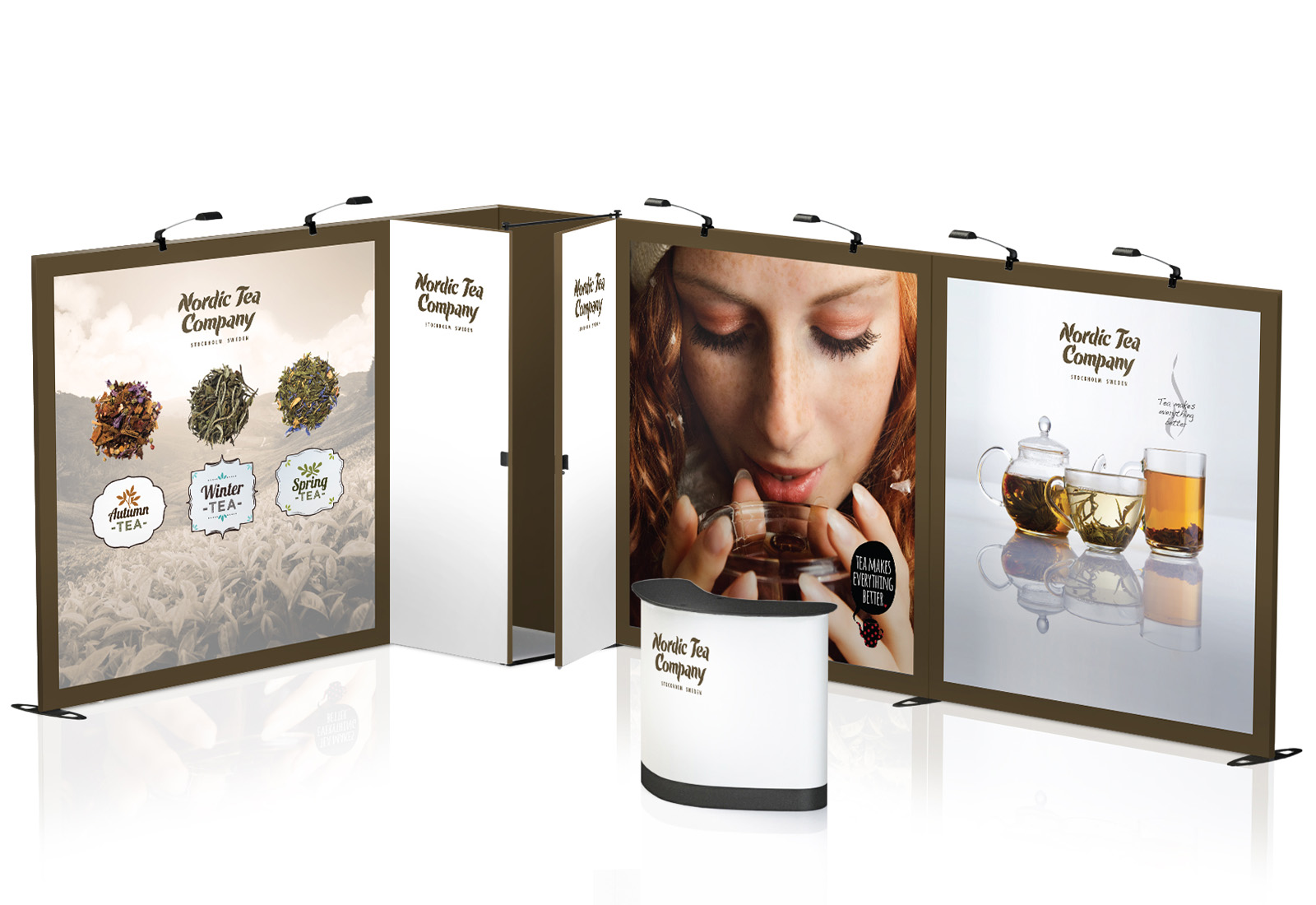 The Expand GrandFabric system technology offers you the possibility to quickly and easily install an individual booth. With the extensive system components of the GrandFabric family, an uncomplicated and quick deployment of your stand is possible in many locations. Every GrandFabric module, whether straight, curved, as a lightbox module or column segment, can be designed as a row, corner or head stand. However, with an Expand GrandFabric booth, you are not tied to a fixed booth surface. Since all system components can be expanded, interchanged and connected differently, the construction variations are almost infinite. So you can expand your stand with little effort, expand and tune to different purposes. The individual graphic covering is done on strech material that is simply pulled over the frame structure of GrandFabric and fixed to the underside of the system with a zipper. All Expand GrandFabric wall modules can be packed in a convenient transport trolley and transported and shipped in a handy format.