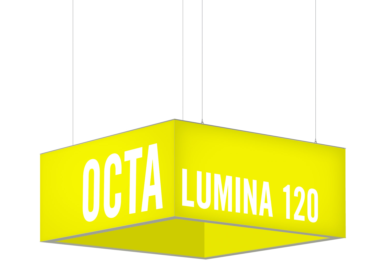OCTAlumina Messedisplays for a bright presentation of your advertising message are an eye-catcher at every trade fair. The illuminated displays with a profile depth of 40 mm, 80 mm and 120 mm are available in different designs. OCTAlumina illuminated displays are very popular because of their simple structure and their optical effect. OCTAlumina is a brand product of the Swabian manufacturer Octanorm and stands for high quality and best functionality. The light cubes benefit from prefabricated LED connectors, which can be quickly assembled by simple plug connections. The inside corner is marked. LEDs and cables are already preassembled ready to plug in. Possible are individual formats and different tread depths, which adapt to the spatial conditions. The Power LEDs provide extra bright light, so that OCTAlumina light cube are always an eye-catcher. 220 lumens per light point put the advertising message in the best possible light. The light color is cool white. The frame profiles are reusable and available in many colors of the RAL range.