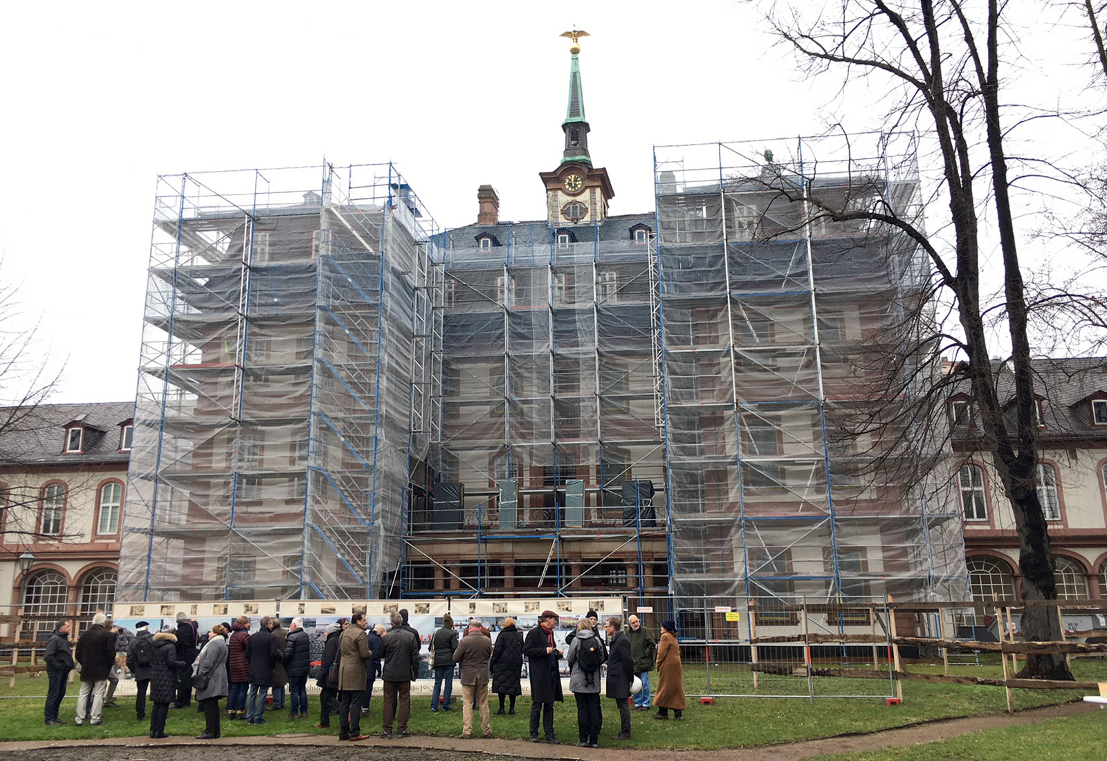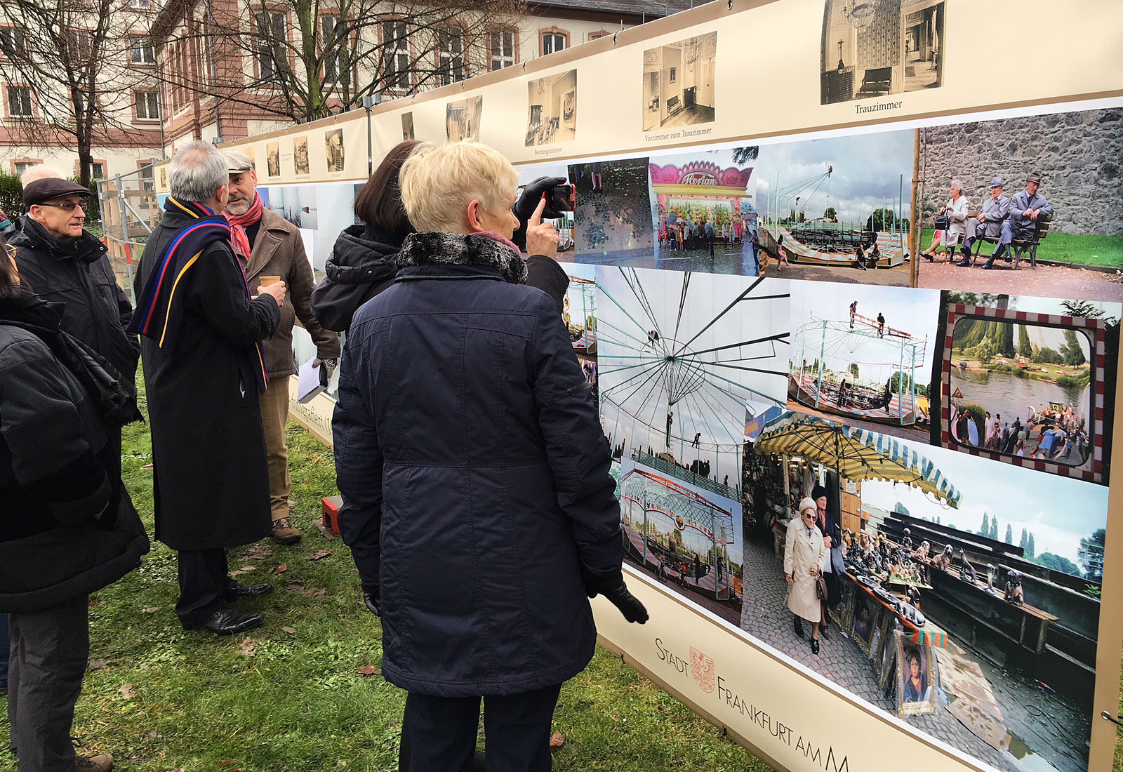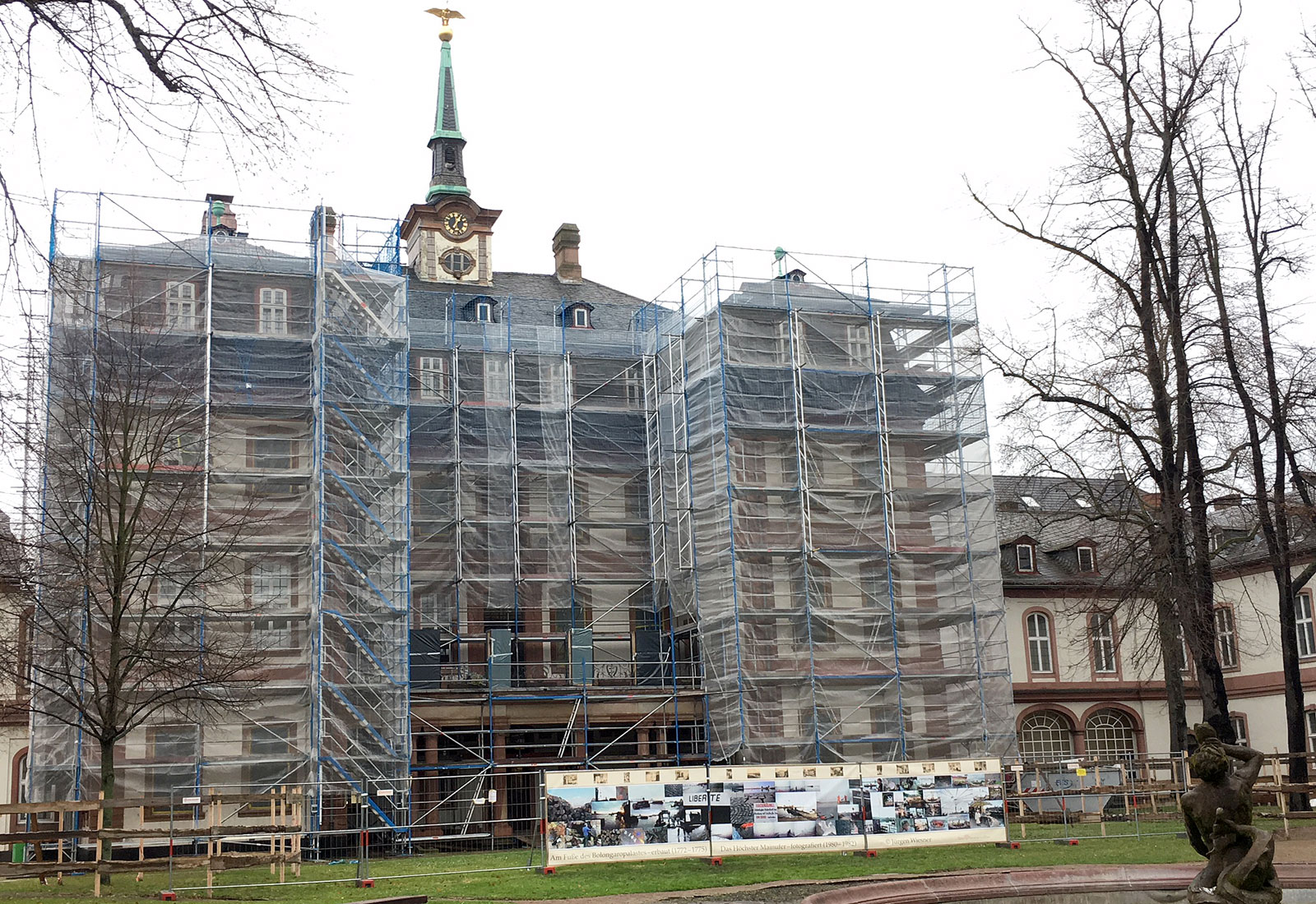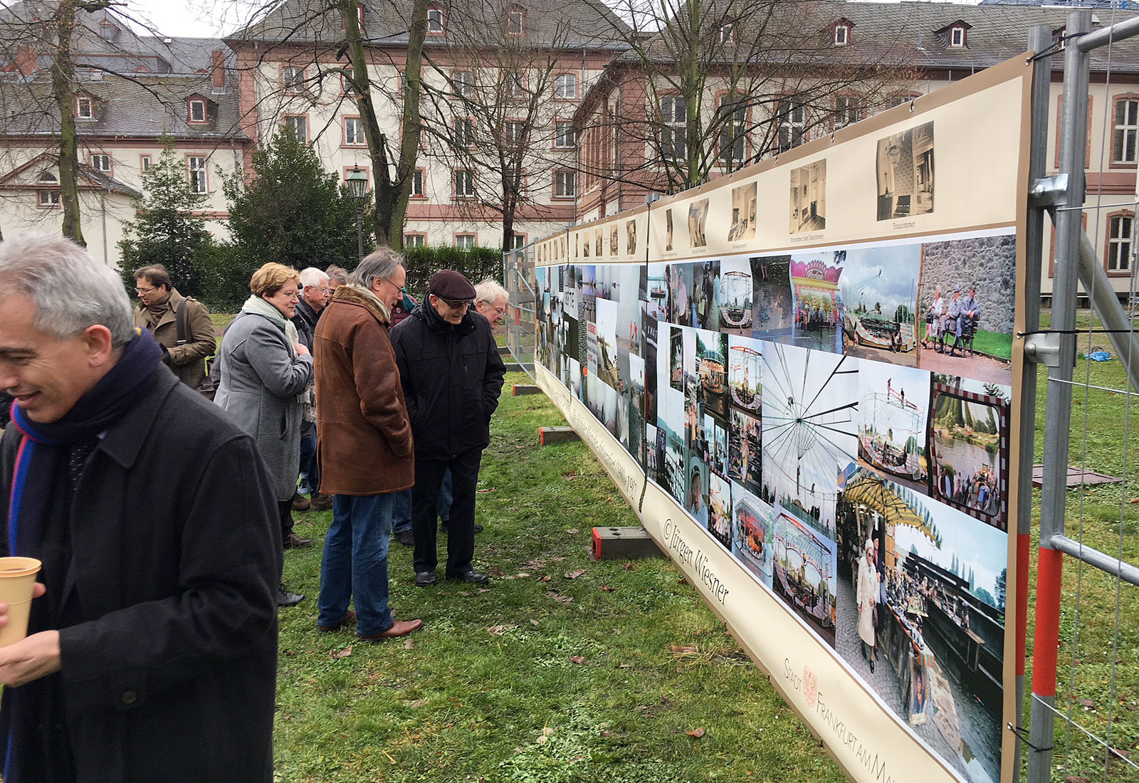 The refurbishment work is gaining momentum in the Bolongaro Palace in Frankfurt / Höchst. Lord Mayor Peter Feldmann unveiled a "wall of thought" by the highest photography artist Jürgen Wiesner at the fence in the garden. The wall of thought was fabricated by the specialists of MARTINCOLOR on tarpaulin material and then mounted on site at the construction fence.