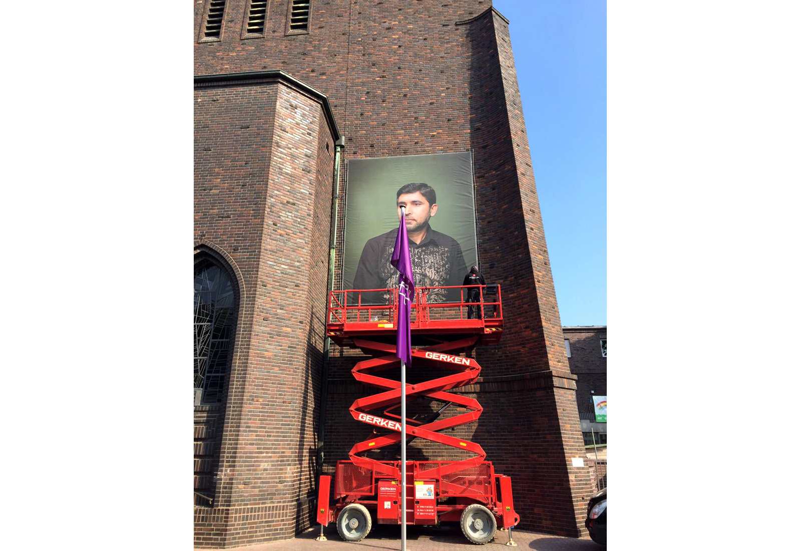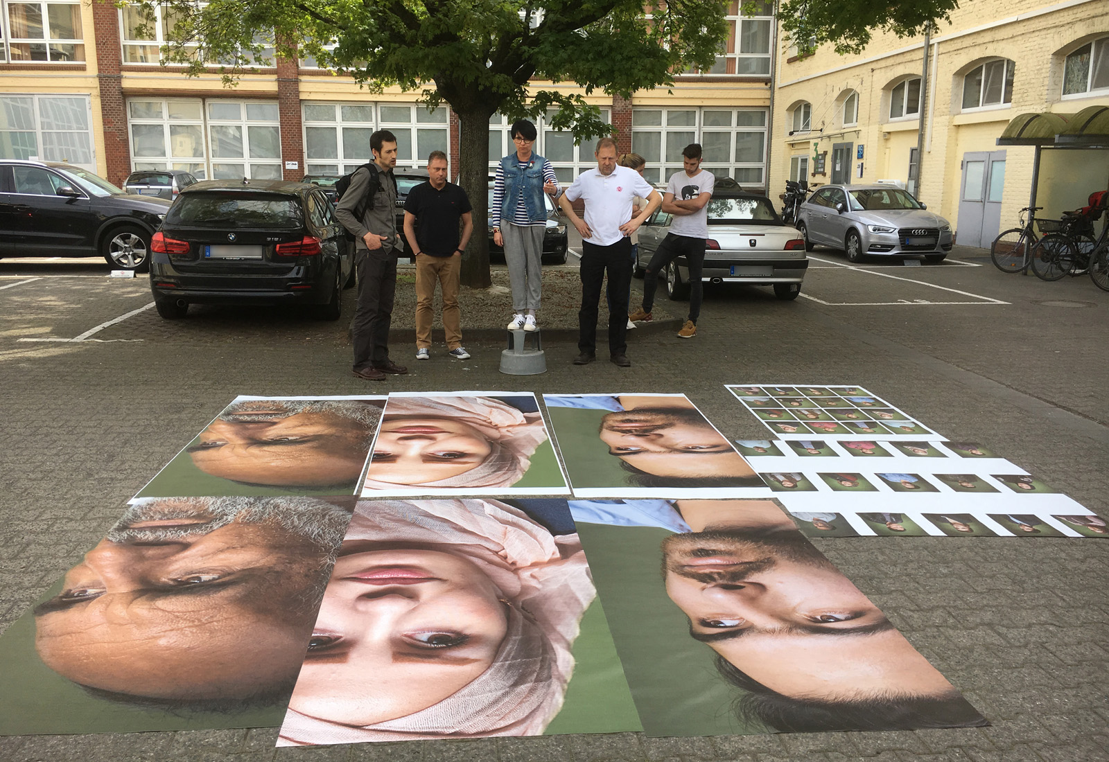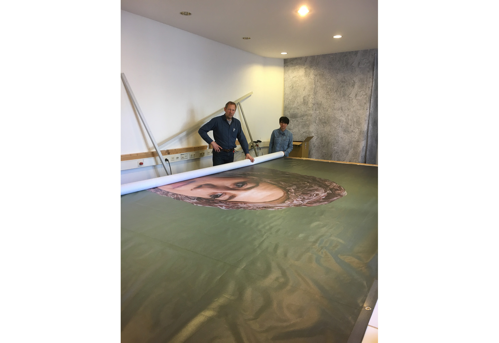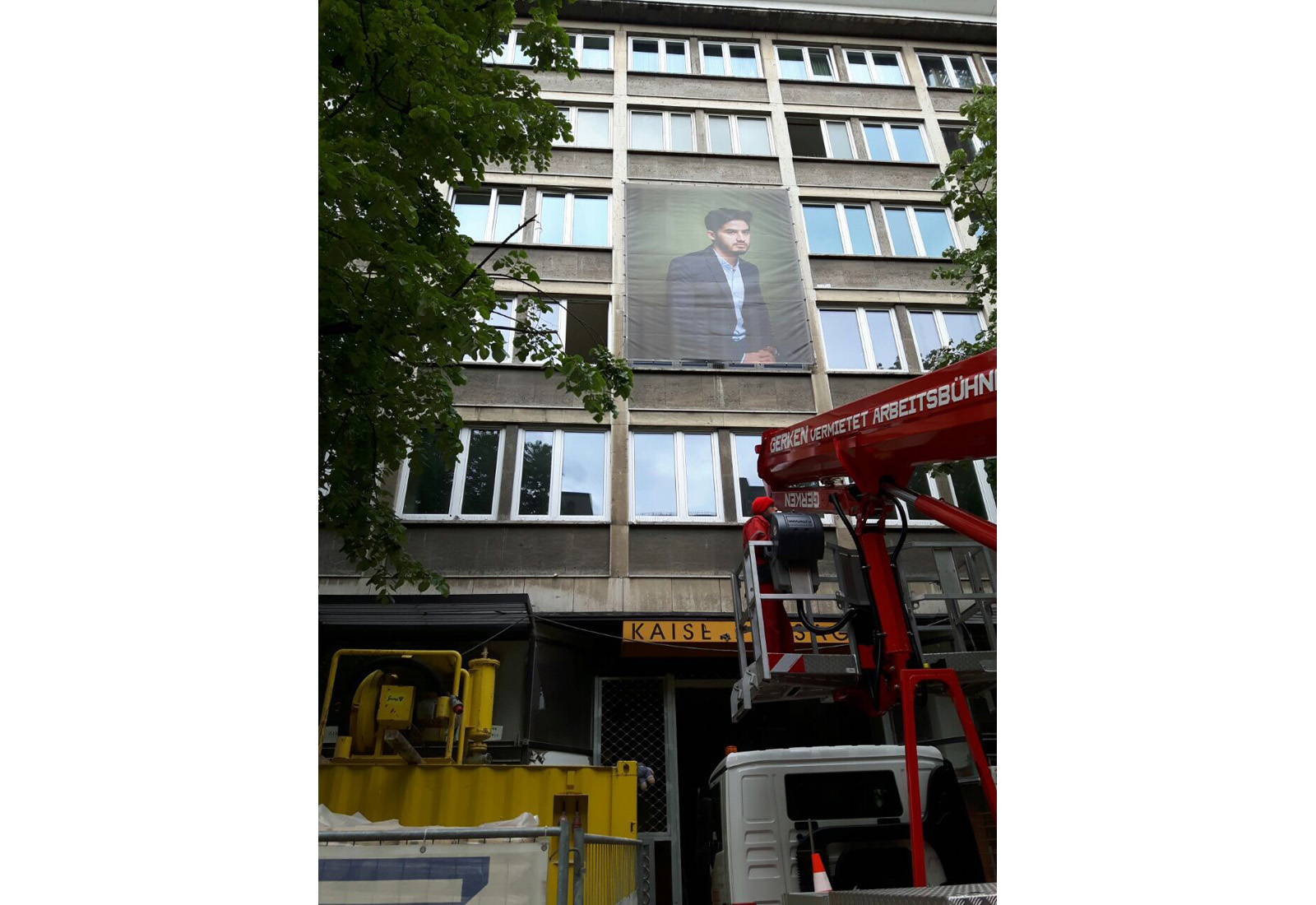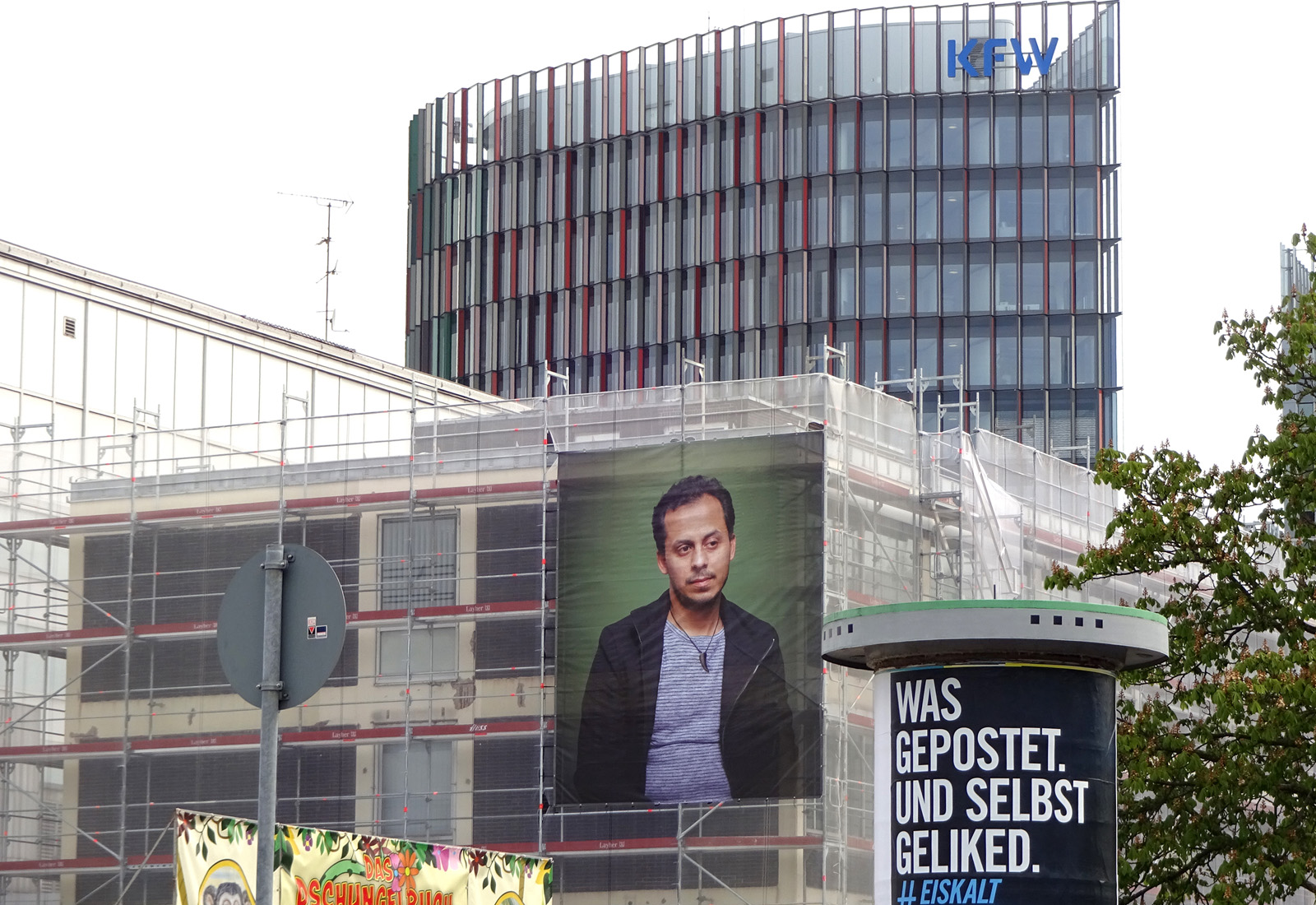 At the moment, 13 of his portraits can be seen as large formats on facades across Frankfurt. The art project titled "New Citizens" aims to bring those who arrived in Frankfurt from anonymity and give them a face. MARTINCOLOR supported this project as a sponsor, made all façade banners and installed them in the following locations: St. Matthew's Church, Holy Trinity Church, Literaturhaus, WINX-Tower, Kornarkardenmarkt, Friedberger Anlage Synagogue, Kaiserpassage, Schweizer Straße 5, Neue Mainzer Straße 57, Frankfurter LAB , Universitätsbibliotek Bockenheim, Central Station.