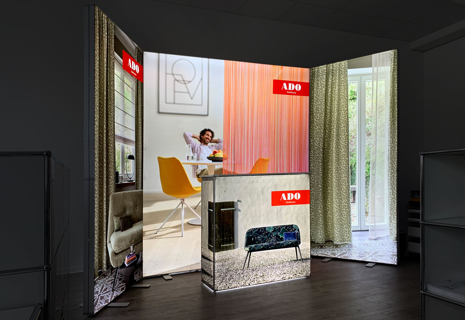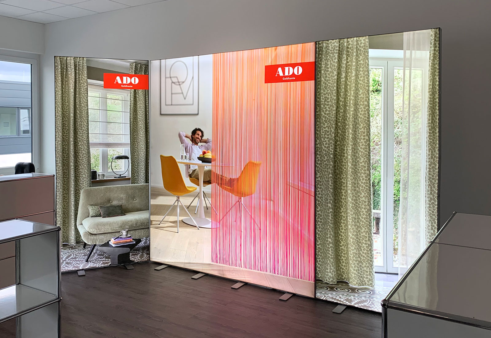Illuminated walls are ideal "mood brighteners" for your office space. We offer a variety of illuminated walls that are simple in structure, modular in use and flexible in use. Most of our light walls are made of aluminum, such as the light walls ALU LightUp produced by us for our customer ADO Goldkante. The aluminum frame structure is already equipped with LED modules ready for installation. The frame is simply put together and the feet are unscrewed. The display of our illuminated walls can be done on both sides, so that the luminous room dividers are also ideal as a "stand alone" solution. In addition to being used to beautify the office space, the ALU LightUp Lichwand can also be used as an LED trade fair stand at trade fairs and events and acts as an unmistakable eye-catcher.