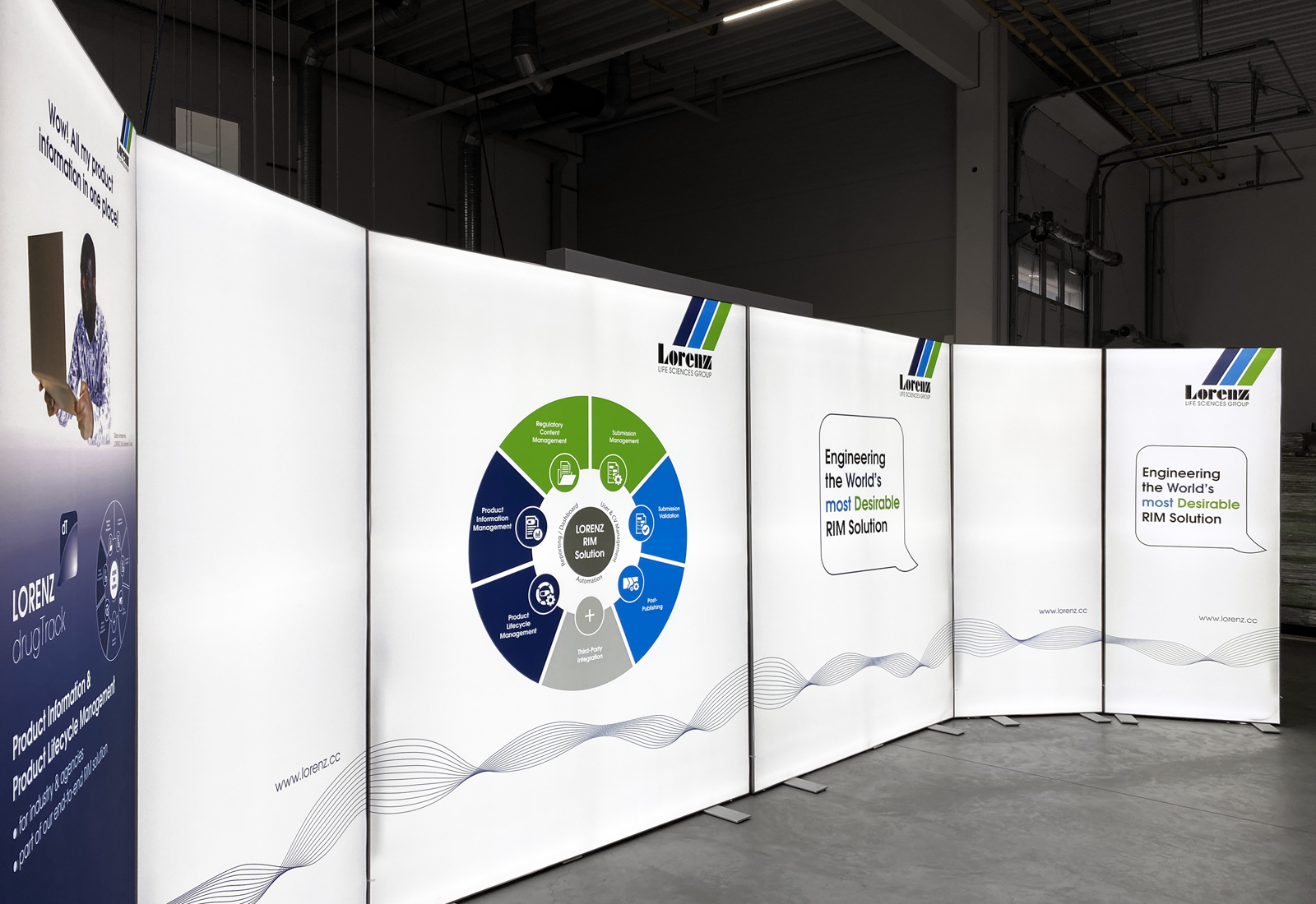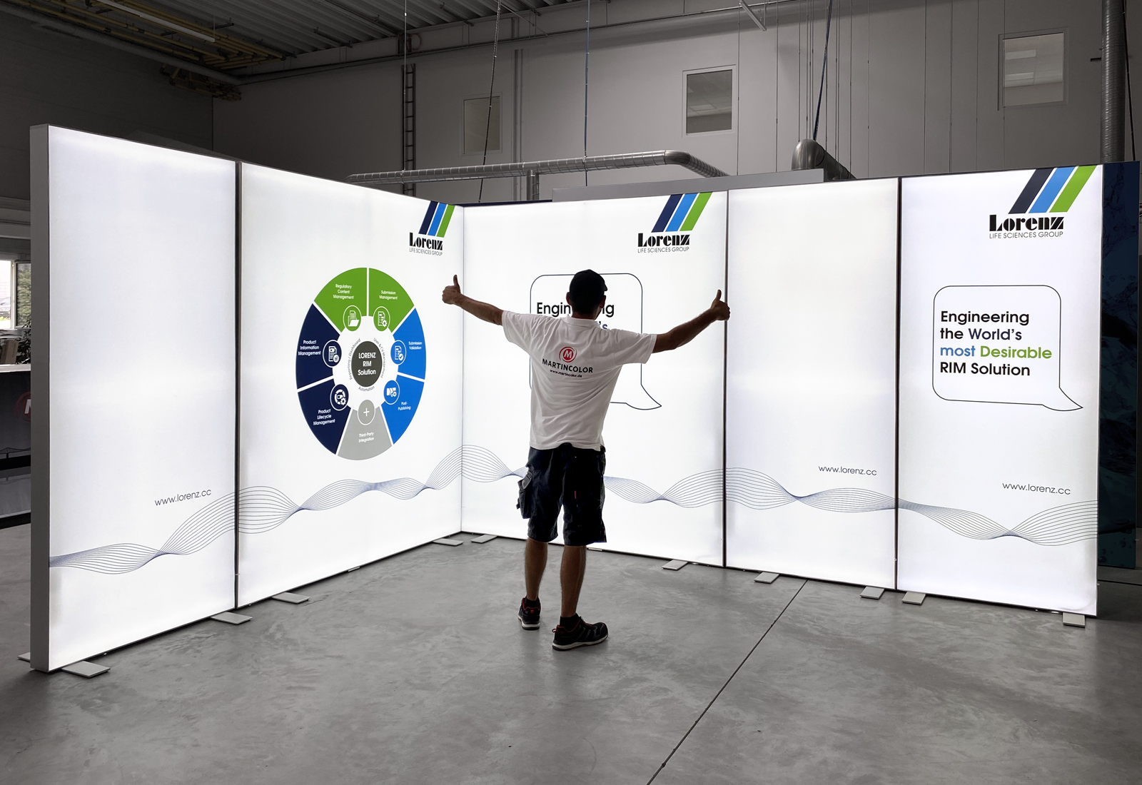 The luminosity of the ALU STAR LED measuring systems lined up in a row is impressive! No matter how you place the individual frames, the effect is and remains breathtaking! This is ensured by the power LEDs already integrated in the ALU frames. The systems are available in different widths and heights and can also be covered with individual graphics on both sides. Are you convinced by this first-class LED exhibition system? Then call us at +49 (0) 69 756080-0. We will be happy to advise you!