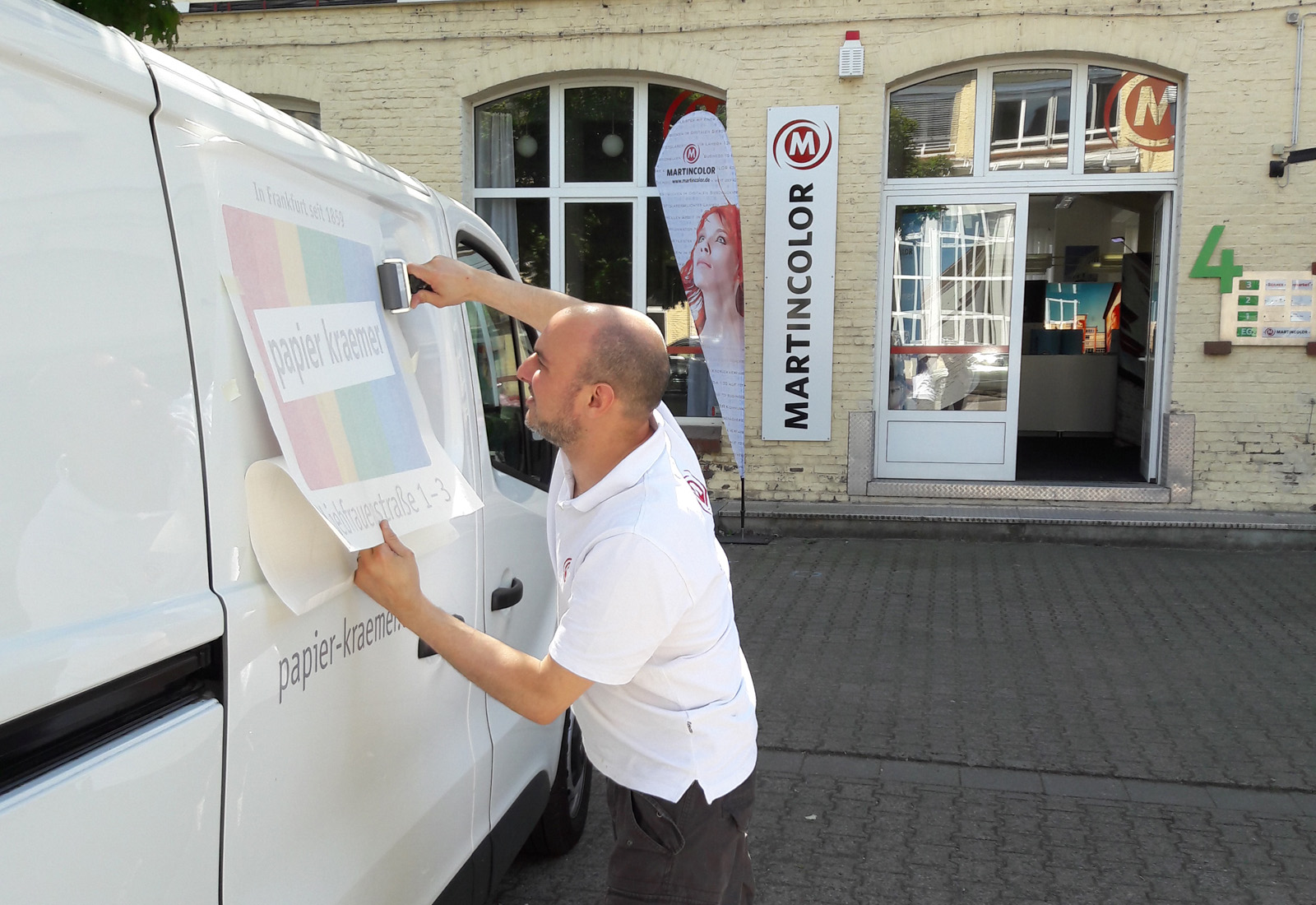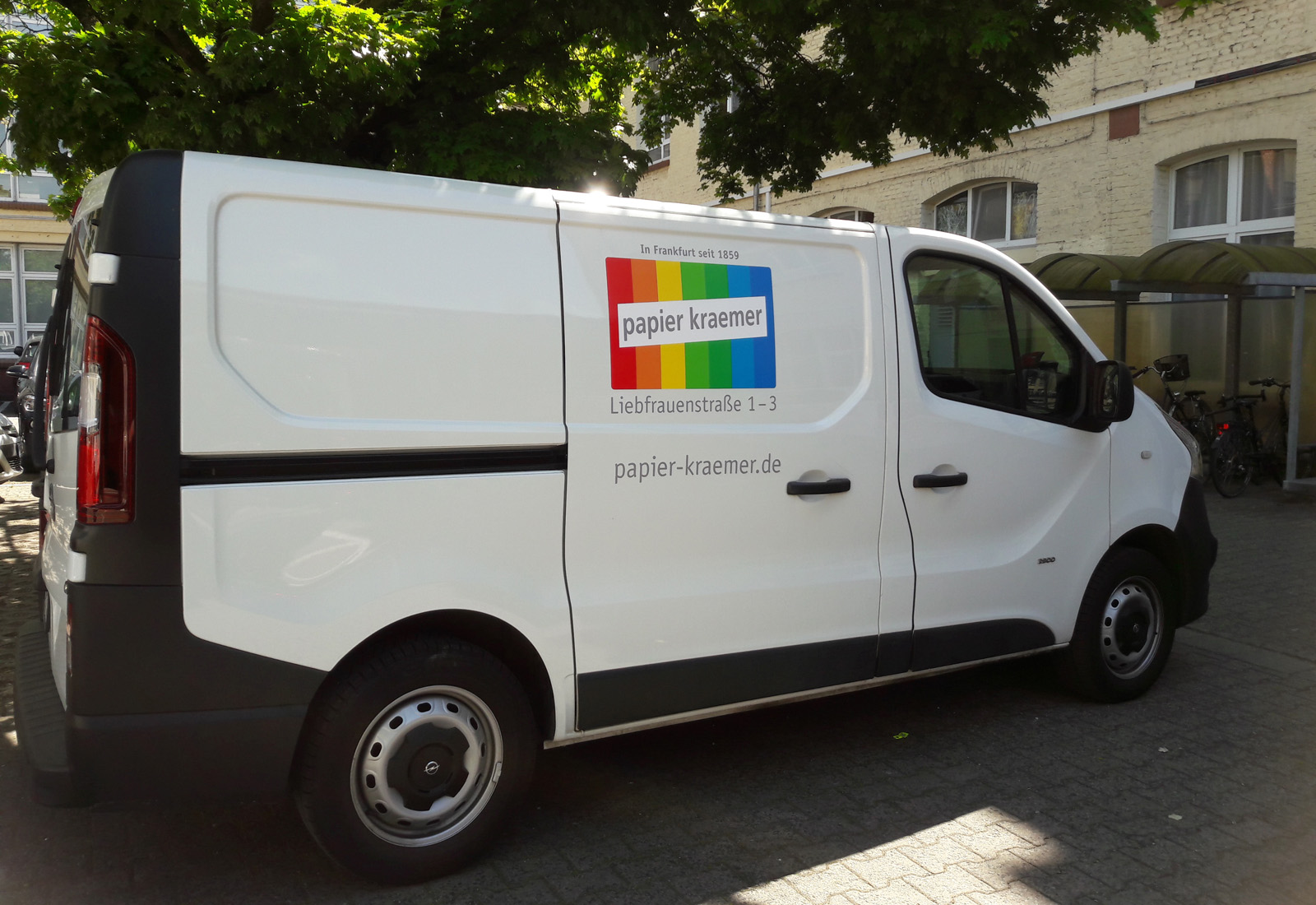 MARTINCOLOR stuck the entire vehicle fleet with individual vehicle lettering for the Frankfurt paper goods specialist Papier-Kraemer. For this purpose, the company logo was printed on a special Car Wrapping film and mounted on the vans. For more information on vehicle decals, please call +49 (0) 69 75 60 80-81.