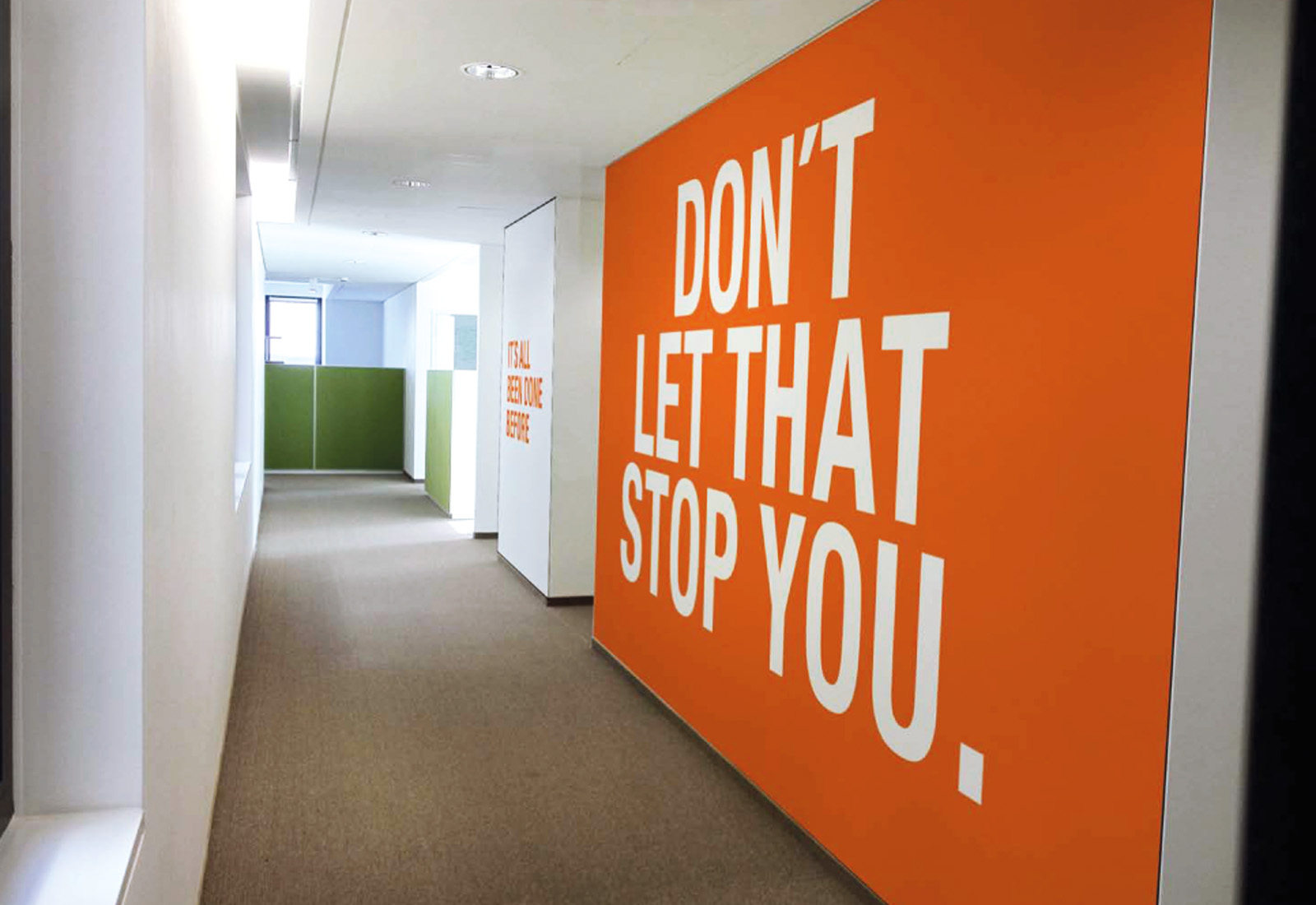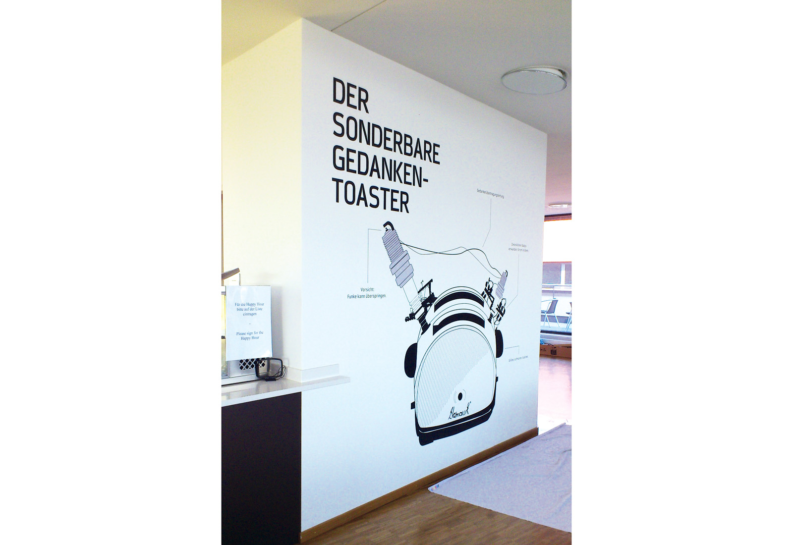 The Frankfurt advertising agency Leo Burnett GmbH opted for large-format wallpaper prints to give the walls an individual character in cafeterias, corridors and conference rooms. Our wallpapers can be printed with any desired motif, with lettering or logos and then simply affix with commercial paste to the plastered wall. It does not take much to completely change an office space and make it CI compliant! As soon as the wallpaper is applied, a completely new room atmosphere prevails!