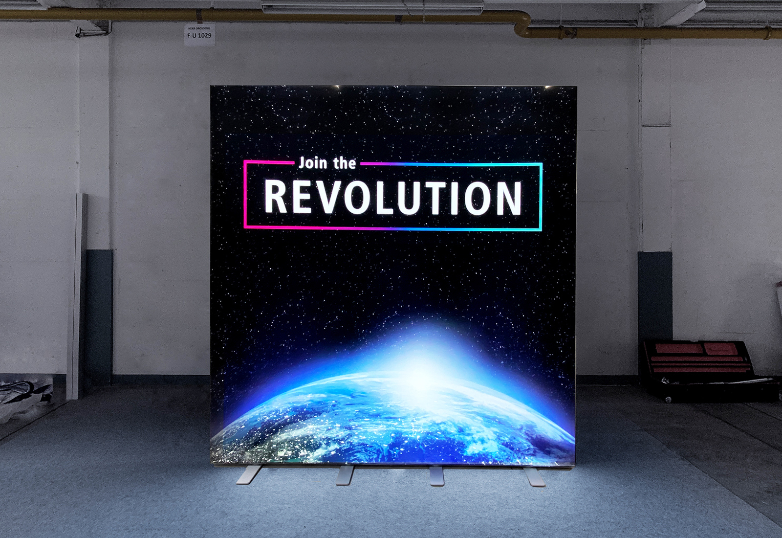 One of the fastest set up LED exhibition walls is ALU LightUp. The 8 cm wide system profile made of aluminum is simply put together for assembly. The LED rails are already in the profiles. The feet are already attached to the base of the light wall. They are simply unscrewed and the system can be used free-standing. The individualized graphic print is double-sided. The quick assembly and the small-format transport in a rollable transport trolley also convinced our customer MELAG.
