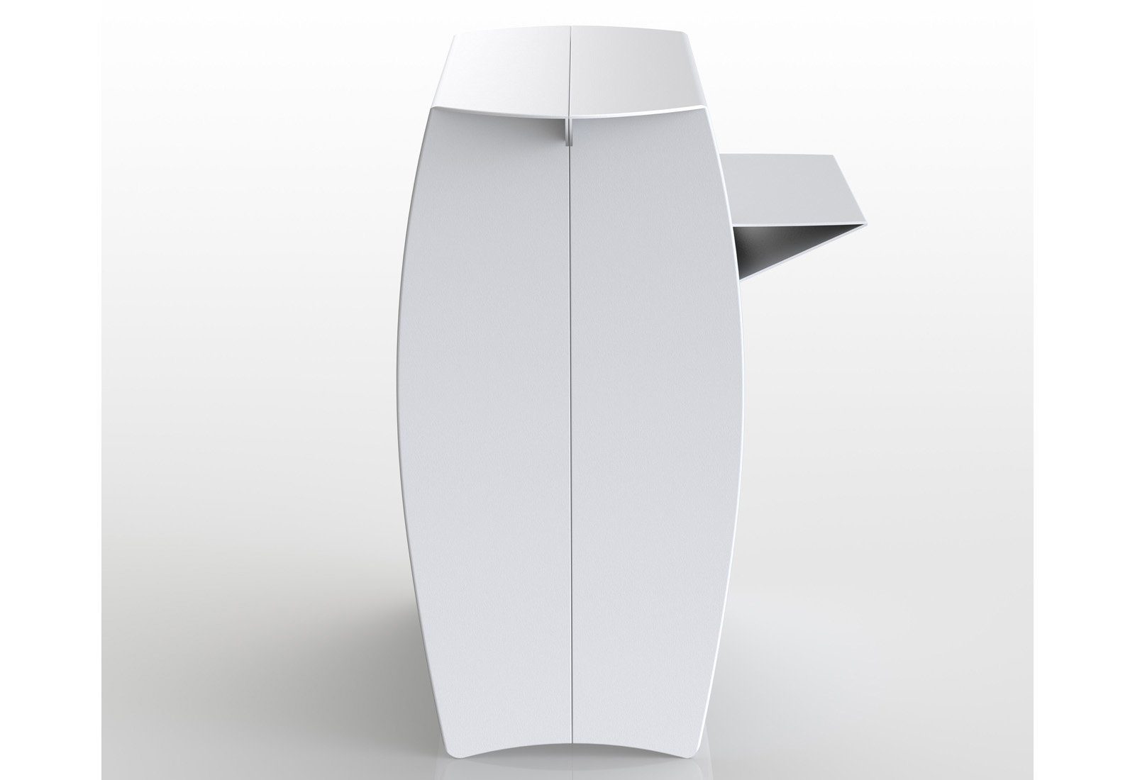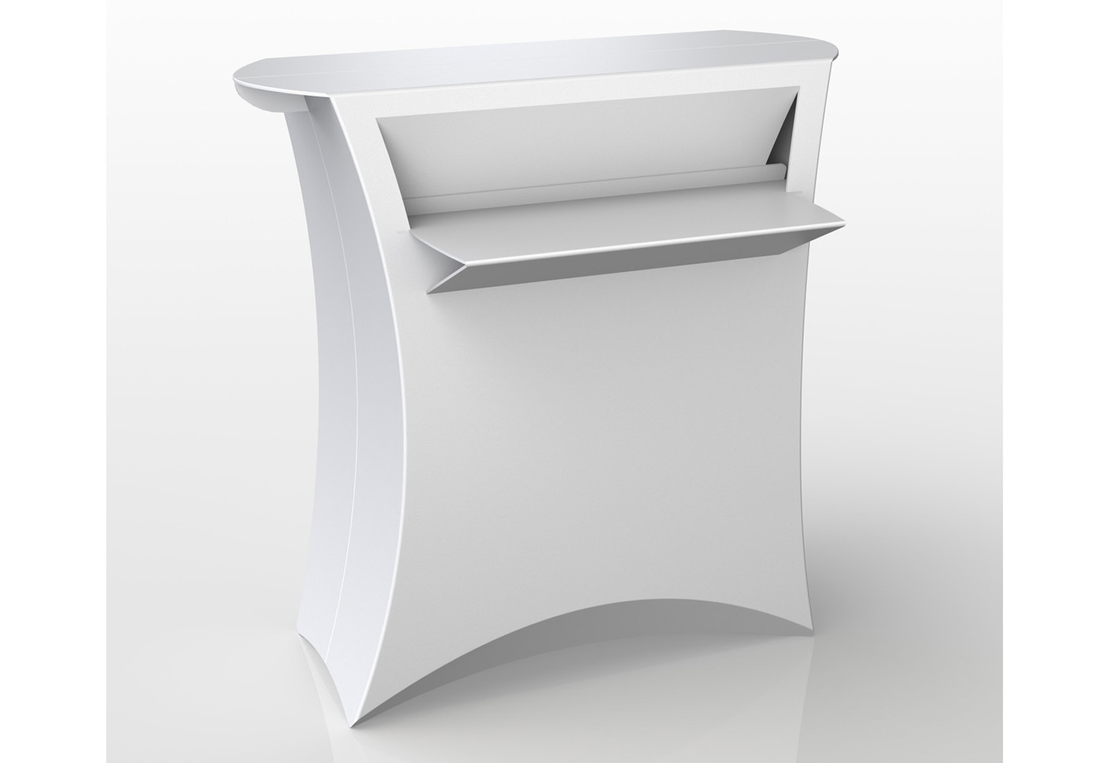 Brand new in the Flux product family is the Flux Counter. The foldable counter is made of weatherproof polypropylene and delivered flat. Thanks to the innovative design and pre-cut lines, a completely stable, robust and weatherproof counter can be folded in seconds without tools. The material used is high quality polypropylene and is extremely easy to clean. Futuristic and ergonomically constructed, the Flux Counter offers maximum functionality and is ideally suited for use at trade fairs or events. As fast as the counter is set up, it can also be returned to its original shape and is folded only 1-2 cm high - ideal for easy transport or storage. The Flux Counter is made in white, but of course can be branded with your individual design or logo.