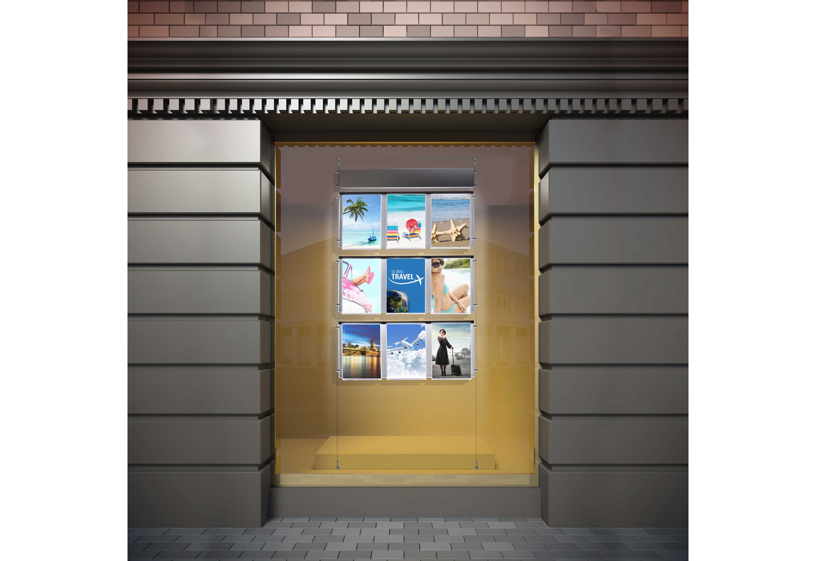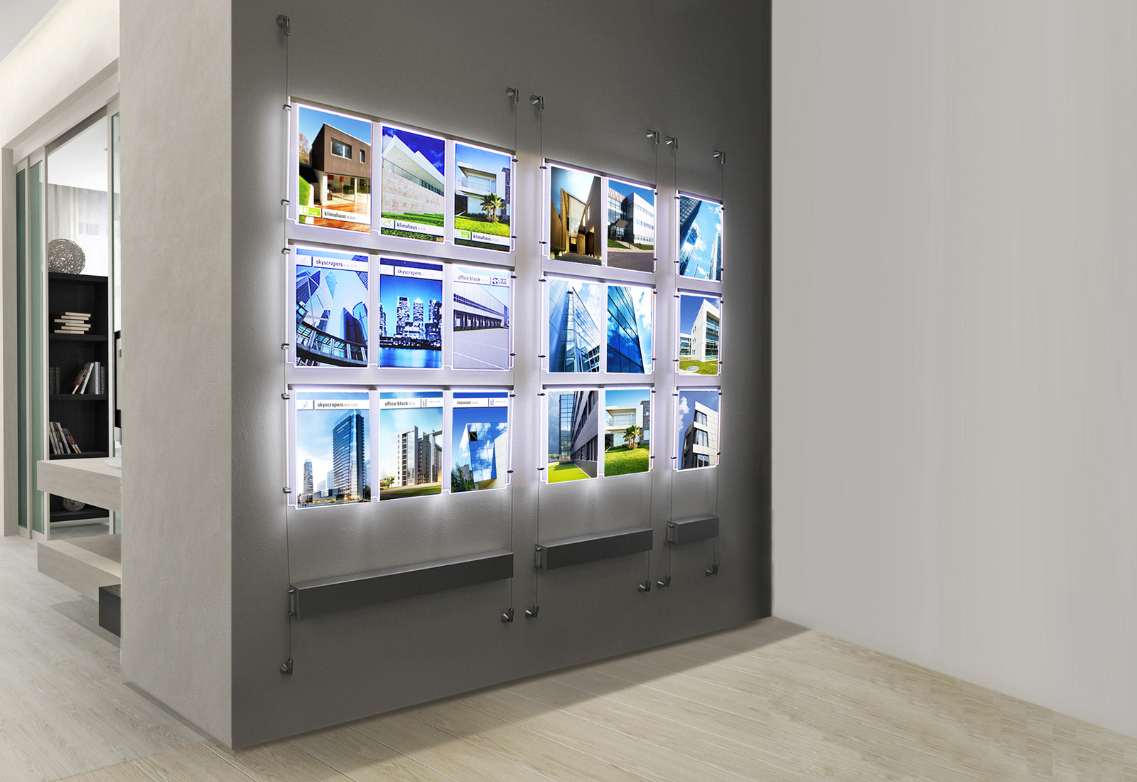 Fly Shine is revolutionizing your presentation! The LED-illuminated one-sided poster bags can be easily wall-mounted or suspended. All panels and electrical components are pre-assembled, so only the tensioning cables, the transformer box and the light panels need to be attached. Fly Shine panels are available in the dimensions DIN A4, A3 and 50x70 cm. Thanks to the high-quality LEDs and state-of-the-art laser technology, the information presented therein shines in perfect light and looks aesthetically pleasing. The exchange of information is simple and with the modular design nothing stands in the way of an extension of the system.