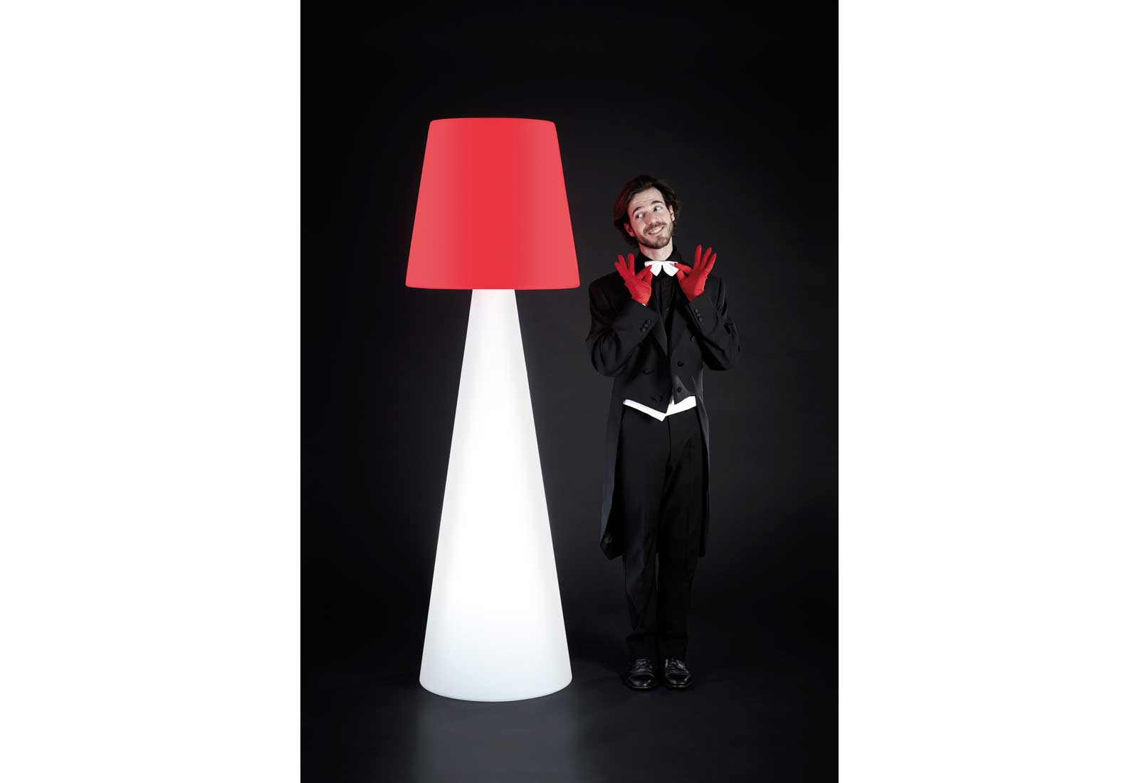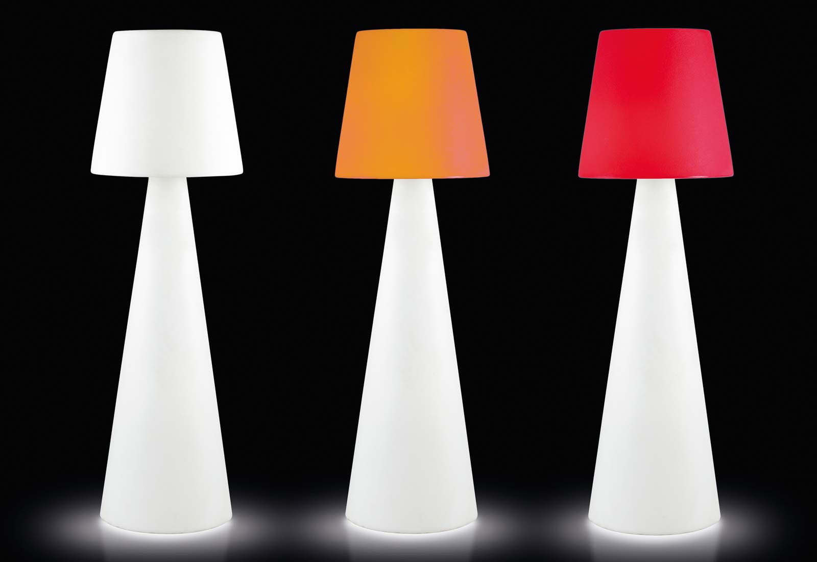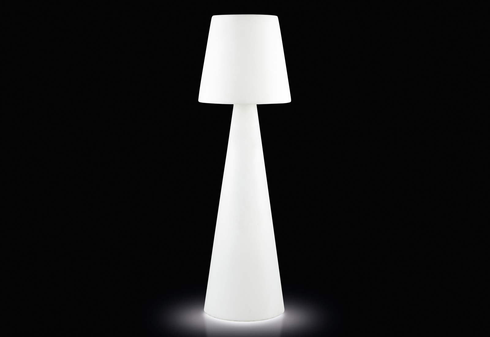 The luminous floor lamp PIVOT, designed by Carlo Costantini for the Italian design manufacturer, impresses with its finely structured and translucent surface. The PIVOT floor lamp is made of high-quality white translucent polyethylene and both the standing foot and the lampshade shine in a pleasant diffused light. PIVOT is available in an indoor and outdoor version. Both models are available in three different sizes (H: 145 cm, 200 cm and 210 cm). The PIVOT light bulb is equipped for indoor use with an intermediate cord switch and for outdoor use with a black rubberized cable.