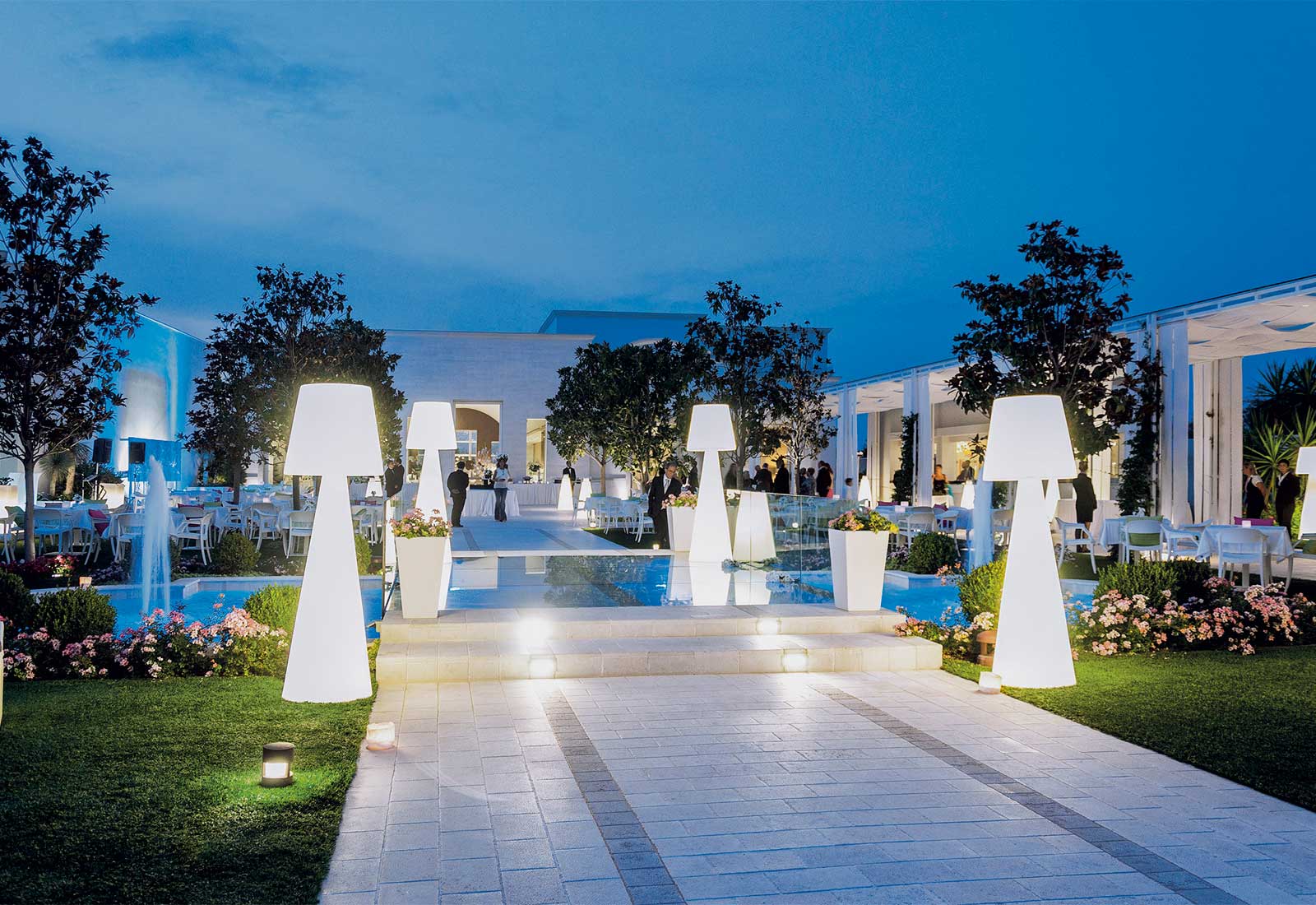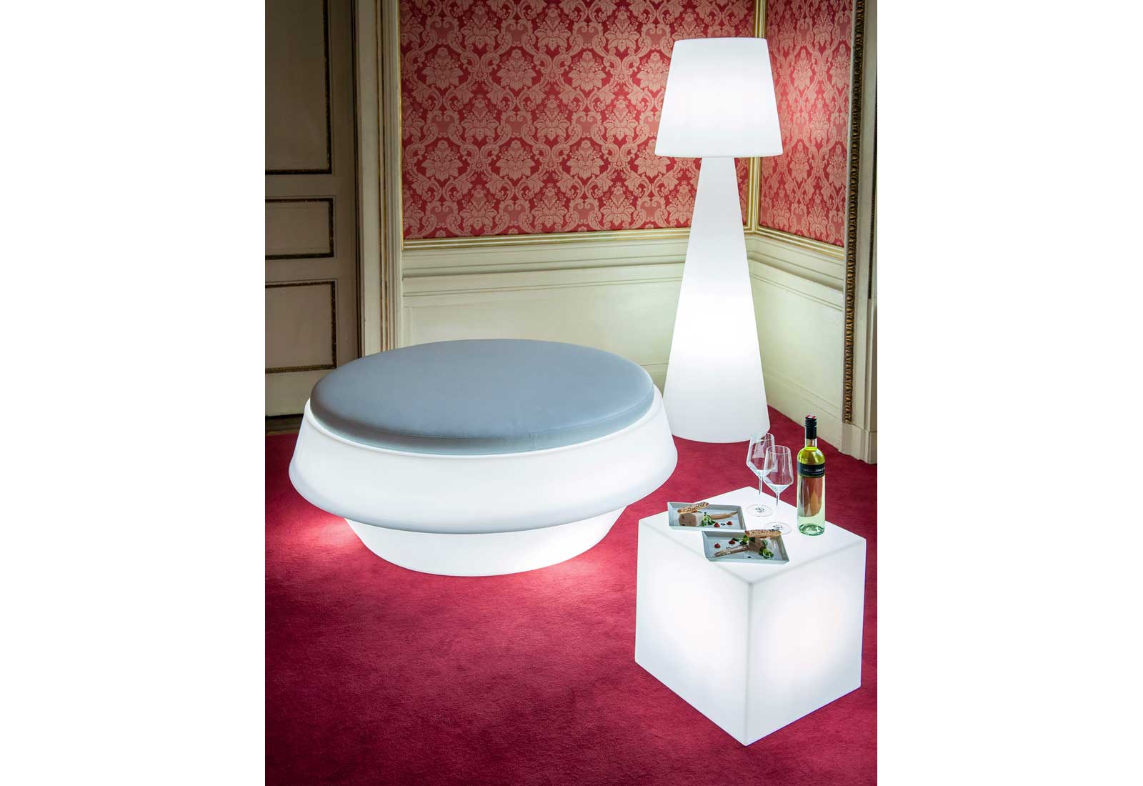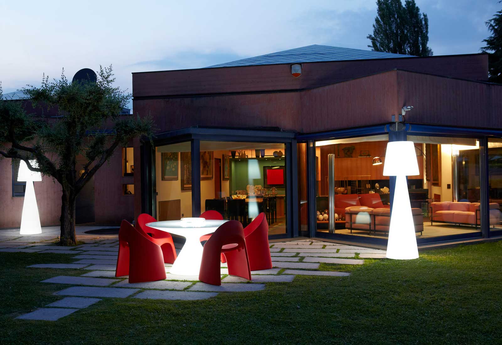 The luminous floor lamp PIVOT, designed by Carlo Costantini for the Italian design manufacturer, impresses with its finely structured and translucent surface. The PIVOT floor lamp is made of high-quality white translucent polyethylene and both the standing foot and the lampshade shine in a pleasant diffused light. PIVOT is available in an indoor and outdoor version. Both models are available in three different sizes (H: 145 cm, 200 cm and 210 cm). The PIVOT light bulb is equipped for indoor use with an intermediate cord switch and for outdoor use with a black rubberized cable.