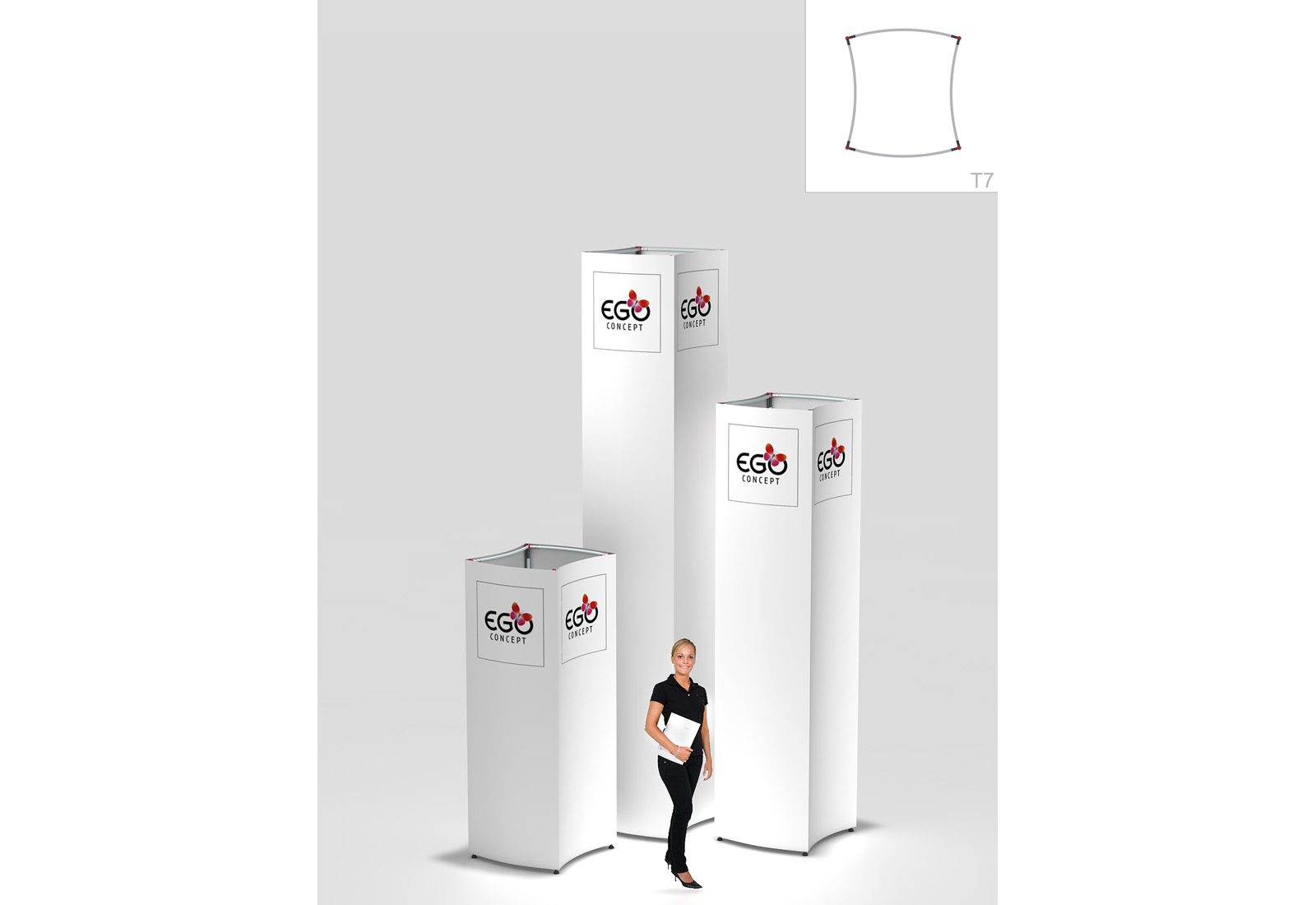 A completely new concept is revolutionizing trade fair construction. "EGO CONCEPT" is a mobile and very easy to set up system - that is not only suitable for exhibition stands but also for the construction of different columns. More is not possible in a small space: The EgoTower captures the looks from all sides and offers its own creative solutions.