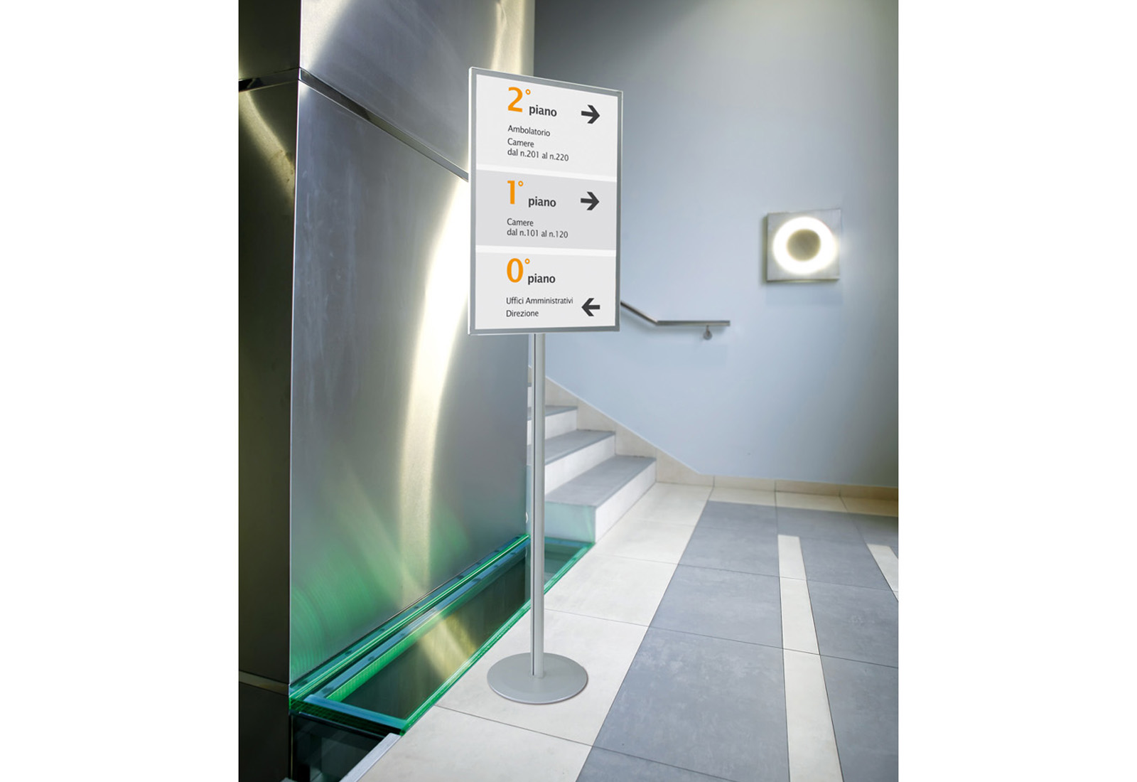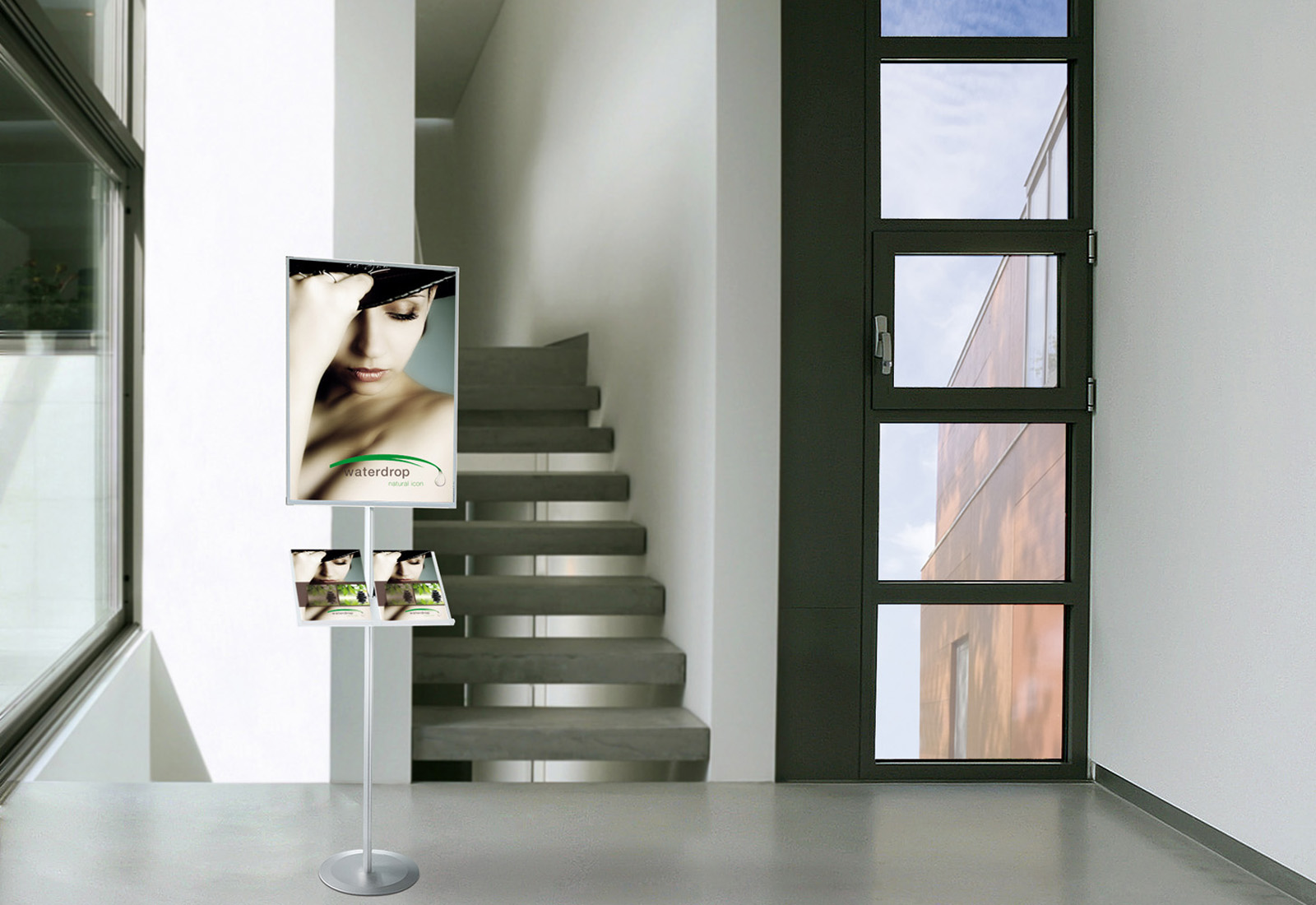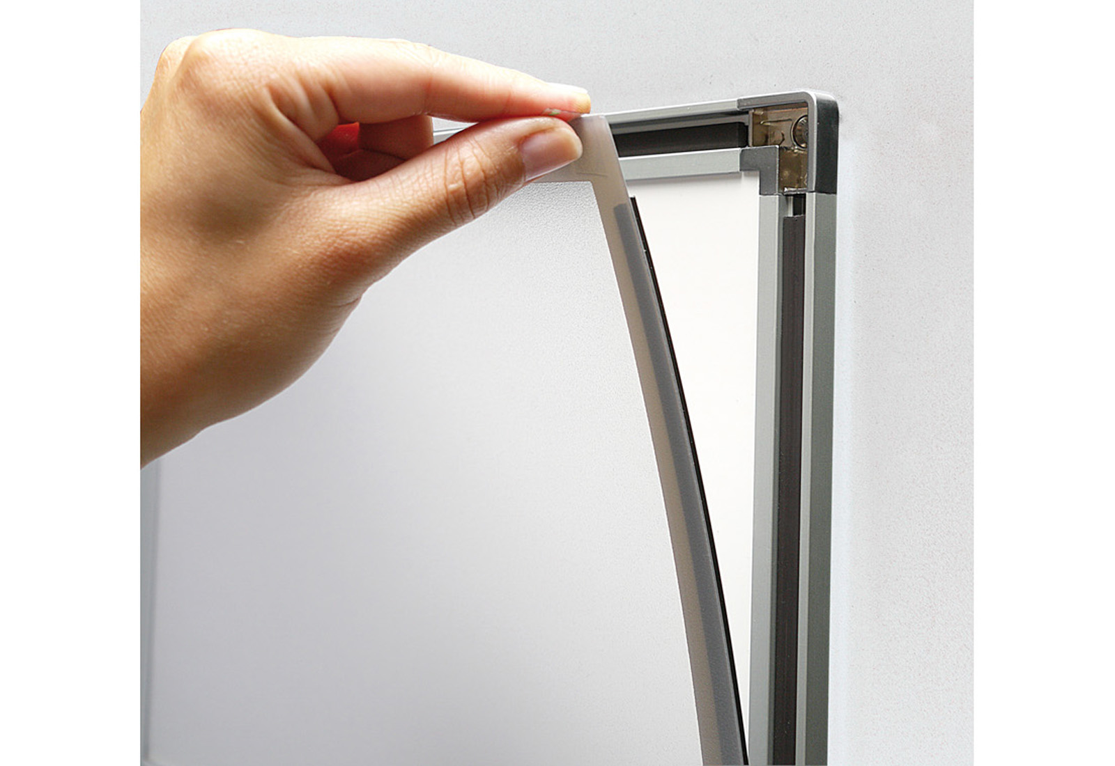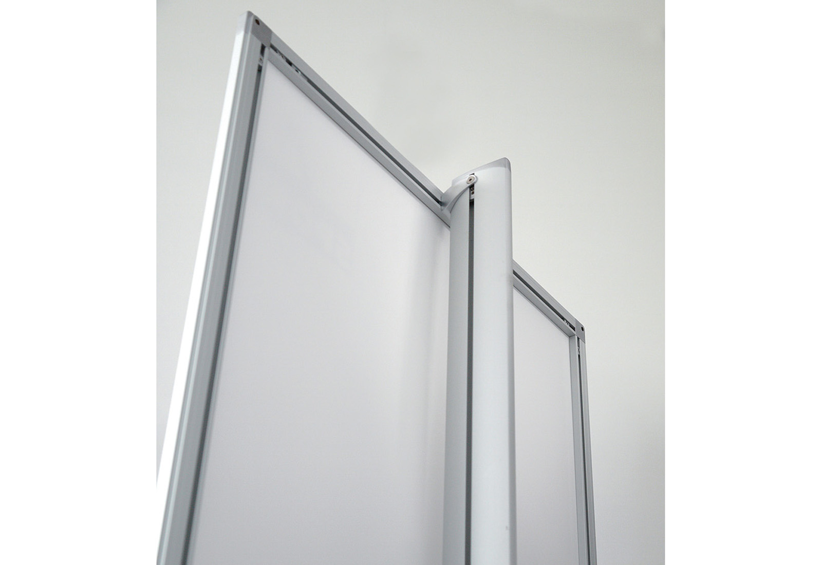 Maginfo cleverly combines the quick-change frame "Magnedoor" with two or three A4 brochure pockets based on the Soistes structure. For quick and easy information exchange, the flexible cover film is simply unfolded. The magnetic closure is even water repellent. The brochure bag made of impact-resistant injection-molded polycarbonate is simply hung in the silver-anodised aluminum panel. Double presentation - double advantage!