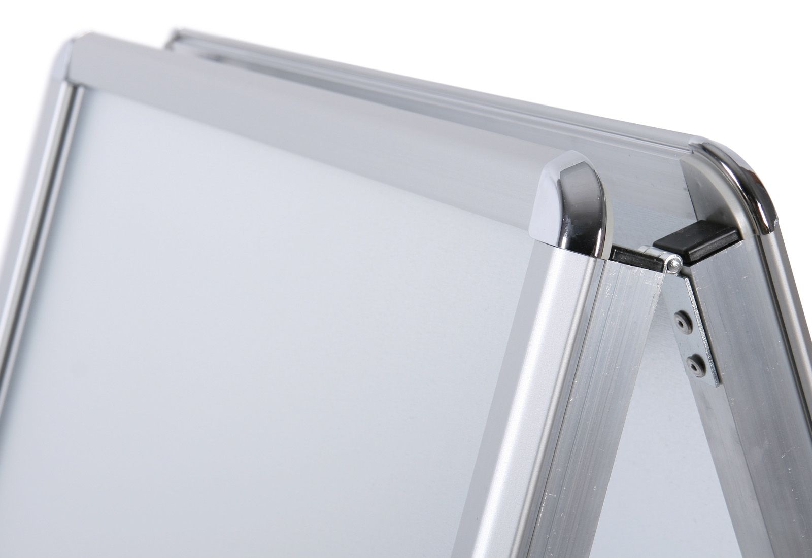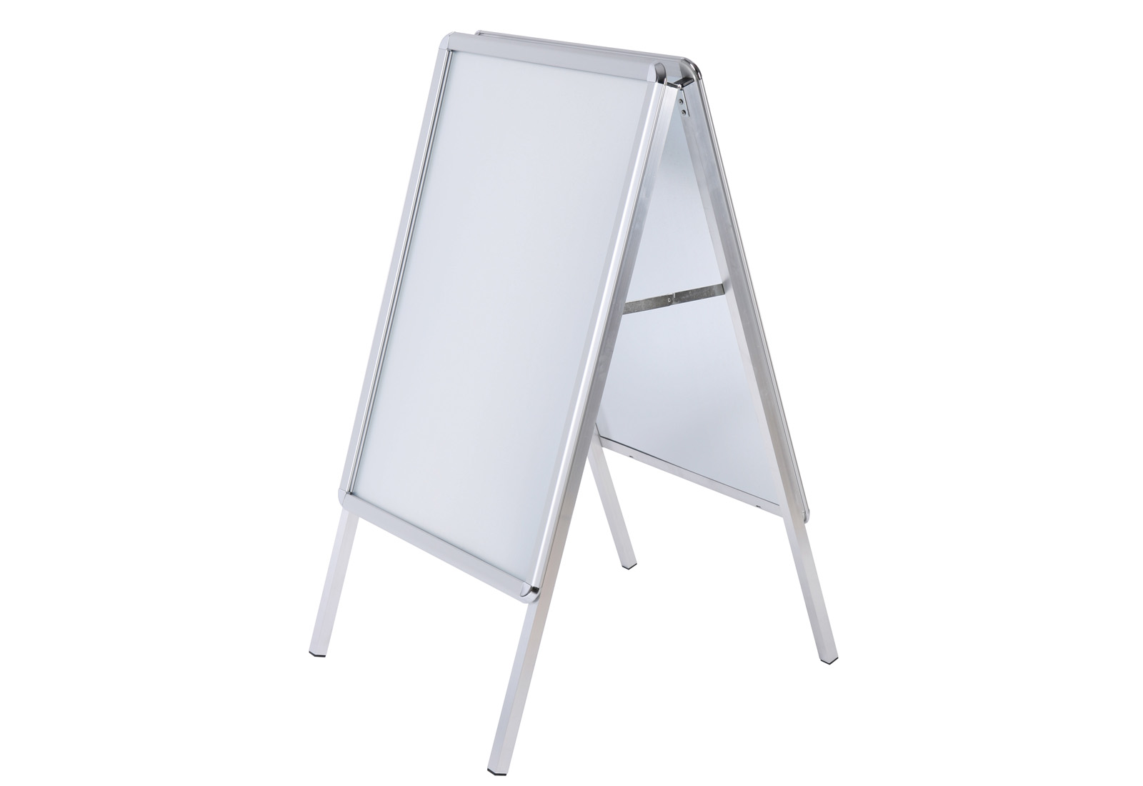 The double-sided customer stopper with Rondo snap frame is very sturdy with 25 x 25 mm thick stand profile. The double-sided mounted 32 mm snap frames are made on the back of an extremely impact-resistant, stainless metal wall. The poster stand is weatherproof with integrated water drainage in the lower profile and UV-stabilized, non-reflective cover foil. On request also available in almost all RAL colors. Attachment plate, matching brochure baskets and writing boards are available as an option. Possible formats: DIN A0, DIN A1, A2, 50 x 70 cm, 70 x 100 cm.