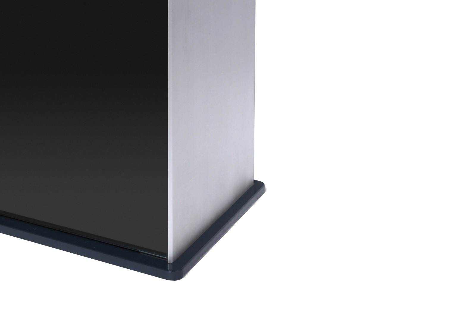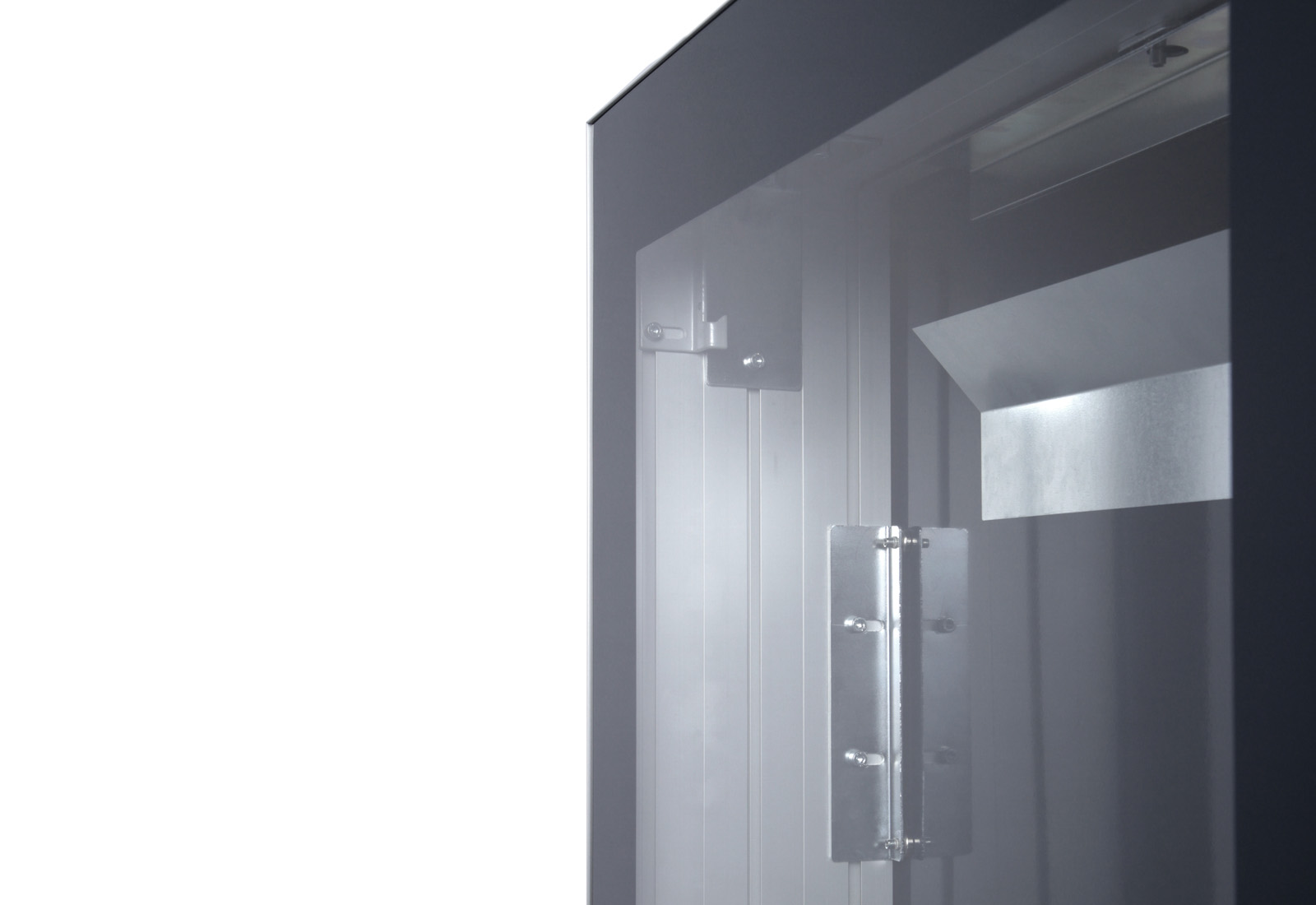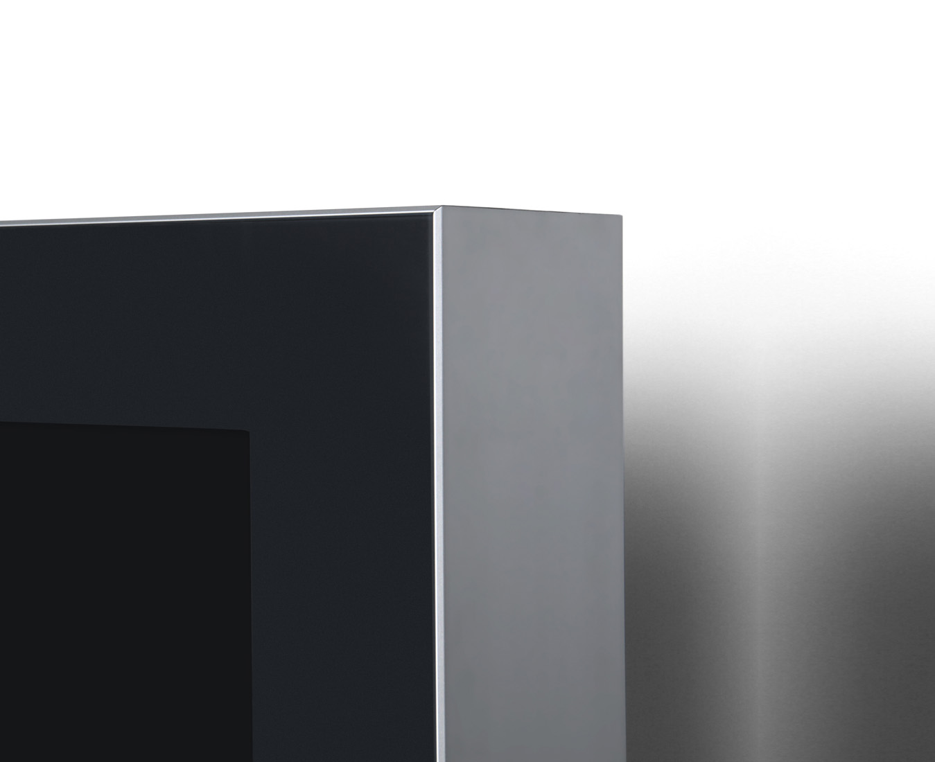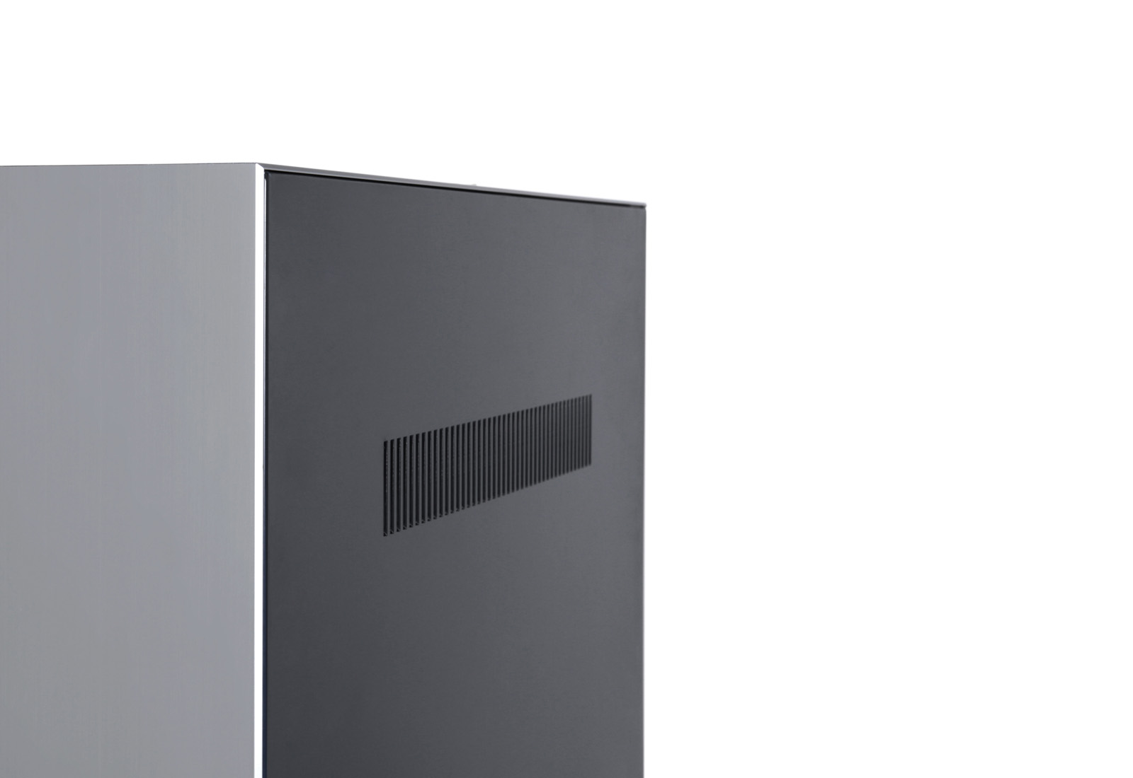 Made from weather-resistant stainless steel panels and a 200 cm high and 21 cm deep aluminum frame, our outdoor pillar offers a durable solution for various environments. It has a system width of 85.3 cm. The large format 55-inch outdoor screen is protected by tempered glass to prevent vandalism and is equipped with an IK10 protective glass panel. In addition, the stele is protected against heavy rain with IP56 certification and can withstand high-pressure water jets from all directions. Even in extreme temperatures from -30°C to 50°C, integrated cooling fans ensure stable operation without the screen freezing or overheating.
