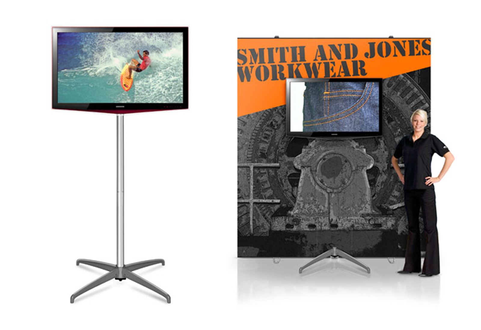 The Expand MonitorStand XL is an extra-large and visually appealing holder for monitors and flat screens up to 42 kg or 60 "size. The base of the foot is 76.2 x 76.2 cm. The bar profile has a practically accessible cable channel for power and data cables. Four heights on the bar profile are possible: 160, 170, 180 and 190 cm. The effective total height varies by the particular screen model used and its size and the respective height lock. The overall construction is delivered in two alternatives: a) Stand profile 3-piece for transport in a sturdy transport bag or b) Stand profile in one piece for transport in two bags, whereby the bag for the stand profile is 2 m long. Both packaging units weigh only approx. 20 kg (without monitor). If required, a keyboard shelf is available as an accessory.