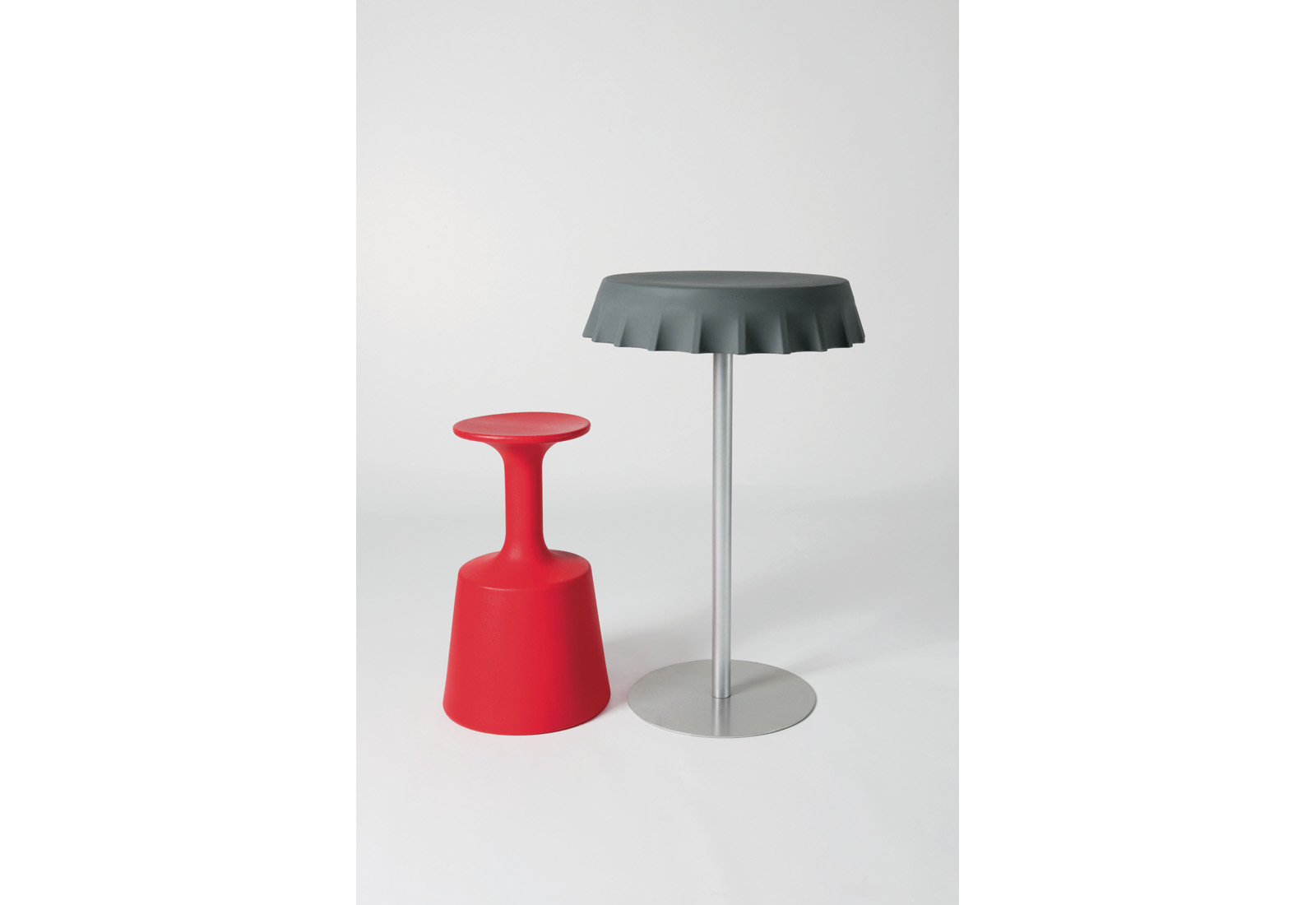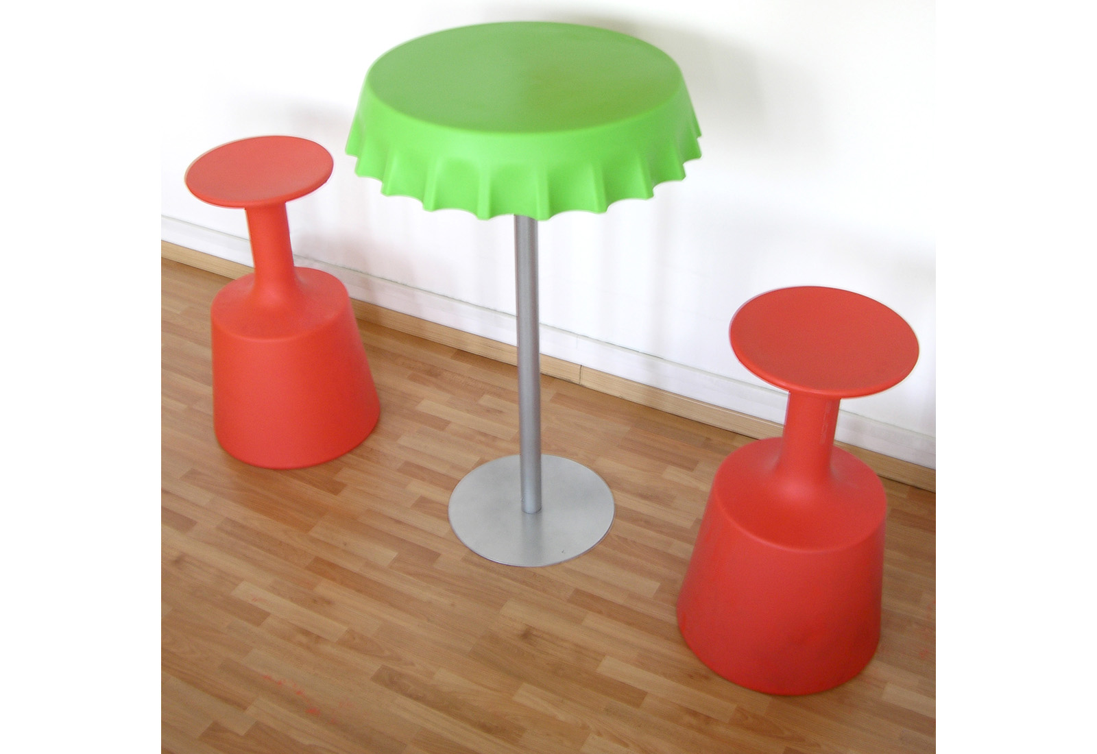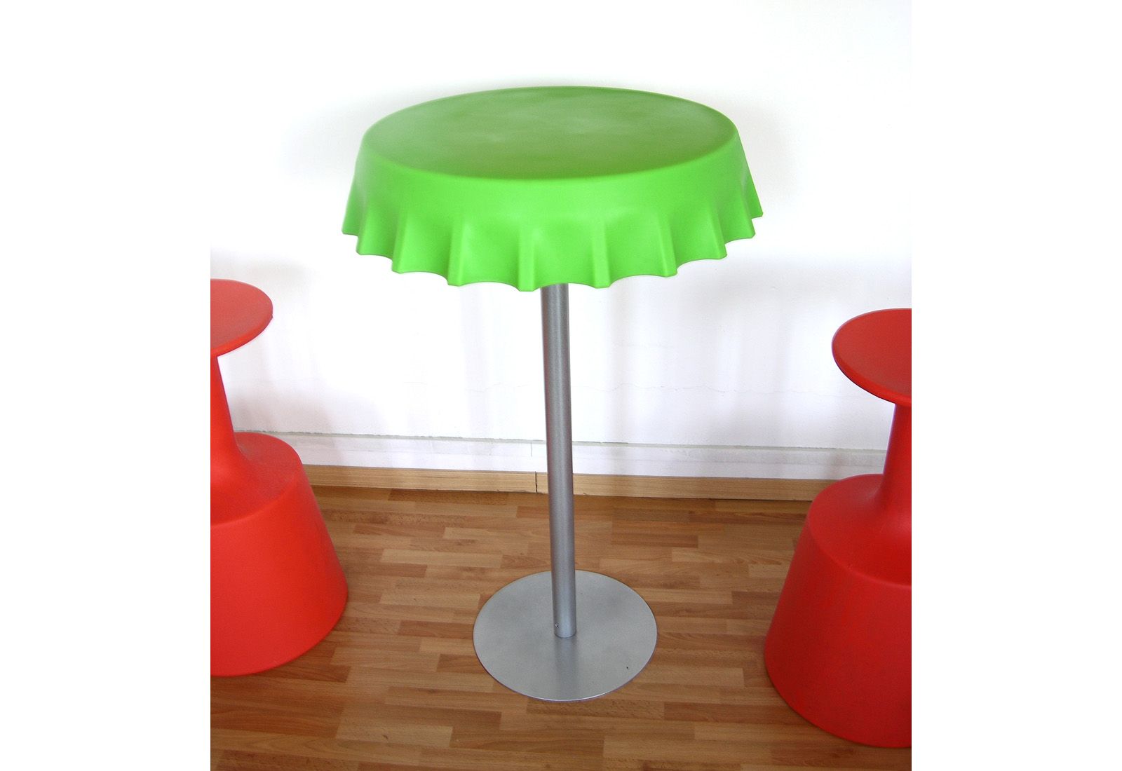 The bar table Fizzz convinces with its fancy table top in the shape of a crown cork. Whether at parties, fairs or events - the table Fizzz is always an eye-catcher. The bar table can also be combined nicely with a bar stool, e.g. the model Koncord. It is available in many colors and also in a lit version. On request, the table is also available in other sizes.