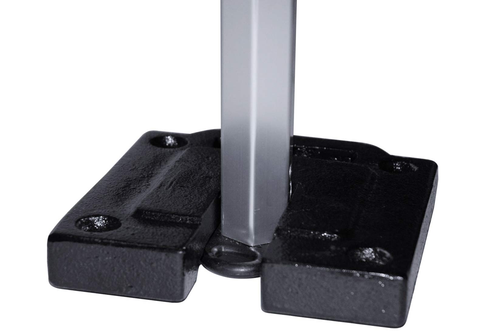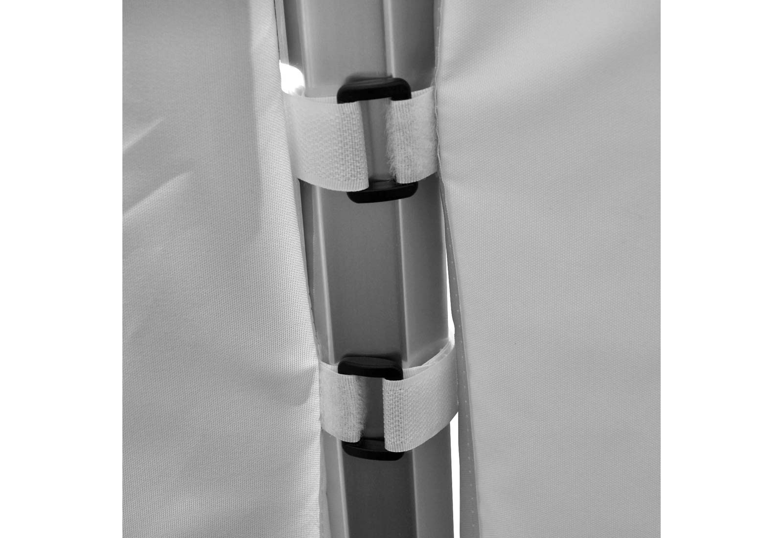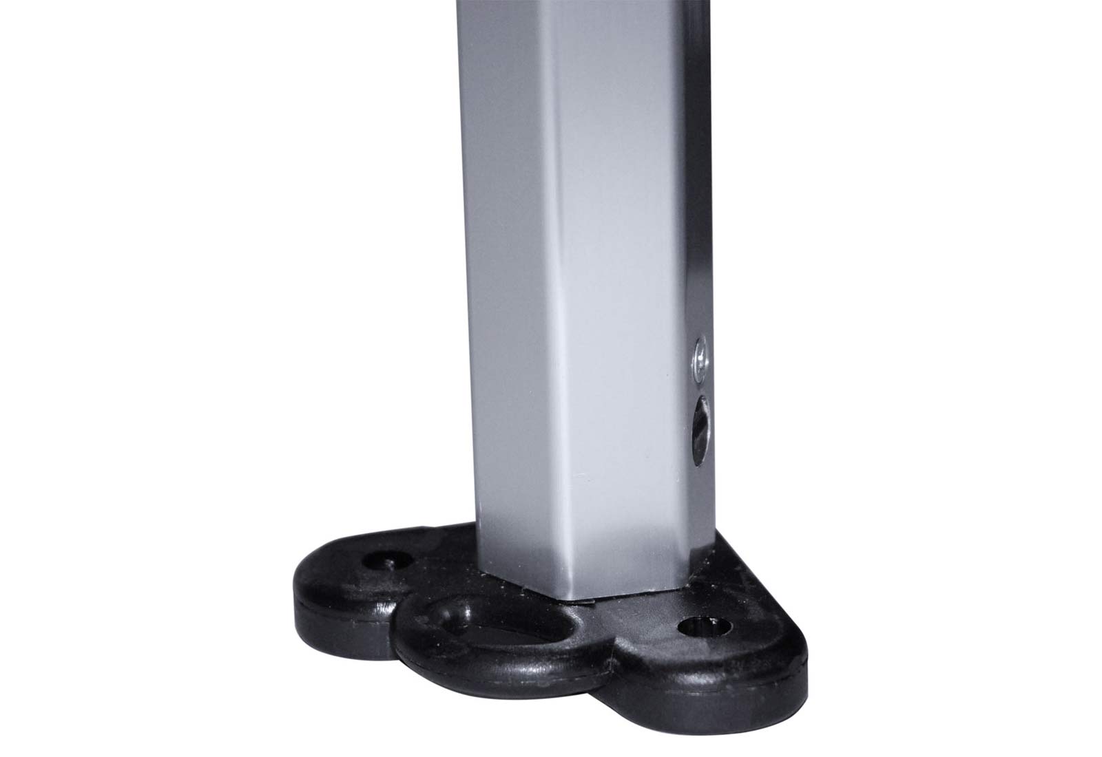 The total height of the tent can be adjusted to 299 cm, 307 cm, 315 cm, 323 cm or max. 331 cm. The maximum passage height is 207 cm. The upper edge of the valance is a maximum of 242 cm and a minimum of 210 cm.