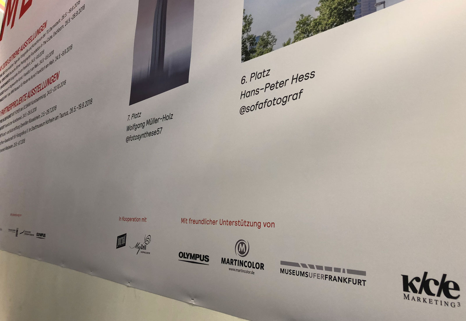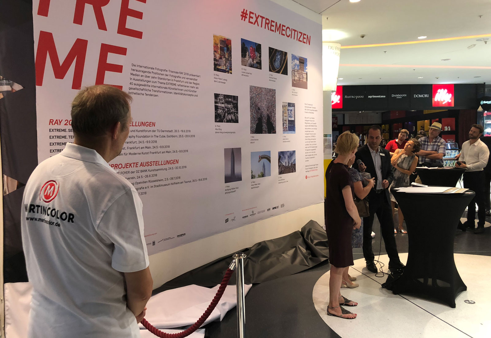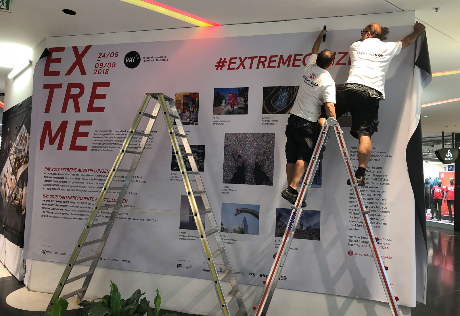 Korrespondierend zu RAY Frankfurt fand im Shopping Center MyZeil die Prämierung der Sieger des #extremecitizen Instagram Fotowettbewerbs 2018 statt. Aus den auf Instagram eingestellten Bewerberfotos wählte ein Gremium von RAY Fotografieprojekte, Journal Frankfurt und MyZeil die besten 10 Fotografien aus, die dann von MARTINCOLOR über den EPSON FineArt Printer auf Hahnemühle Papier ausgedruckt wurden.