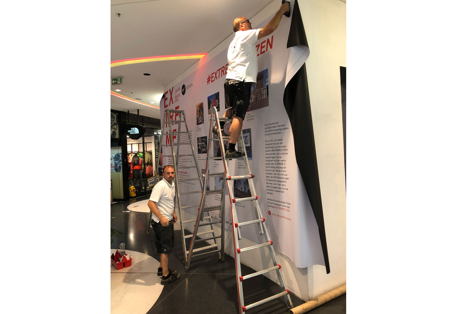 Am Vorabend der Veranstaltung wurde das bei MARTINCOLOR produzierte, große Themenbanner mit den Abbildungen der "Gewinner-Fotos" innerhalb des Shopping Centers angebracht und mit einem weißen Tuch verhüllt. Die Enthüllung und Prämierung der Fotografien fand dann im Rahmen einer Feierlichkeit im zweiten Stock des Shopping Centers statt.
