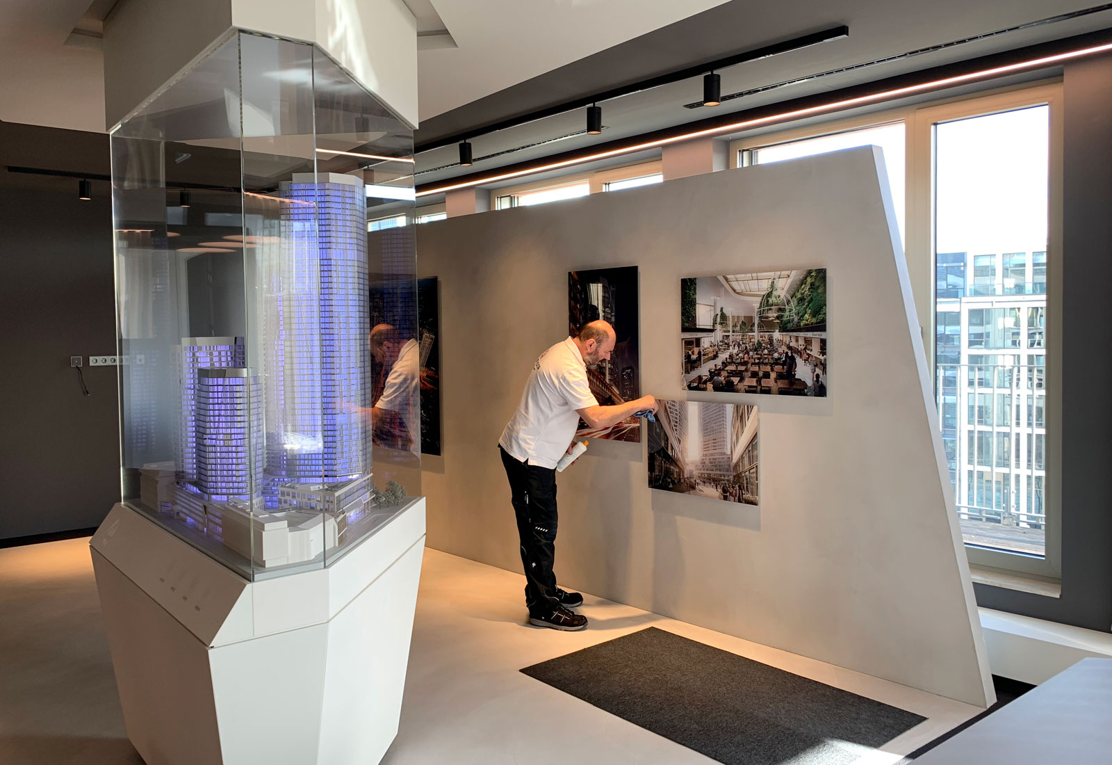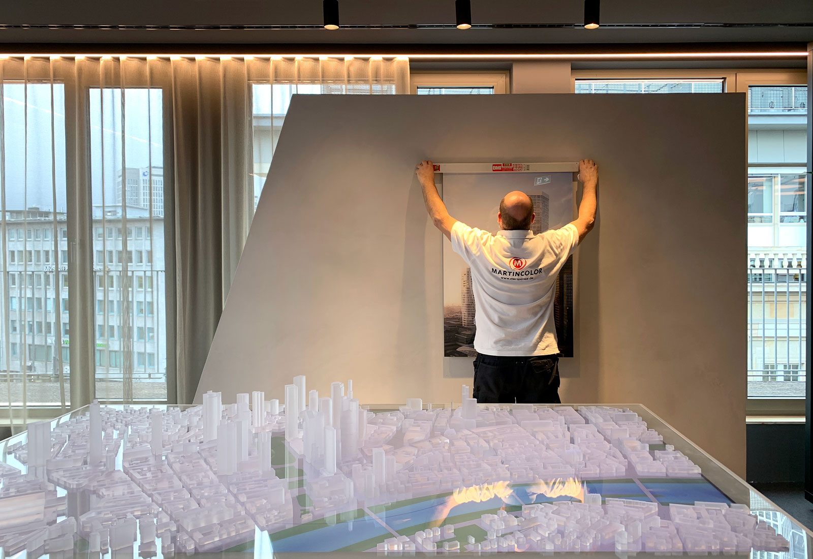Auch für das Ausstellungsprojekt von Groß & Partner wurden Fotografien, die bei MARTINCOLOR abgestimmt und gefertigt wurden, von unserer Konfektionierung hinter 10 mm Acryl verklebt und dann im Sandwich mit einer 3 mm dicken AluDibondplatte verbunden und mit Galerie-Aufhängern versehen. Haben Sie Fragen zu diesem Verfahren? Eric Zies freut sich über Ihren Anruf unter +49 (0) 69 756080-85.