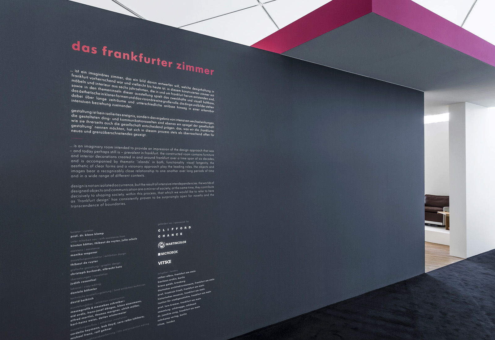 2013 wurde das „Museum angewandte Kunst“ (MAK) am Frankfurter Museumsufer wieder eröffnet. Nach mehrmonatigen Renovierungsarbeiten sind die Räumlichkeiten des 1985 von dem amerikanischen Architekt Richard Meier erbauten Gebäudekomplexes außen und innen frisch saniert. Die Eröffnung wurde mit der Präsentation von vier großen Ausstellungen gefeiert: „Weniger, aber besser“, „Das pralle Leben“, „Korea Power“ und „1607“.