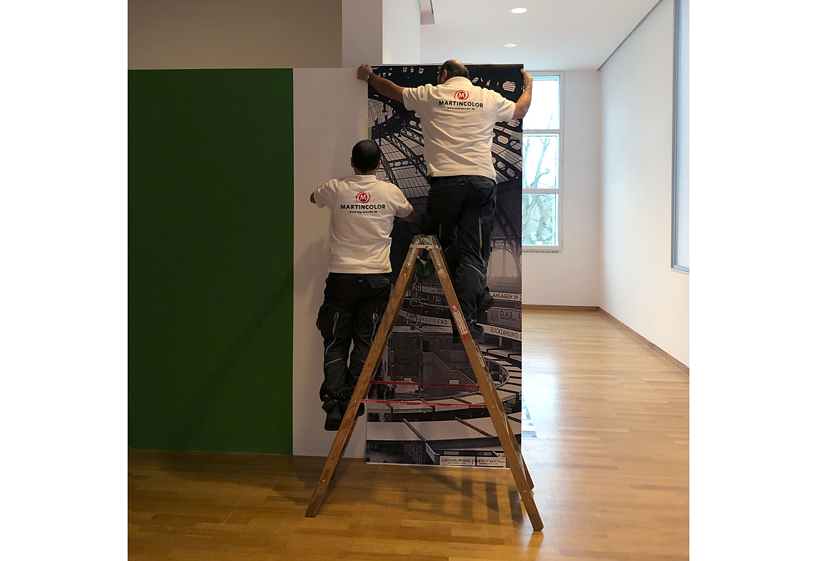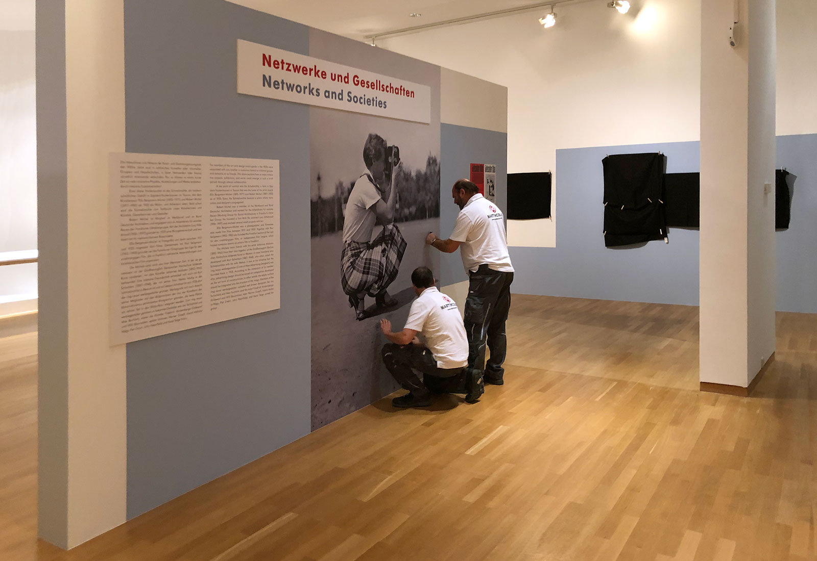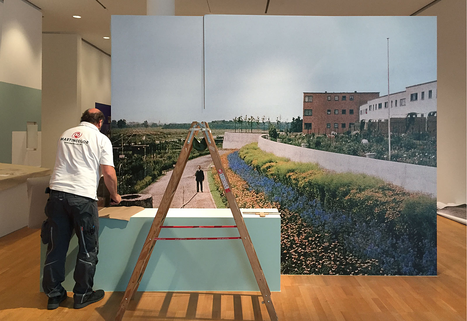 Das Projekt-Team von MARTINCOLOR fertigte für diese Ausstellung zahlreiche Wandtapeten mit großformatigen Bildmotiven. Die vom Museeum gelieferten Bilddateien werden qualitativ optimiert und dann mit umweltfreundlichem Latex-Druck auf Tapetenmaterial gedruckt. Bei einer Bahnenbreite von 130 cm können so großformatige, qualitativ beeindruckende Wandtapeten erzeugt werden. Unsere Montage Experten montieren diese Tapeten vor Ort im Museeum, hängen Bildmotive und Fotografien auf und bringen die Wandtattoos an, die ebenso in unserer Produktion gefertigt werden. Planen Sie eine Ausstellung? Dann nehmen Sie gerne Kontakt zu unserem Ausstellungs-Spezialisten Eric Zies auf. Sie erreichen Ihn unter Tel. +49 (0) 69 756080-85.