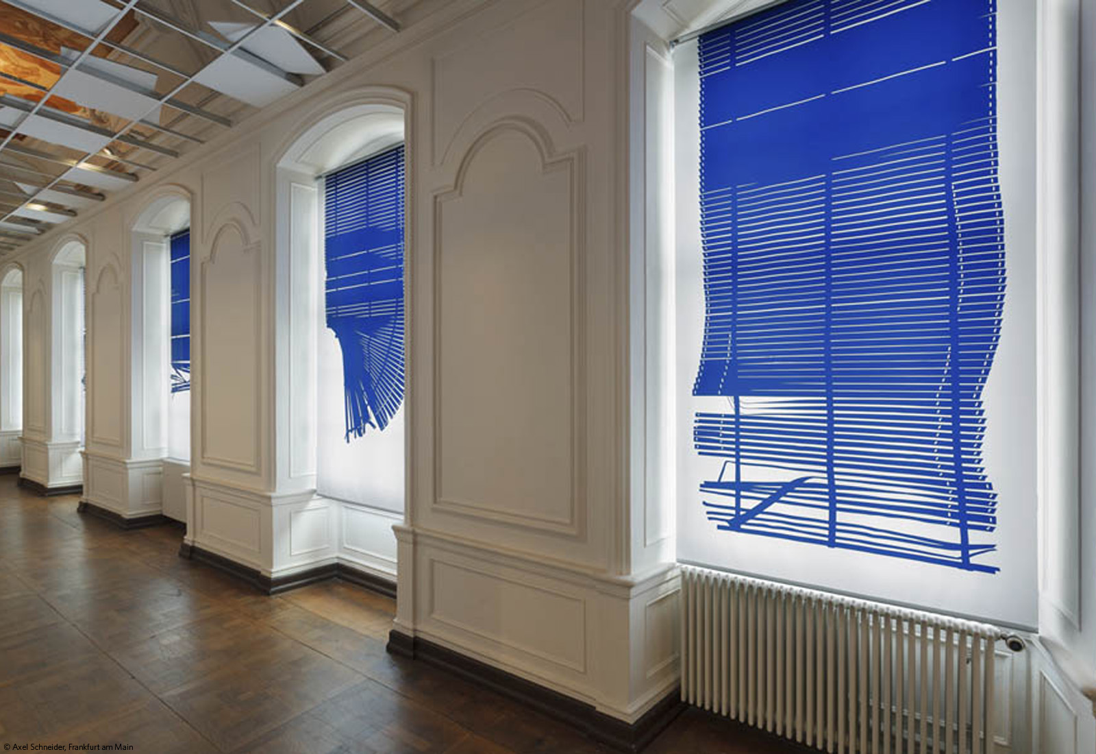 Neben Direktdrucken wurden bei MARTINCOLOR auch transparente und farbrige Effektfolien bedruckt und geschnitten, die an den historischen Fenstern des Ausstellungsortes angebracht wurden.
