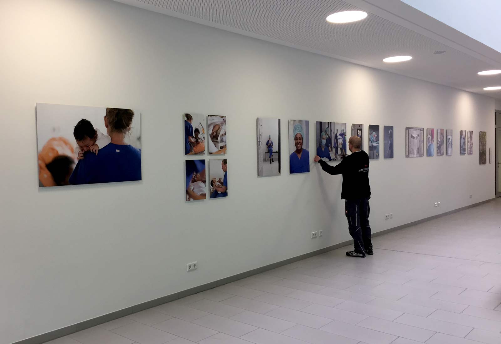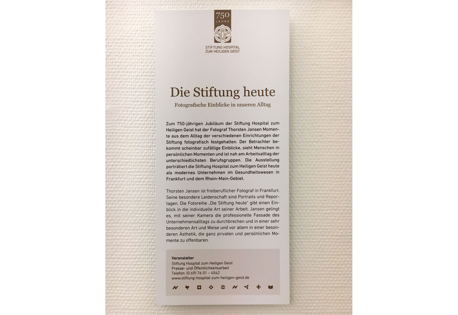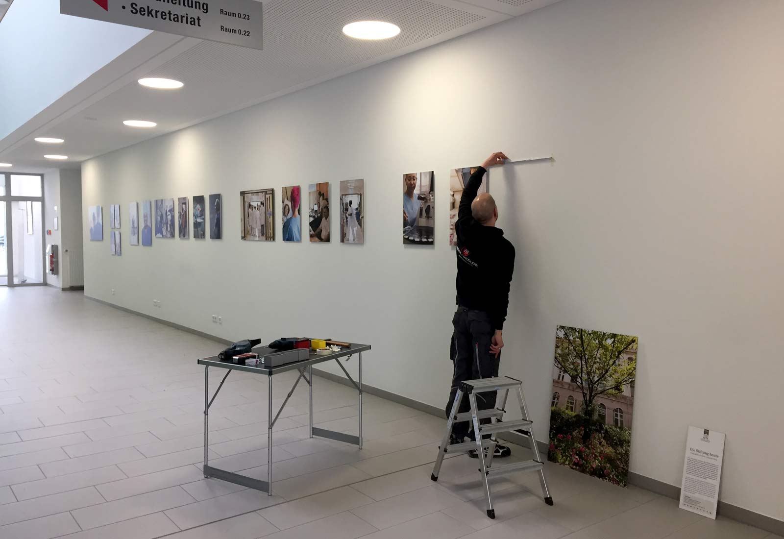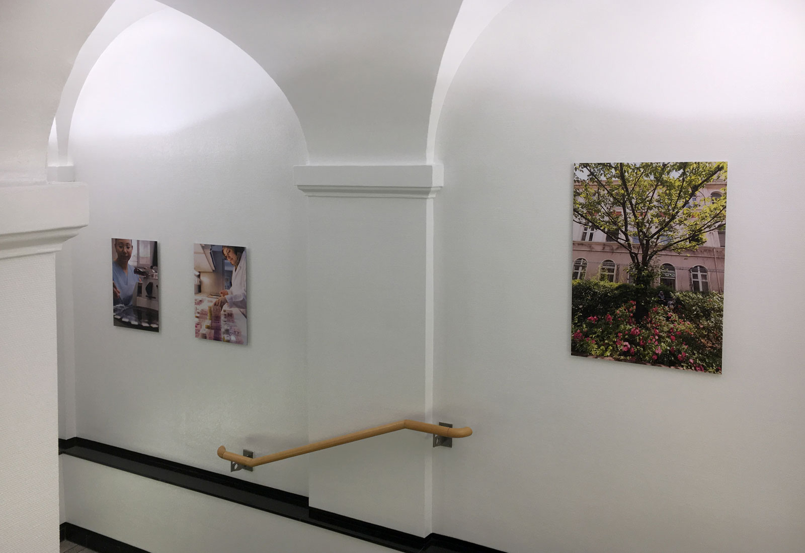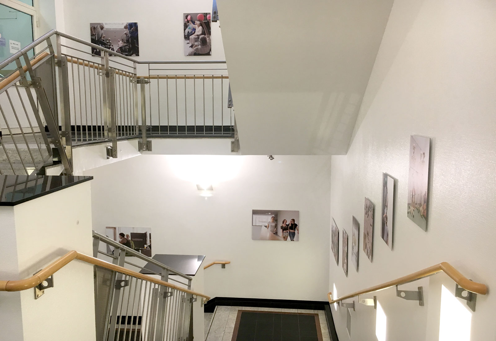 Zum 750-jährigen Jubliäum der Stifung Hospital zum Heiligen Geist hat der Fotograf Thorsten Jansen Momente aus dem Alltag der verschiedenen Einrichtungen der Stiftung fotografisch festgehalten. Die daraus entstandenen Bildmotive wurden bei MARTINCOLOR über Fine Art Printing auf Fotopapier produziert. Bei Fine Art Printing handelt es sich um einen hochauflösender Fotodruck in beeindruckender Galerie-Qualität! Die so entstandenen Bilder wurden mit Schutzfolie versehen und auf 3 mm starkes, verzugfreies AluDibond Material aufgebracht und mit Galerie-Aufhängegarnituren bestückt. Das MARTINCOLOR-Montageteam brachte alle so entstandenen Bilder im Kunst-Treppenhaus im Hospital zum Heiligen Geist an den Wänden an. Die Vernissage zur Ausstellung fand am 27. September 2017 statt.