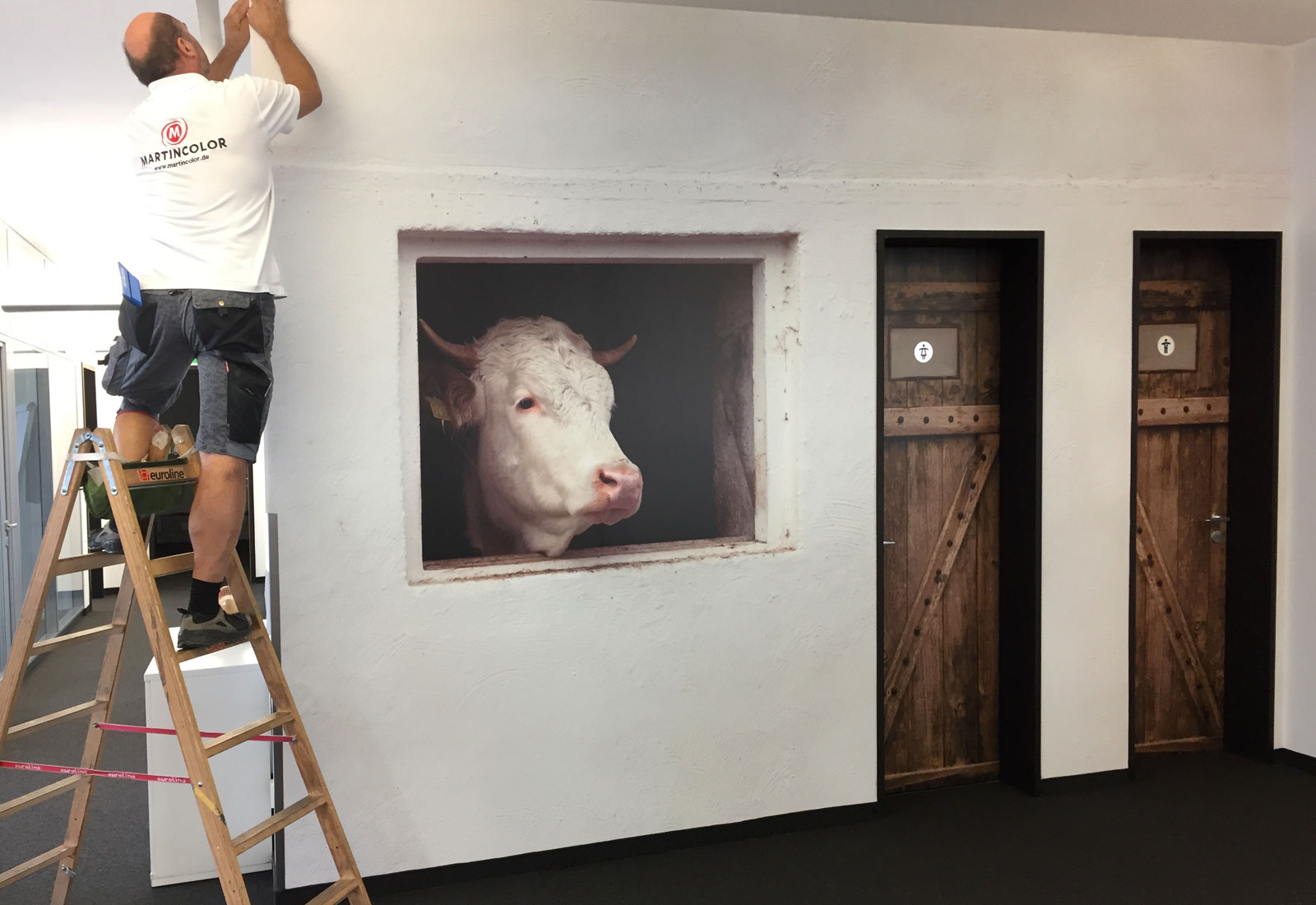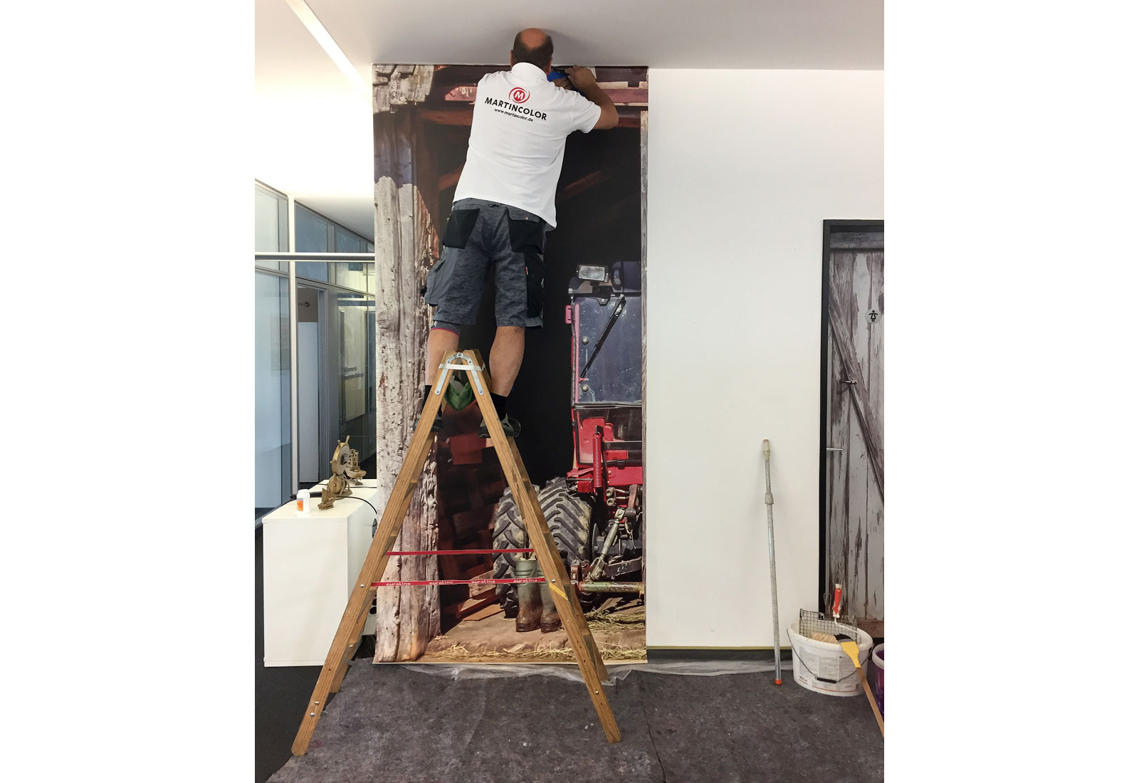Im Auftrag der Spark Werbeagentur GmbH erarbeite MARTINCOLOR die Bürogestaltung der Frankfurter RaboDirect Bank. Dabei sind großflächige Tapeten ein Hingucker im gesamten Büro und verleihen den Sozialräumen eine ganz besondere Atmosphäre. Gerade in der hochwertigen Produktion von individuellen Tapeten ist MARTINCOLOR ein Experte. Wir fertigen großformatige Tapetendrucke über Hochleistungsdrucker in beeindruckender Bildqualität. Die Tapeten können anschließend mit ganz normalem Tapetenkleber auf der gewünschten Wandoberfläche aufgebracht werden. Alle nötigen Montagen werden von unserem MC-Montageteam vor Ort durchgeführt. Wünschen Sie mehr Informationen? Dann rufen Sie uns gerne an unter Telefon +49 (0) 69 756080-85.