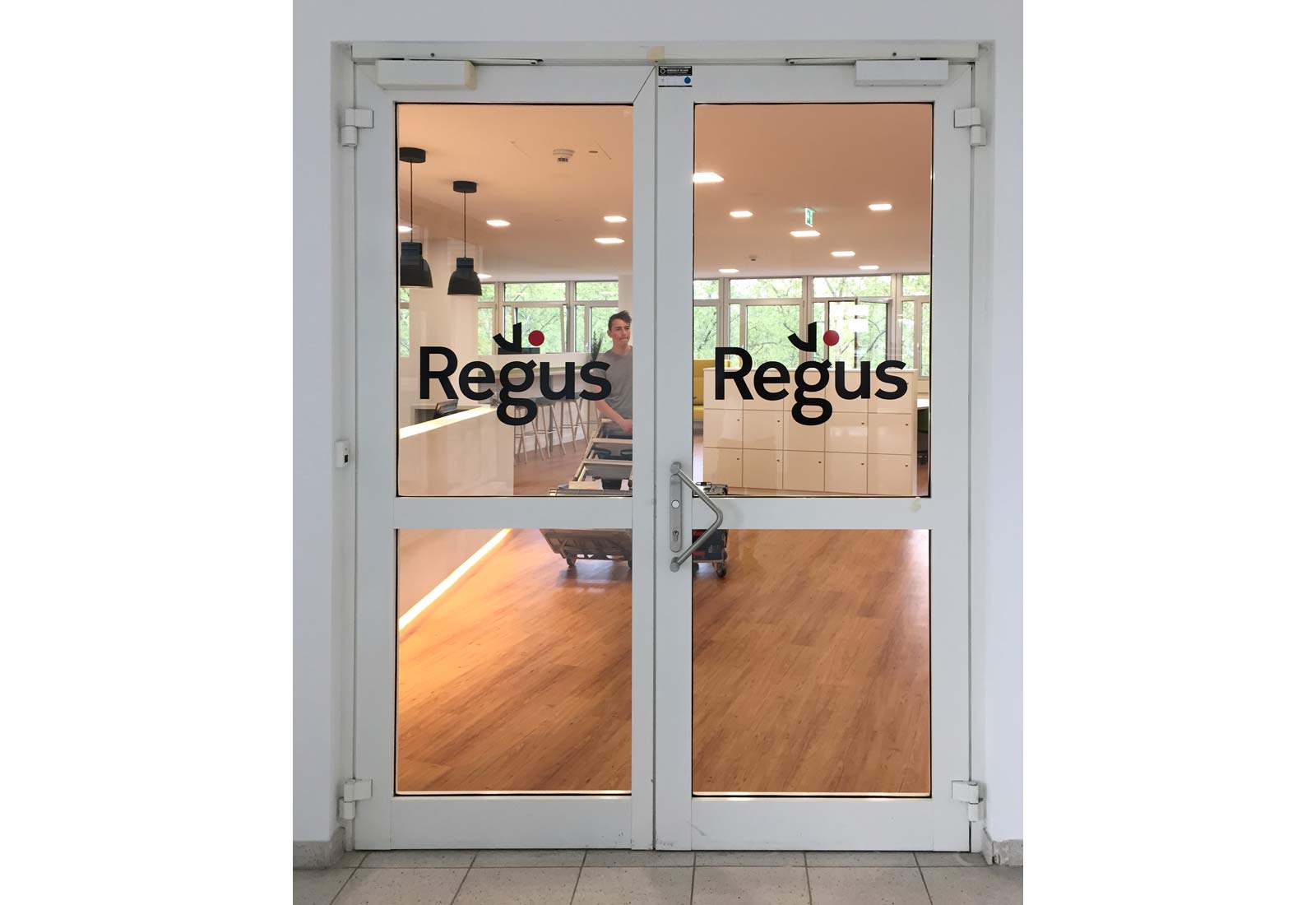 Für die Regus Management GmbH führte MARTINCOLOR die komplette Beklebung der Büro- und Geschäftsräume in mehreren deutschen Standpunkten durch. Da die Büros auf in den jeweiligen Mietetagen oft aus Glaswänden bestehen, wurde von MARTINCOLOR ein entsprechender Sichtschutz erstellt und von unseren Montageprofis vor Ort angebracht. MARTINCOLOR ist Spezialist für Büroeinrichtungen, Büroausstattungen und Beschilderungen aber auch für die Produktion von großformatigen Drucken. Dabei ist gerade Tapetendruck interessant für die Individualisierung von Büroetagen. Gerne berät Sie hierzu einer unserer Spezialisten unter Tel. +49 (0) 69 756080-27.