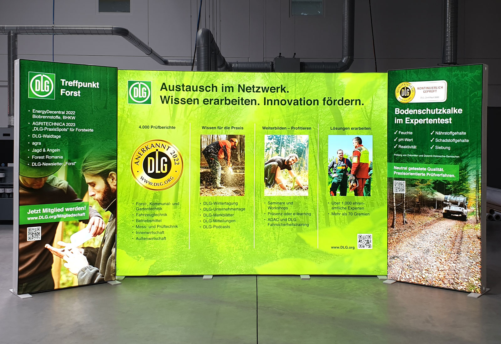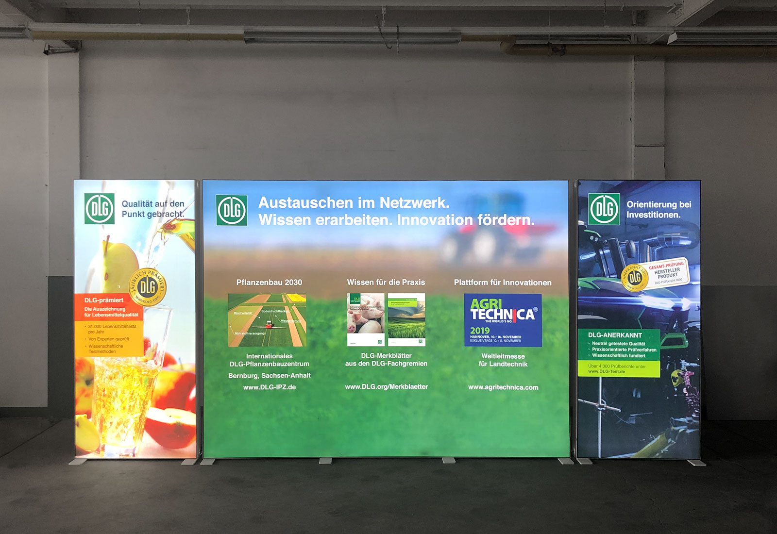 Die Deutsche Landwirtschafts-Gesellschaft ist ein Trendsetter, wenn es um aufmerksamkeitsstarkes Messe-Equipment für Präsentationen, Ausstellungen und Messen geht. Auf der Suche nach einem passenden Präsentationssystem fiel die Wahl auf PIXLIP GO Leuchtwände. Die leuchtstarken LED-Displays überzeugen durch einen günstigen Preis, einfachen Aufbau und kleinteiligen Transport. Der auf den Referenzfotos gezeigte Messestand passt in einen PKW! PIXLIP GO Leuchtwände gibt es in Systemhöhen bis 2,5 m und Breiten bis 3 m. Alle PIXLIP GO Systeme leuchten doppelseitig, sodass eine individuellen Diabespannung sowohl auf der System-Vorderseite als auch auf der -Rückseite in die Systemnut eingesteckt wird. Natürlich können alle LED-Wände mit speziellen Adaptern miteinader verbunden werden.