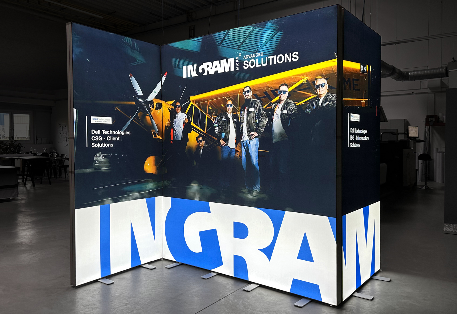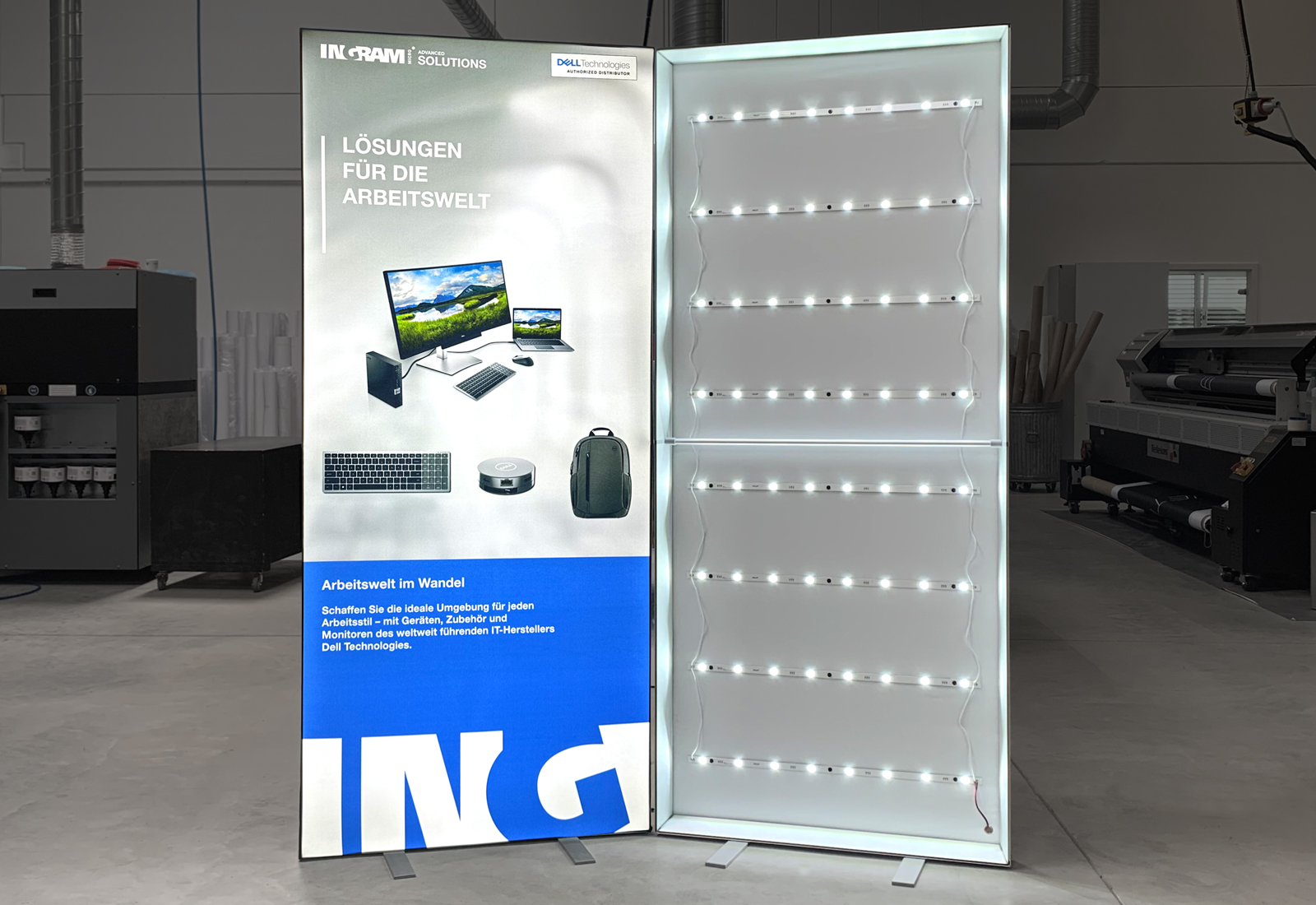 Das Ziel ist: groß rauskommen! Um das zu gewährleisten, haben wir für die Firma „Ingram Micro Distribution GmbH“ die großen Leuchtwände ALU LightUp und mehrere PIXLIP POP produziert.
