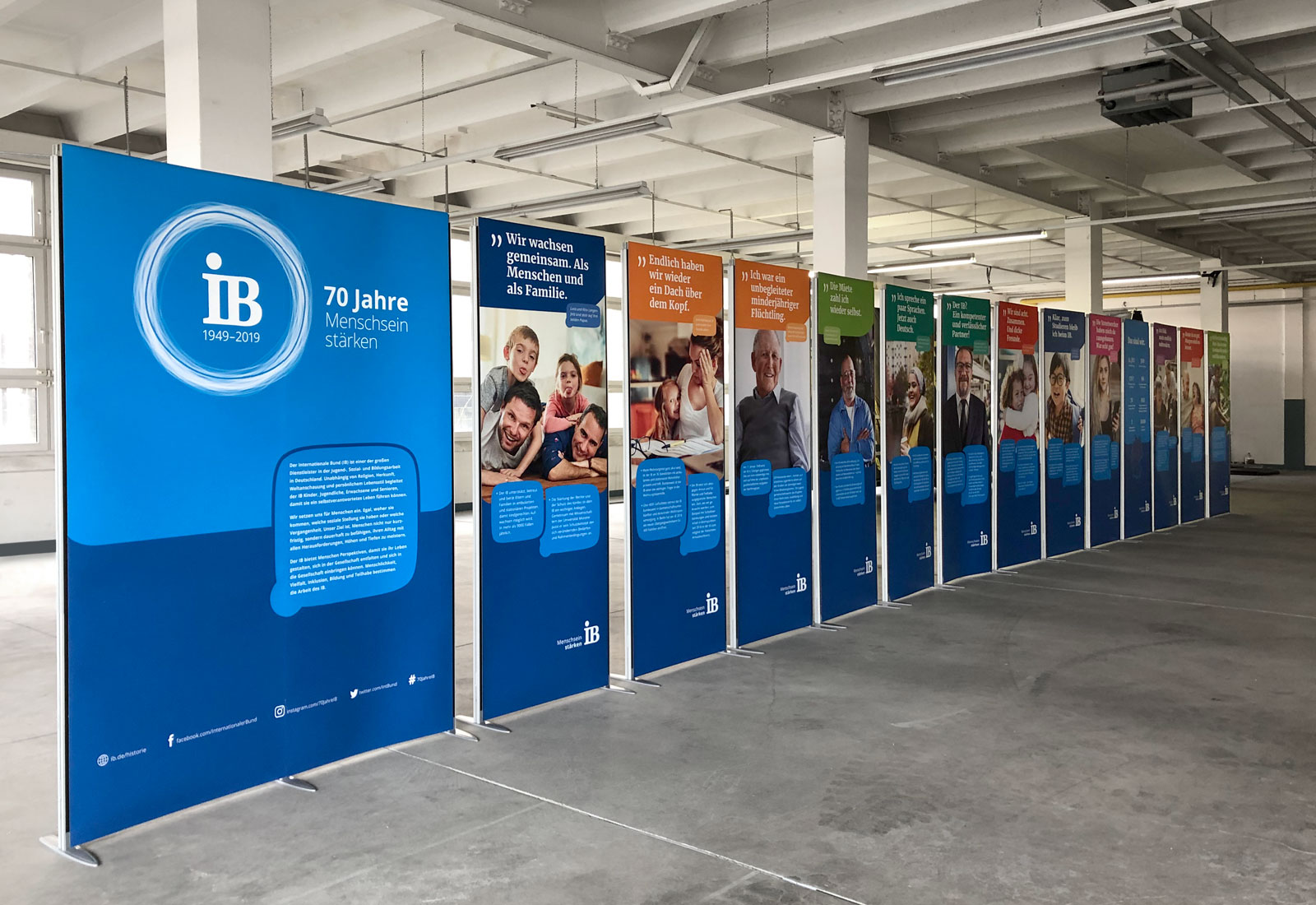 Eine besondere Anwendung für das flexible Messestand-System ISOframe Wave realisierten wir für unseren Kunden Internationaler Bund. Normalerweise wird ISOframe Wave für großformatige Messewände eingesetzt, die flexibel an jeweilige Standflächen angepasst werden sollen. Bei der Wanderausstellung zum 70-jährigen Bestehen des IB wurde eine neue Ausstellungsform für ISOframe Wave geplant. Denn ISOframe Wave lässt sich auch als einzelner Aufsteller einsetzen und ist damit besonders flexibel und individuell aufstellbar. Überzeugen Sie sich in unserem Showroom von den vielseitigen Einsatz von ISOframe wave.