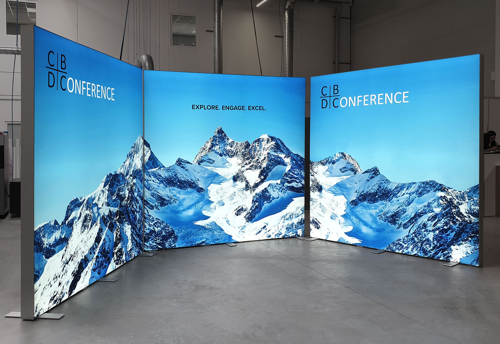Für die Agentur Lighthouse Communications produzierten wir 3 große ALU STAR LED-Wände mit beeindruckendem Bergpanorama. Durch die flexible Gestaltung lassen sich die Leuchtwände auch einzeln einsetzen.