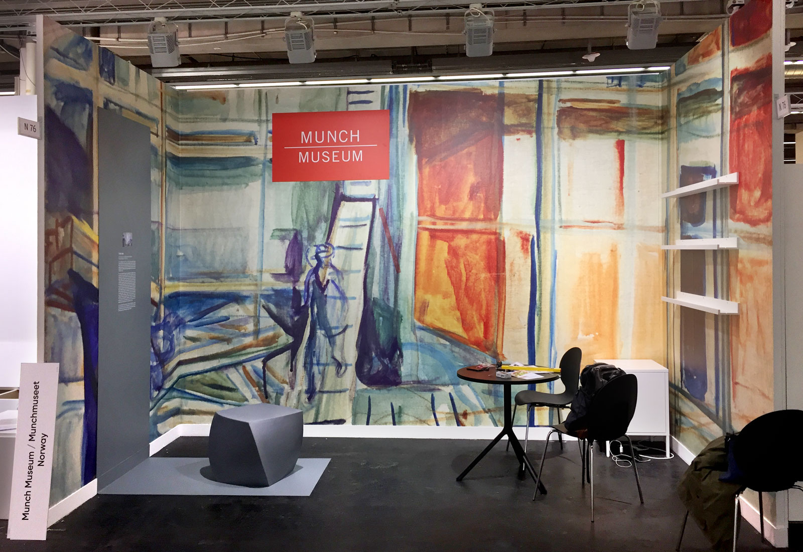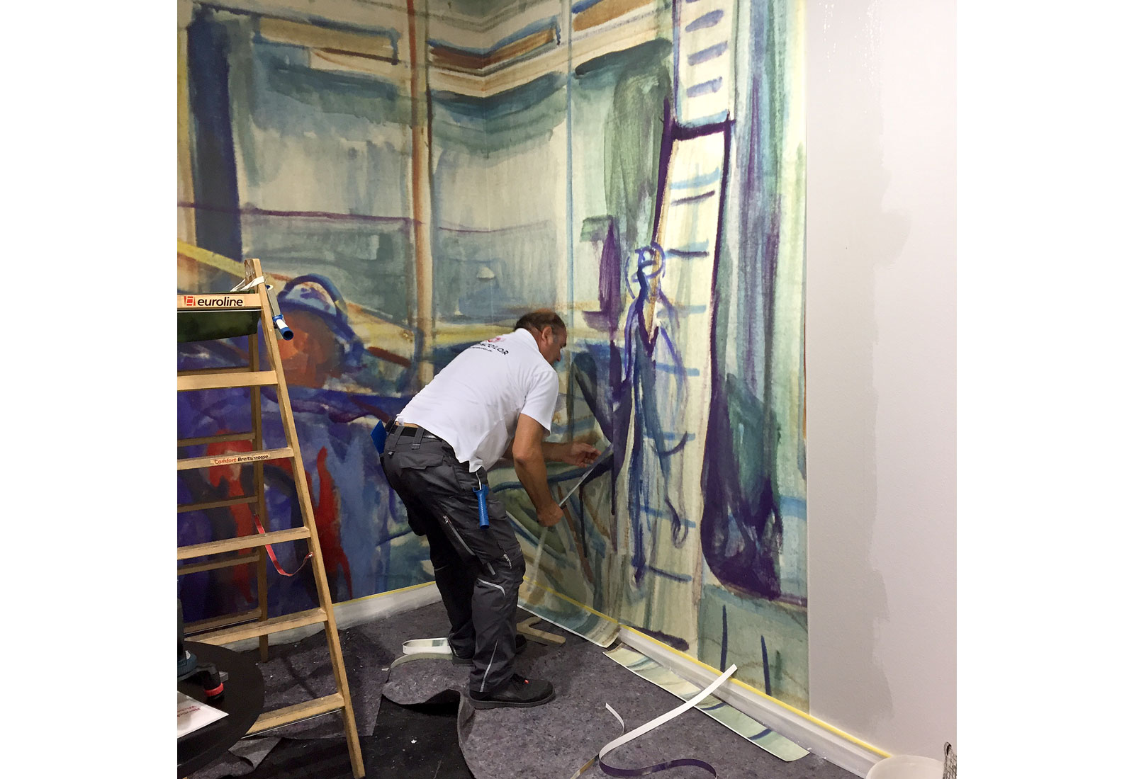 Für das Edvard Munch Museum in Oslo fertigten wir auf der Frankfurter Buchmesse 2018 einen 3-seitigen Messestand. Als besonderes Highlight wurde der Messestand komplett mit einem Gemäldemotiv des Künstlers tapeziert. Nicht nur auf Messen und Verstaltungen erfreuen sich großformatige Tapetenbilder wachsender Beliebtheit. Auch zur Individualisierung von Büroflächen werden immer mehr individuelle Tapetendrucke erstellt, die dann deutschlandweit von unseren Montageteams installiert werden. Für mehr Informationen zu diesem Projet erreichen Sie unseren Spezialsten Eric Zies unter Tel. +49 (0) 69 756080-84.