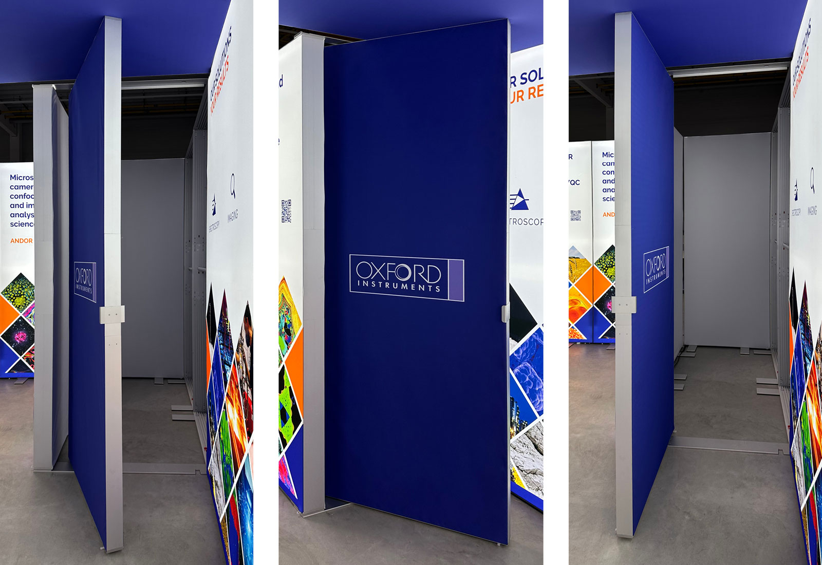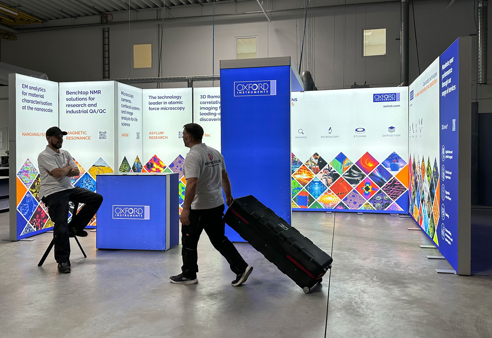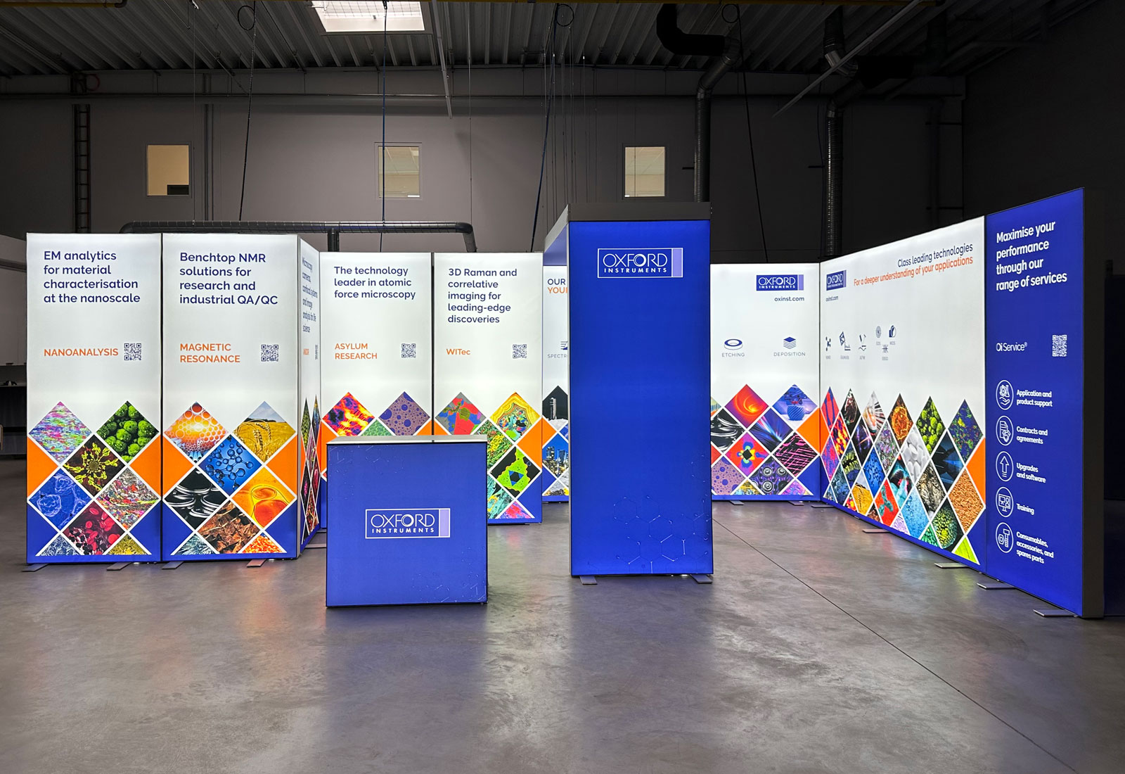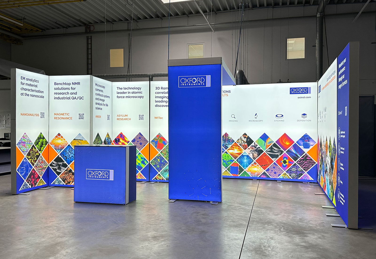 Für den Kunden „Oxford Instruments“ produzierte Martincolor den kompletten LED-Messestand ALU STAR mit der LED-Theke ALU STAR PLUS. Durch die bereits in den 12 cm breiten Aluminiumprofilen integrierten Power-LEDs ist das grandiose Lichtspektakel garantiert. Der absolute Hingucker ist das Brückenmodul. Besonders praktisch ist der mit einer Tür verschließbare Lagerraum.