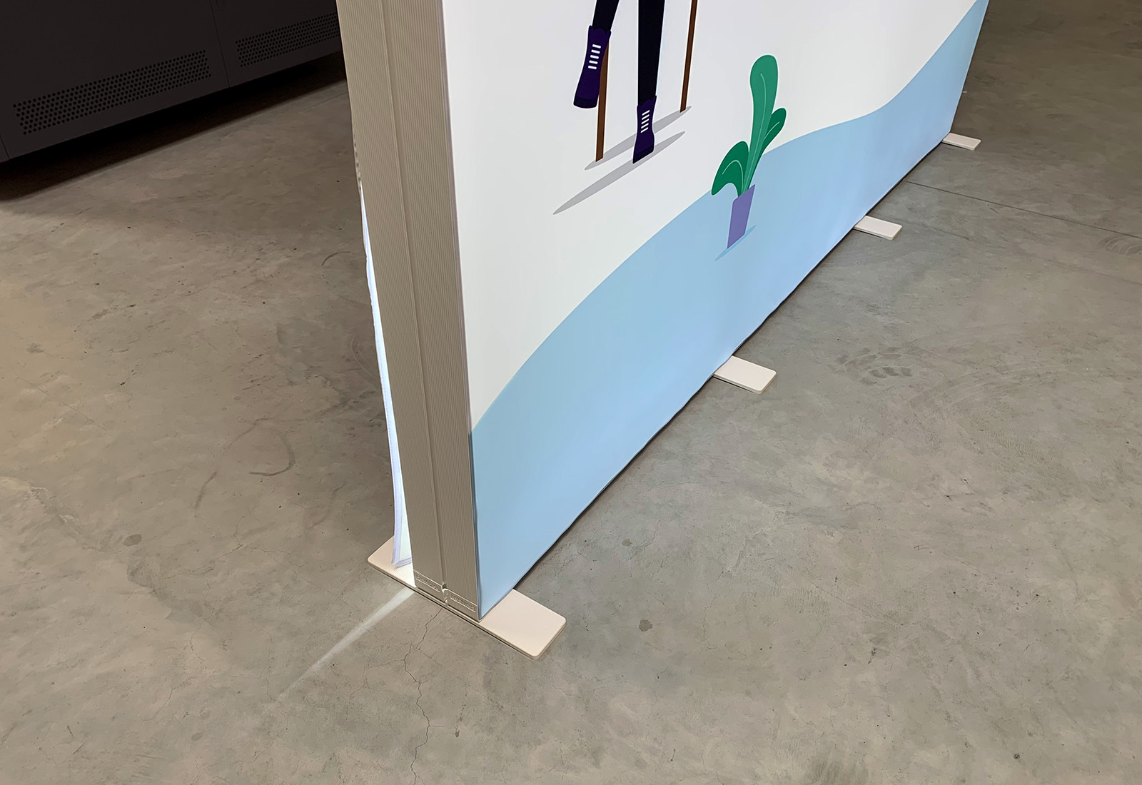 Wenn der Leuchtrahmen fertig zusammen gesteckt ist, wird dieser doppelseitig mit einem Diastoff bespannt.. Dann ist die LED-Messewand einsatzbereit. Haben Sie noch Fragen? Wir informieren Sie gerne über weitere Möglicheiten. Sie erreichen uns unter Tel. +49 (0) 69 756080-84.