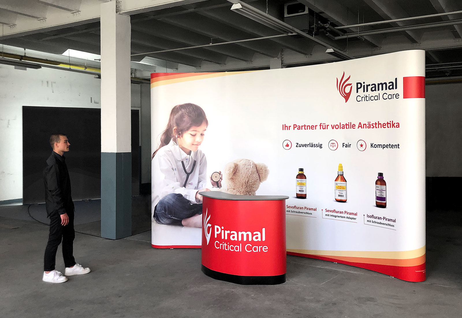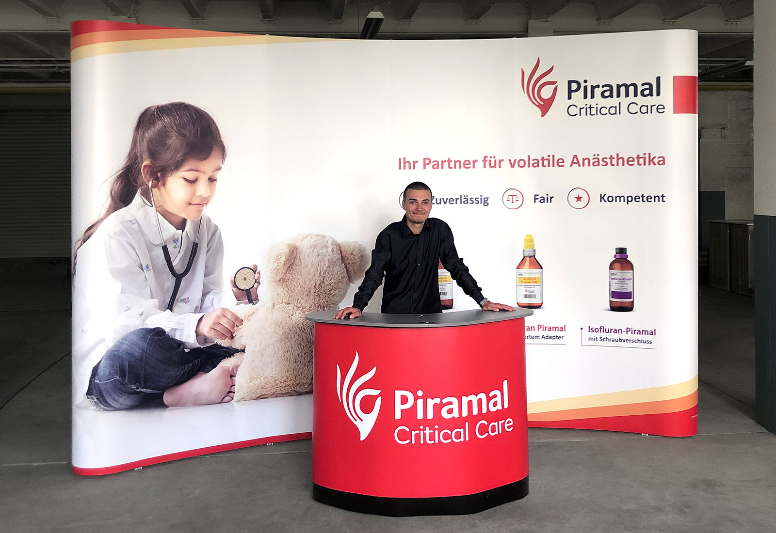 Überzeugen Sie auf Messen und Veranstaltungen mit einer megagroßen Faltwand! Die Expand MediaWall XL besteht aus einer Scherengitter-Struktur die mit einem einfachen PopUp-Mechanismus sekundenschnell aufgebaut wird. Die Systemhöhe beträgt 264 cm und die Systembreite entweder 390 cm oder 460 cm. Damit ist die Expand MediaWall XL das größste Faltdisplay weltweit! Der individuelle Grafikdruck, aufgeteilt in rollbare Grafikbahnen, wird mittels Magneten an dem XL-Faltdisplay angebracht. Zum Transport steht ein passender Transportkoffer zur Verfügung, der sich auf Wunsch zu einer Theke umbauen lässt. Die hier gezeigte XL-Faltwand haben wir für Piramal Critical Care erstellt.