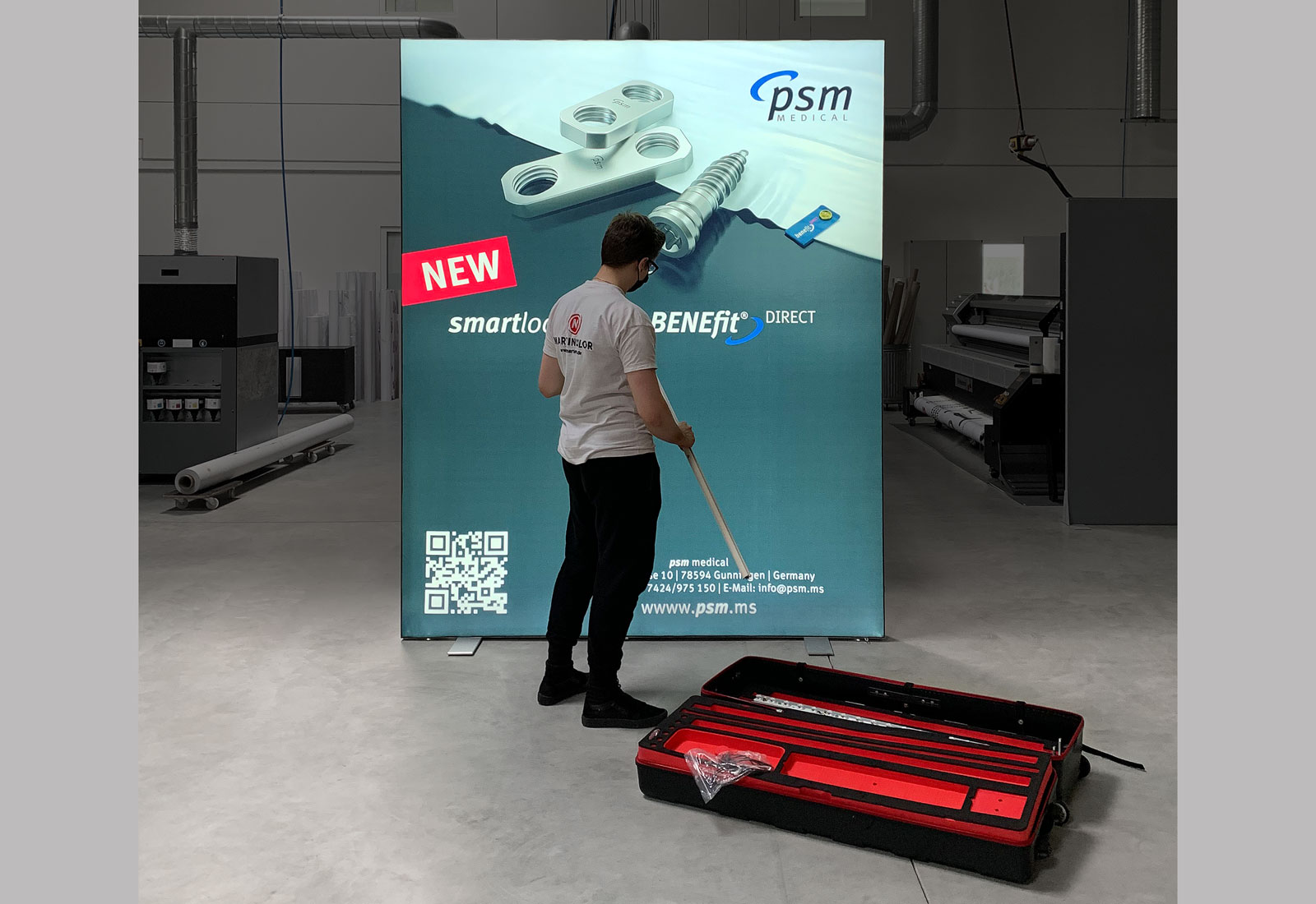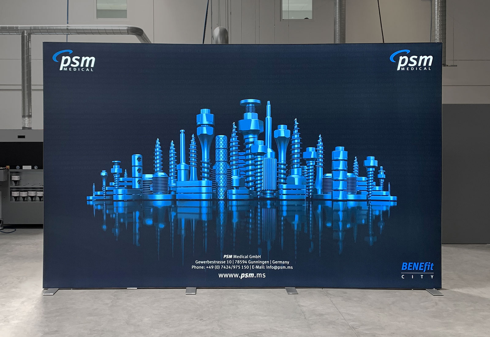 Die ALU STAR Leuchtwand ist unter den Leuchtwänden eine Innovation! Nichts ist beeindruckender als eine hellstrahlende Messewand auf dem Messestand, im Empfangsbereich oder auf einer Veranstaltung. Und genau das wollte unser Kunde „PSM Medical Solutions“ für sein Firmenauftritt erzielen: auffallend leuchten!