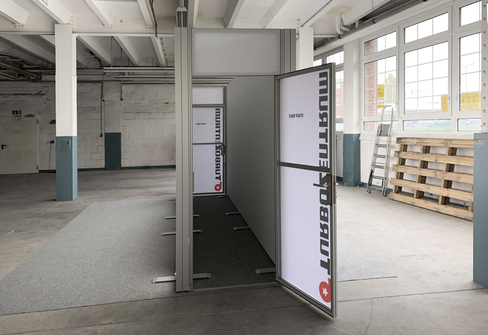 Für das Turbocentrum Berlin entwickelte das Team von MARTINCOLOR eine ganz besondere Leuchtwand. Dabei war das Ziel, eine LED-Lichtwand zu entwickeln, die sowohl als Hingucker auf dem Messestand als auch als Lagerraum funktioniert. Auch mussten genaue Systemmaße umgesetzt werden, da der leuchtende LED-Messestand direkt in ein bestehendes Messekonzept intgriert werden sollte. Die Wahl fiel auf eine OCTAlumina LED-Wand. OCTAlumina Leuchtwände lassen sich in jedem gewünschten Maß anfertigen. Die hier gezeigte LED-Lichtwand Lösung zeigt zwei OCTAlumina LED-Messewände, die gegeneinander gestellt wurden. Verbunden werden die Messewände an der kurzen Seite mit einem Türzargen-Modul aus der OCTAwall Familie. Mit dieser Lösung, lässt sich der praktische Lagerraum mitten auf dem Messestand platzieren. Eine tolle Idee!