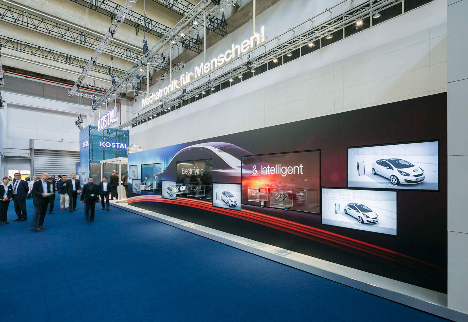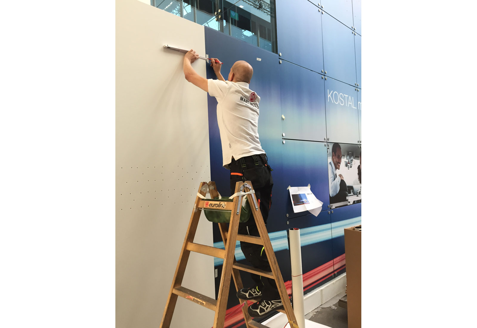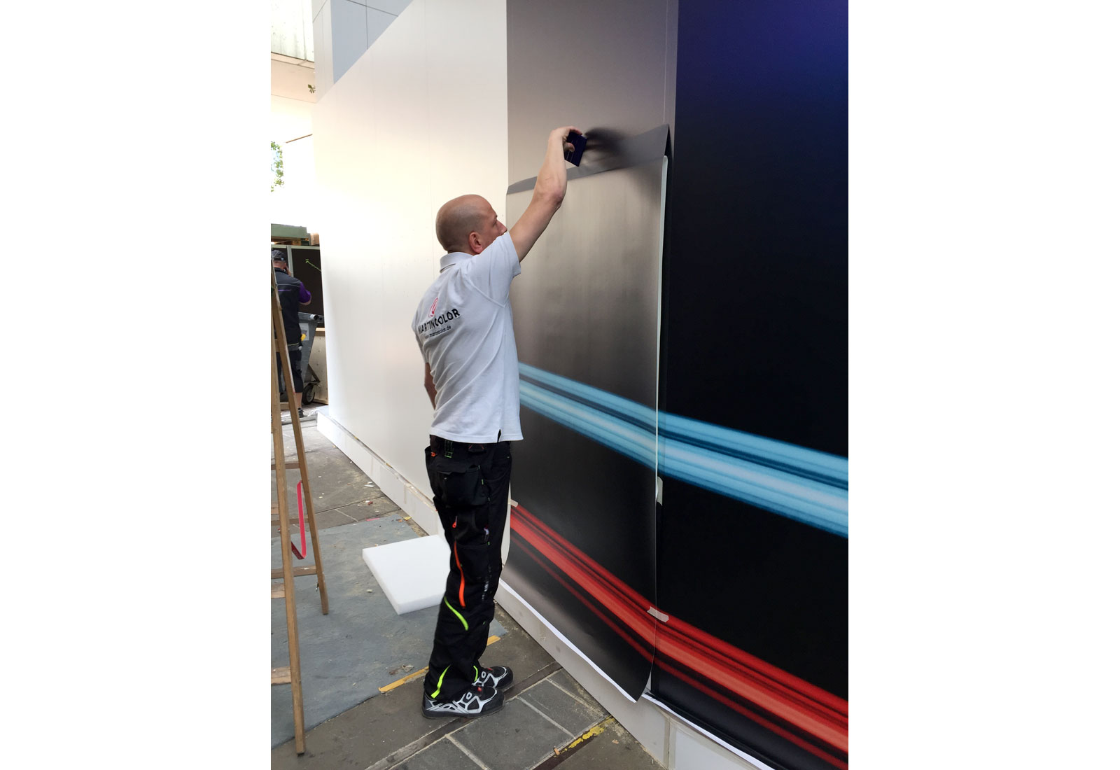 Das Montageteam von MARTINCOLOR führte im Auftrag der b+s exhibitions GmbH Design und Realisation für den Kunden Kostal die Montagearbeiten auf deren IAA-Messestand in Frankfurt aus. Im Vorfeld wurden zahlreiche Digitaldrucke auf Selbstklebefolien gefertigt, die auf vorhandene Glasplatten aufgebracht wurden. Diese wurden anschließend auf dem Kostal Messestand angebracht. Auch wurden größere Wandbeklebungen durchgeführt. Mehr Informationen zu unserem Montageservice erhalten Sie bei Eric Zies unter +49 (0) 69 75 60 80-0 oder e.zies(at)martincolor.de.