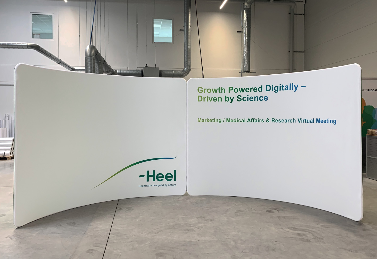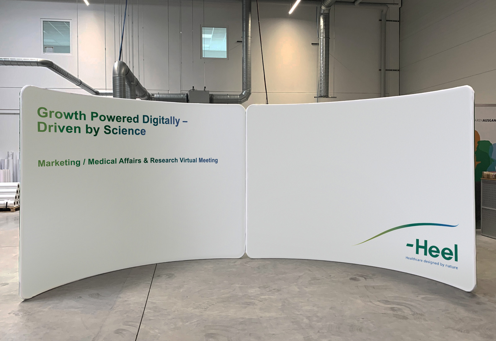 Der Hersteller für Biologische Heilmittel Heel, benötigte für interne Pressekonferenzen eine große, flexibel einsetzbare Rückwand. Die Wahl fiel hier auf unser Rückwand-System ZippWall, das sich besonders gut als Hintergrund für Videokonferenzen eignet.