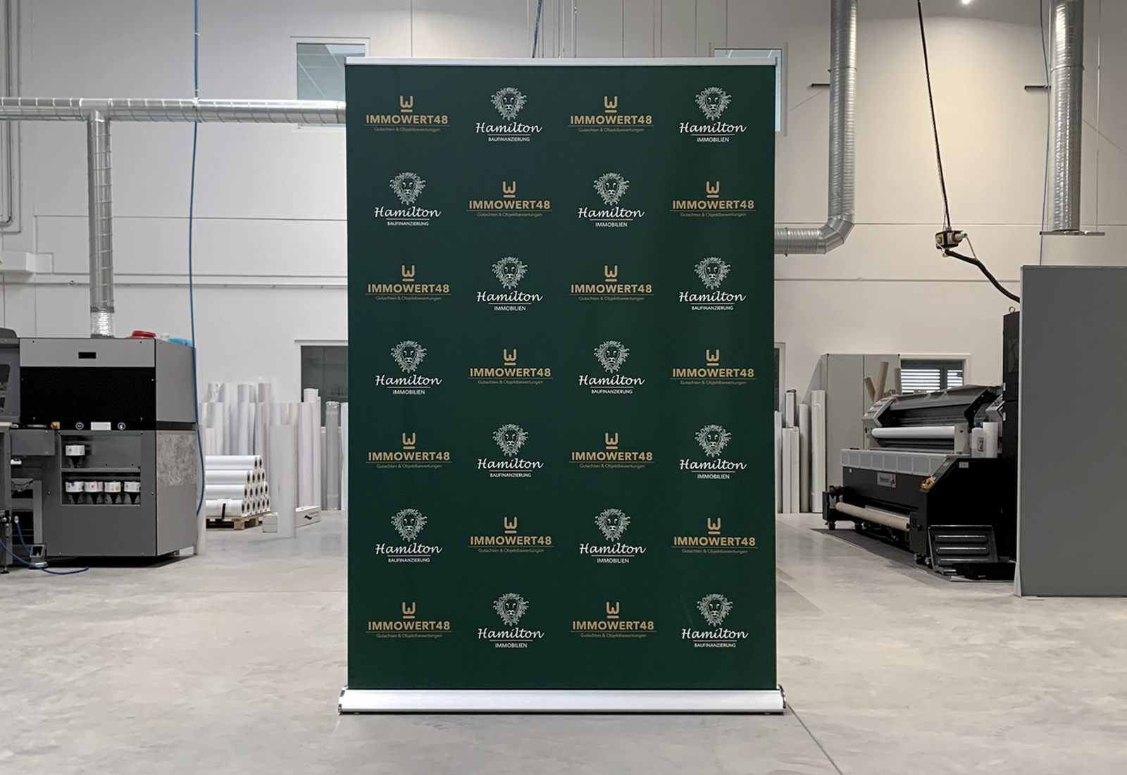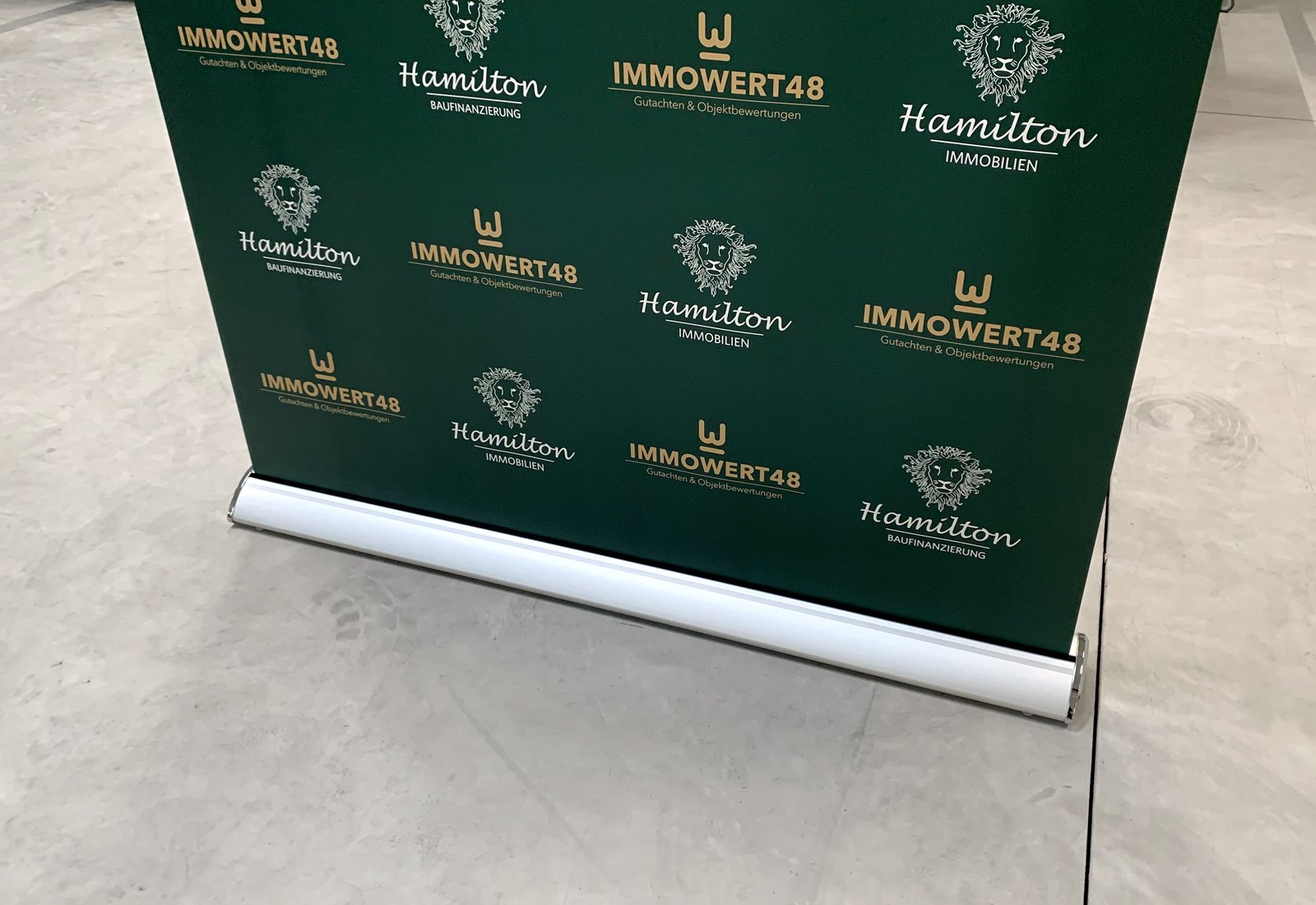 Bei unserem Kunden Hamiltion Immobilien GmbH fiel die Wahl auf ein RollUp PRO in 150 cm Breite.