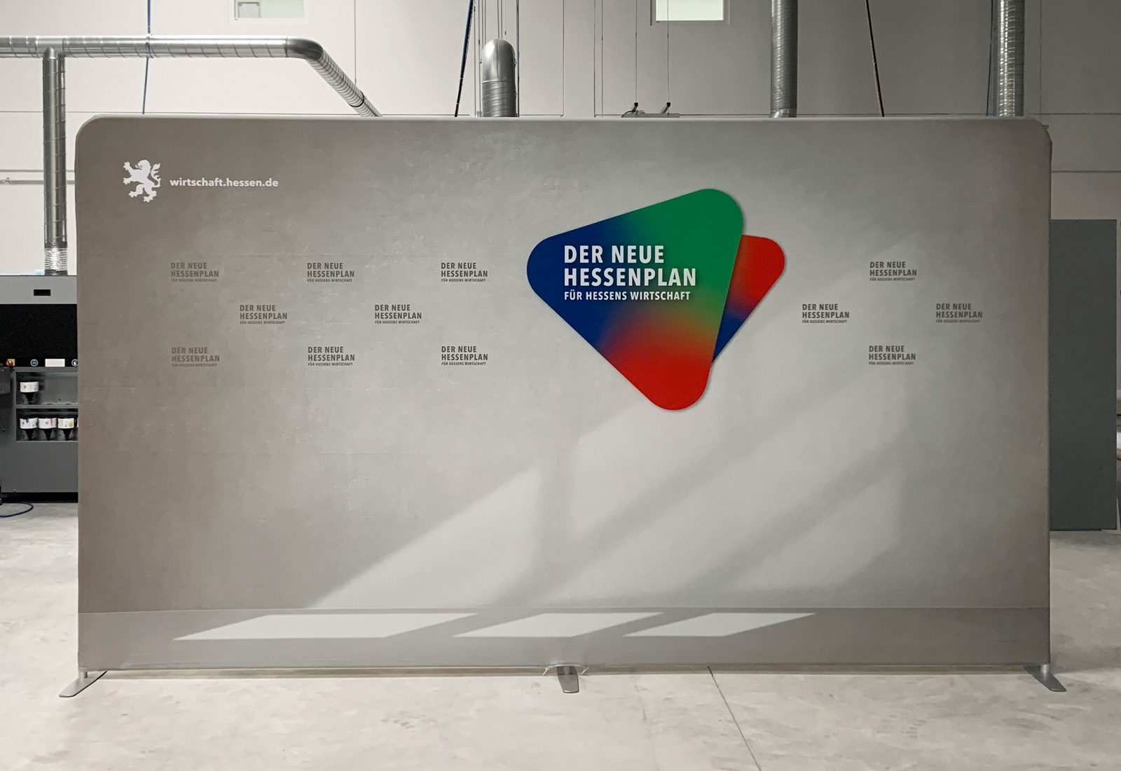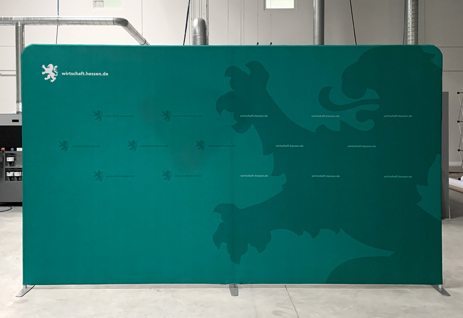 Für Online-Pressekonferenzen des Hessischen Ministerium für Wirtschaft, Energie, Verkehr und Wohnen produzierten wir Video-Rückwände bzw. freistehende Hintergründe für Videokonferenzen. Zum Einsatz kam unser BESTSELLER ZippWall. Die kinderleicht aufzubauende Videokonferenz-Rückwand ist in vielen Systembreiten lieferbar und kann doppelseitig mit einem individuellen Aufdruck versehen werden. Die von uns verwendete Bespannung ist absolut refelxfrei und deshalb ideal für Filmaufnahmen geeignet. Besonders praktisch ist, dass sich das Material in einer ganz normalen Waschmaschine bei 30 Grad waschen lässt.
