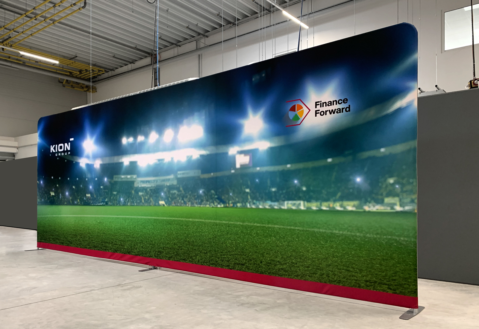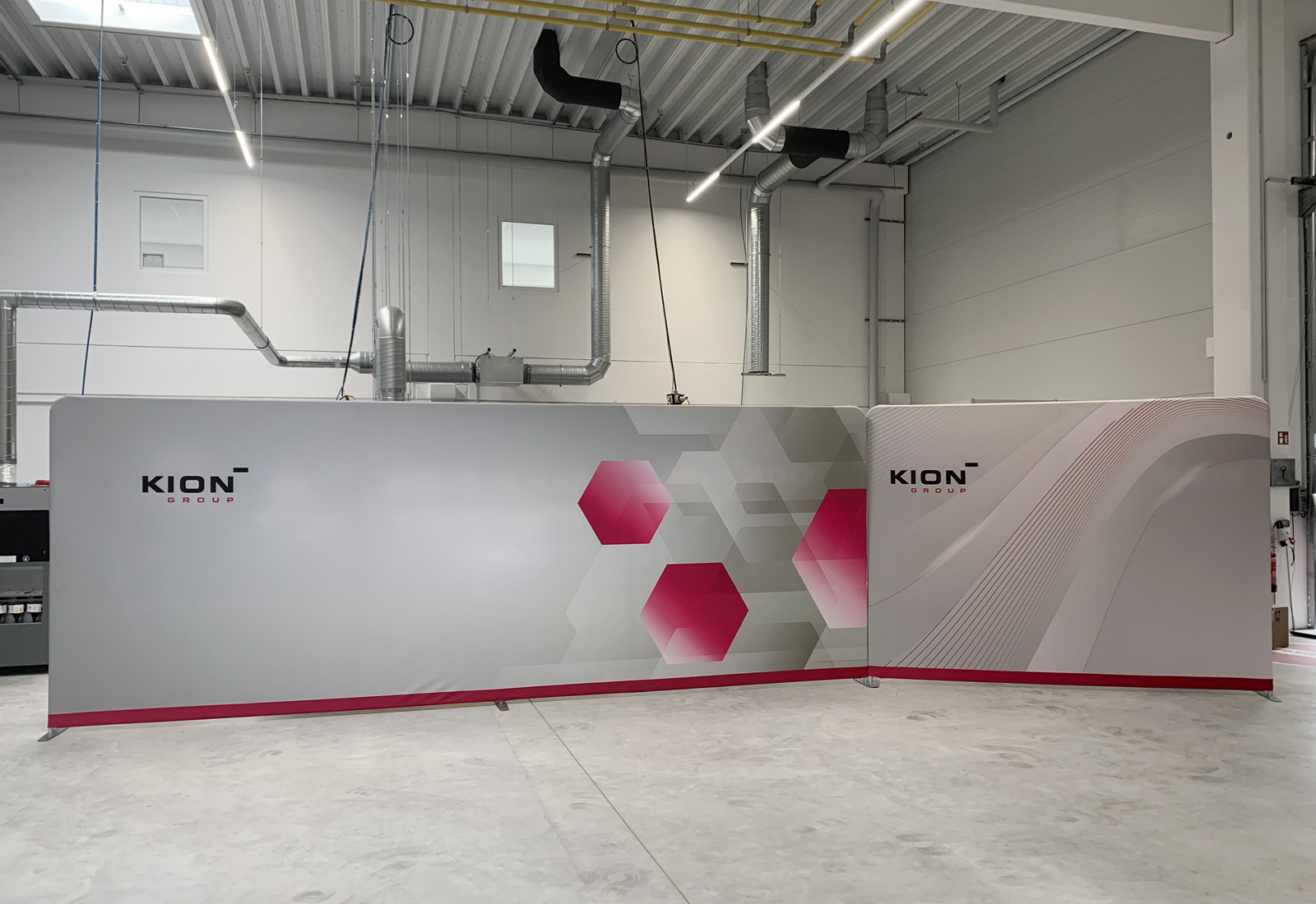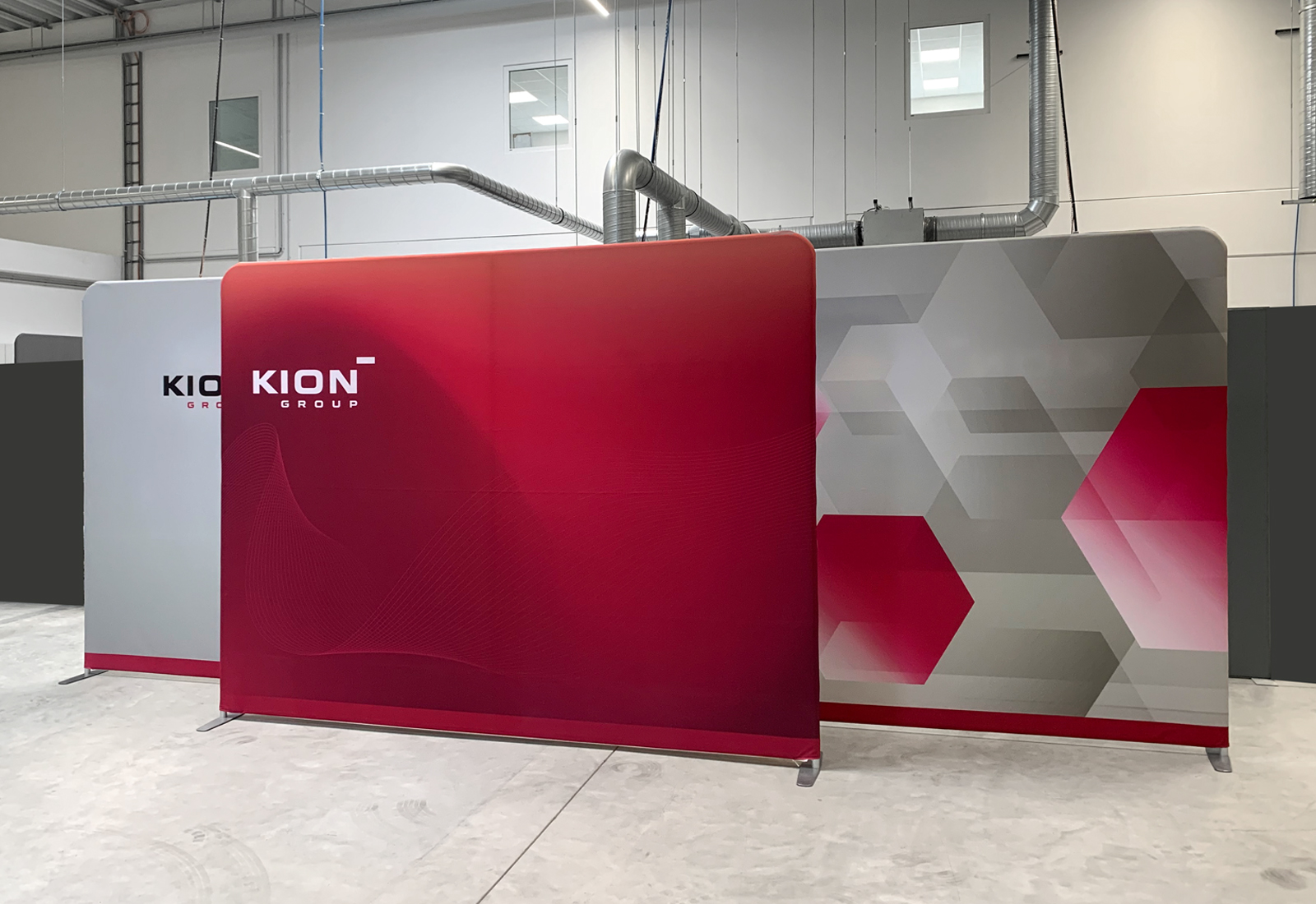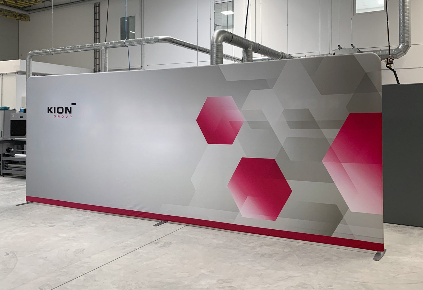 Unsere ZippWall Rückwände gibt es in vielen Systembreiten. Bei den Rückwänden, die wir für die KION Group produziert haben, werden ZippWalls in den Breiten 300 cm, 500 cm und 600 cm miteinander kombiniert. Alle hier gezeigten Wände wurden doppelseitig bedruckt, sodass je nach Einsatz die Vorderseite der ZippWall oder die Rückseite gezeigt wird. Die textile Bespannung ist völlig reflexfrei und knitterarm und deshalb perfekt als Rückwand für Online-Meetings geeignet. Mehr Infos erhalten Sie telefonisch unter +49 (0) 69 756080-0.