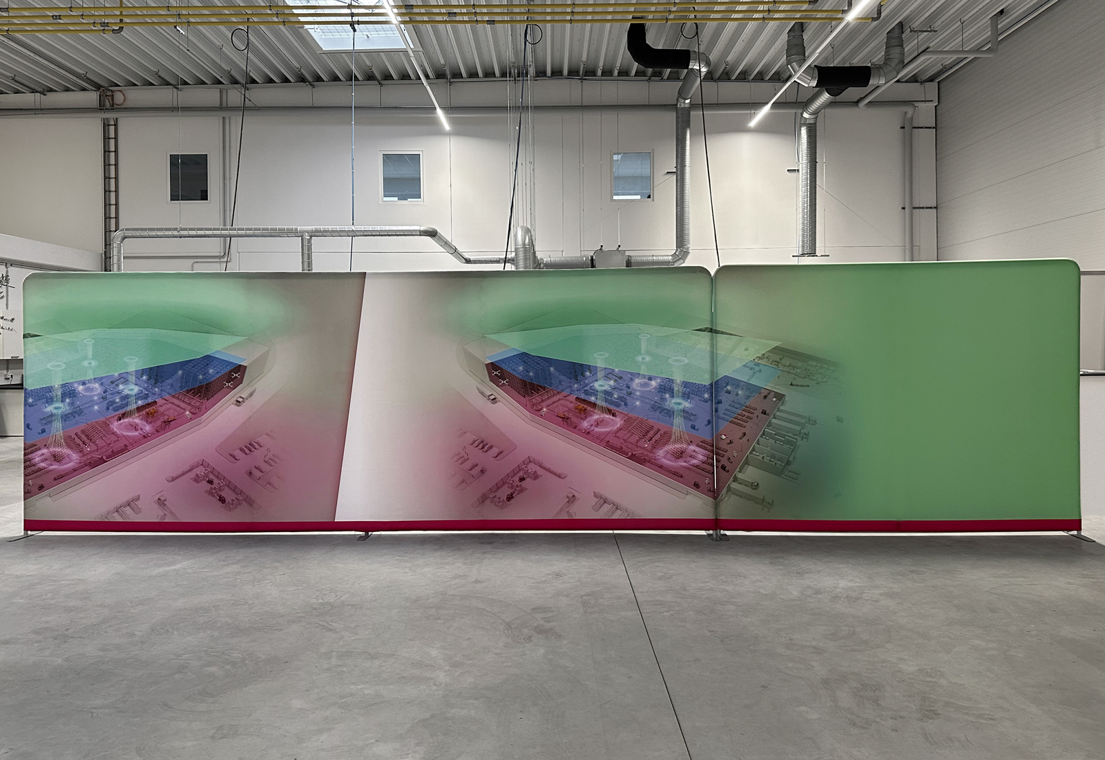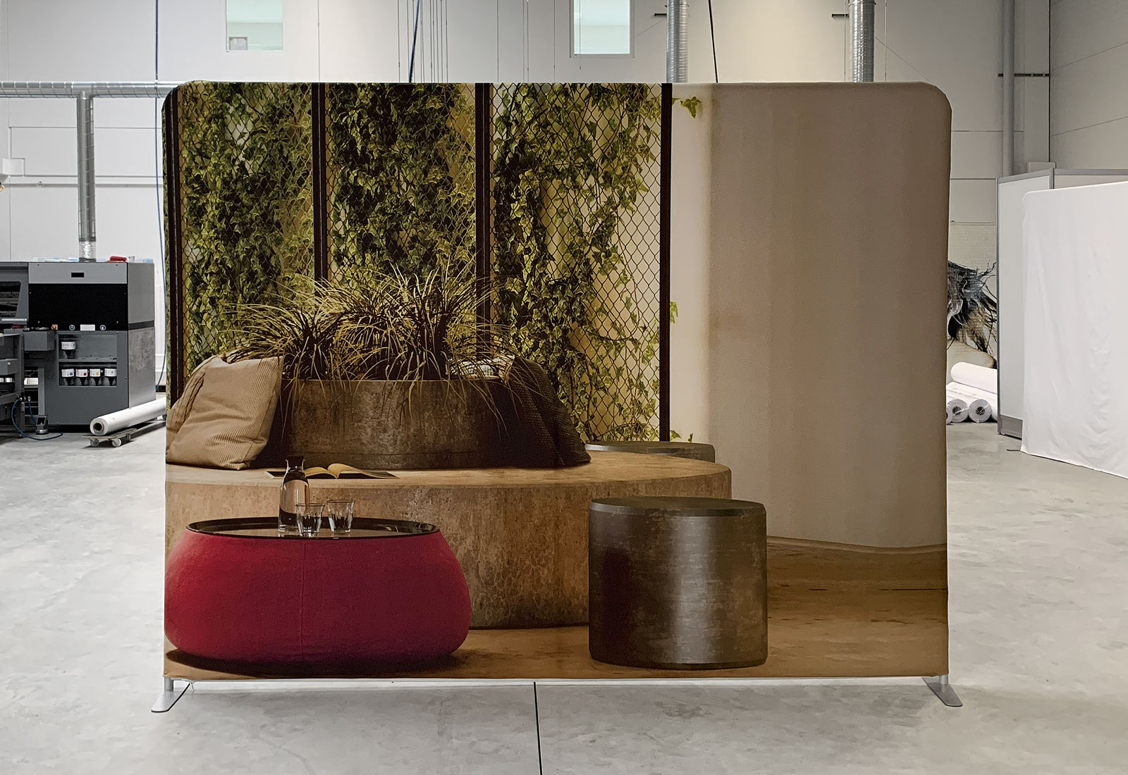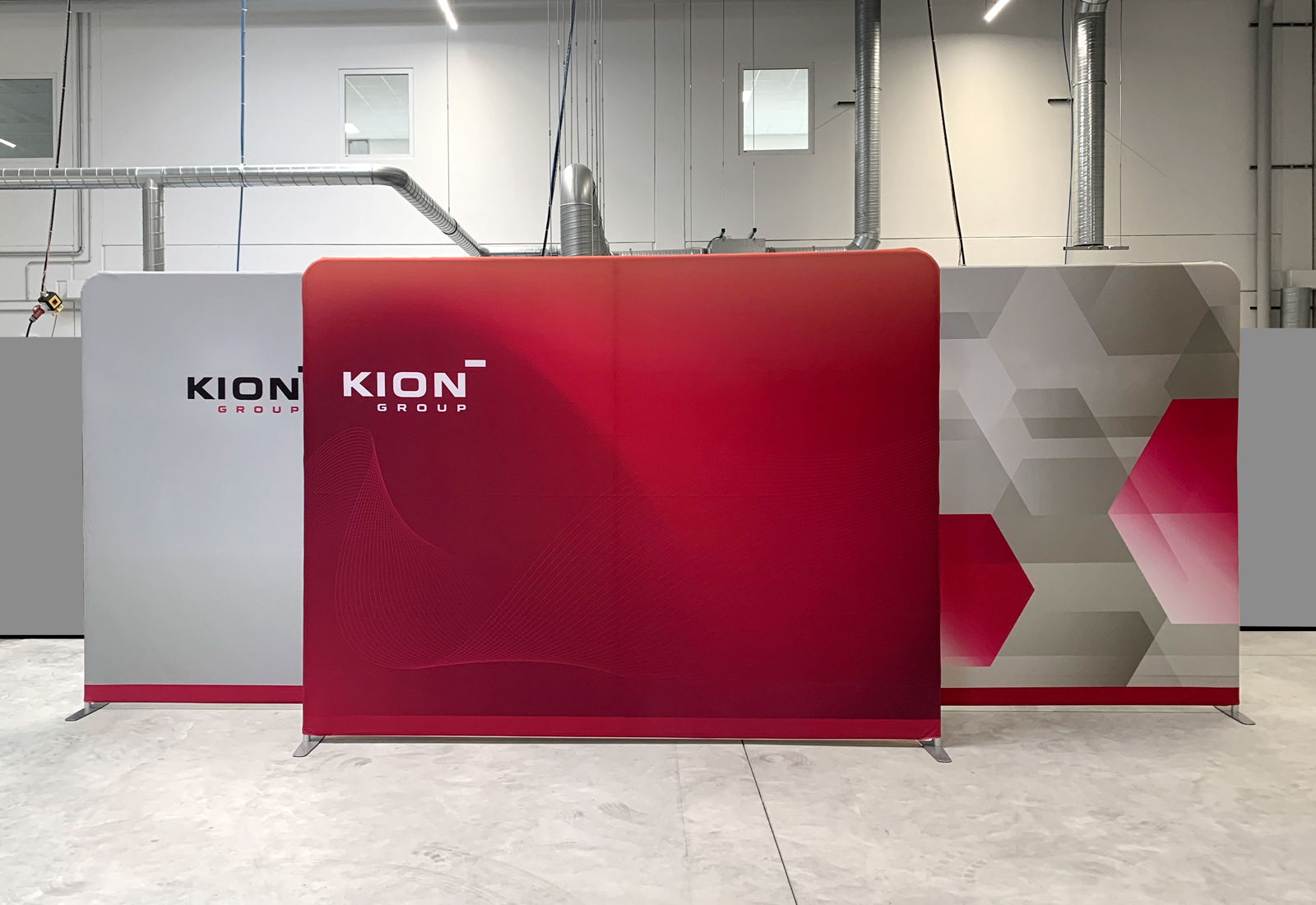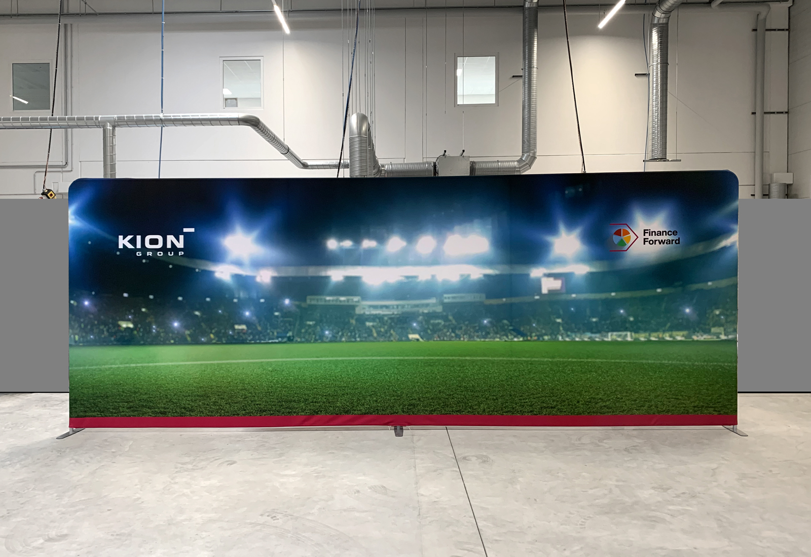 Unsere ZippWall Rückwände gibt es in vielen Systembreiten. Bei den Rückwänden, die wir für die KION Group produziert haben, werden ZippWalls in den Breiten 300 cm, 500 cm und 600 cm miteinander kombiniert. Alle hier gezeigten Wände wurden doppelseitig bedruckt, sodass je nach Einsatz die Vorderseite der ZippWall oder die Rückseite gezeigt wird. Die textile Bespannung ist völlig reflexfrei und knitterarm und deshalb perfekt als Rückwand für Online-Meetings geeignet. Mehr Infos erhalten Sie telefonisch unter +49 (0) 69 756080-0.