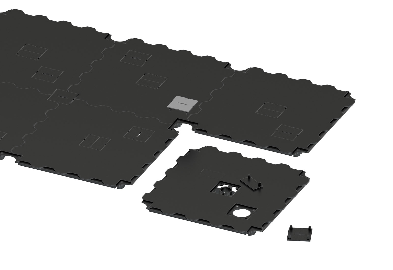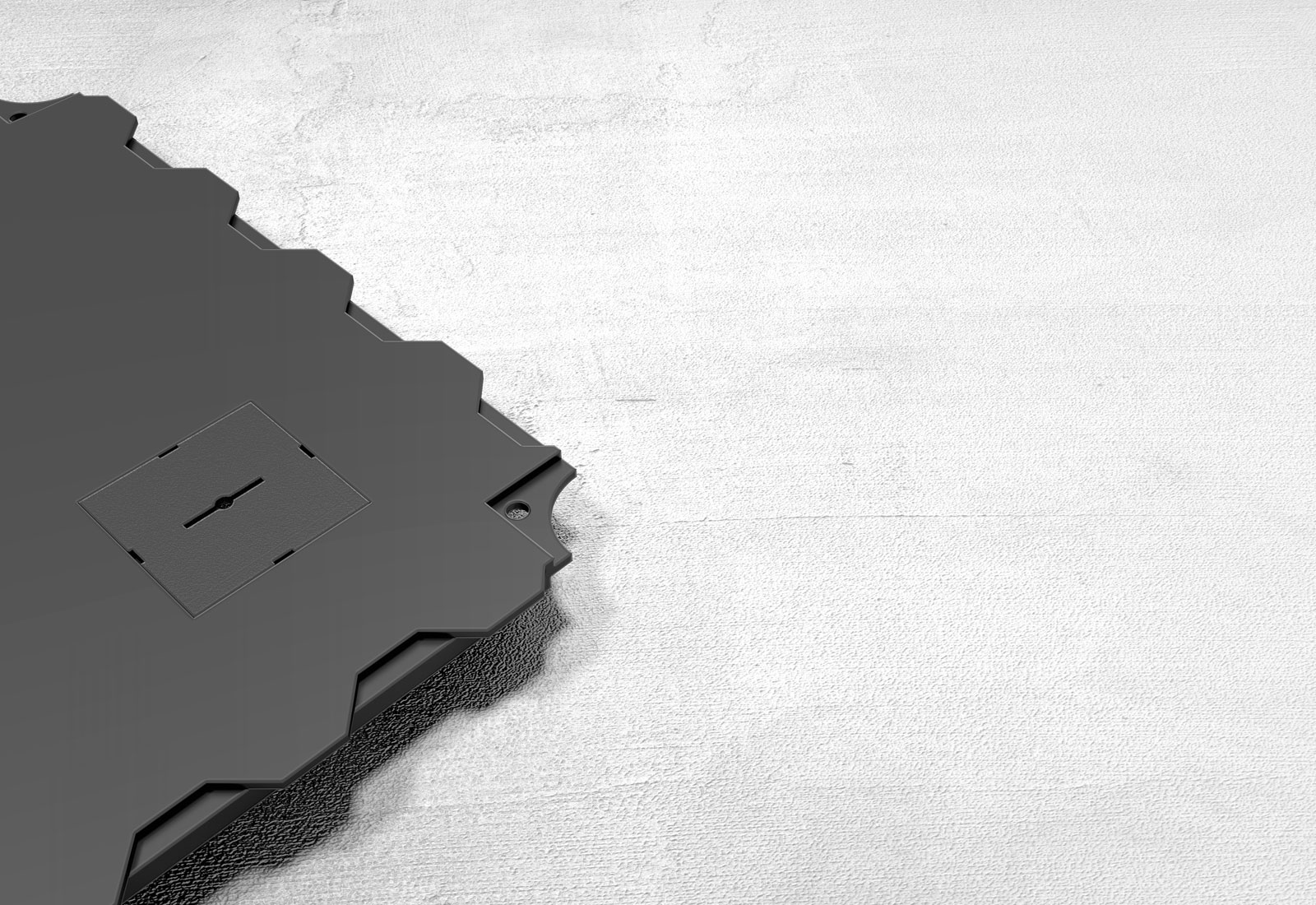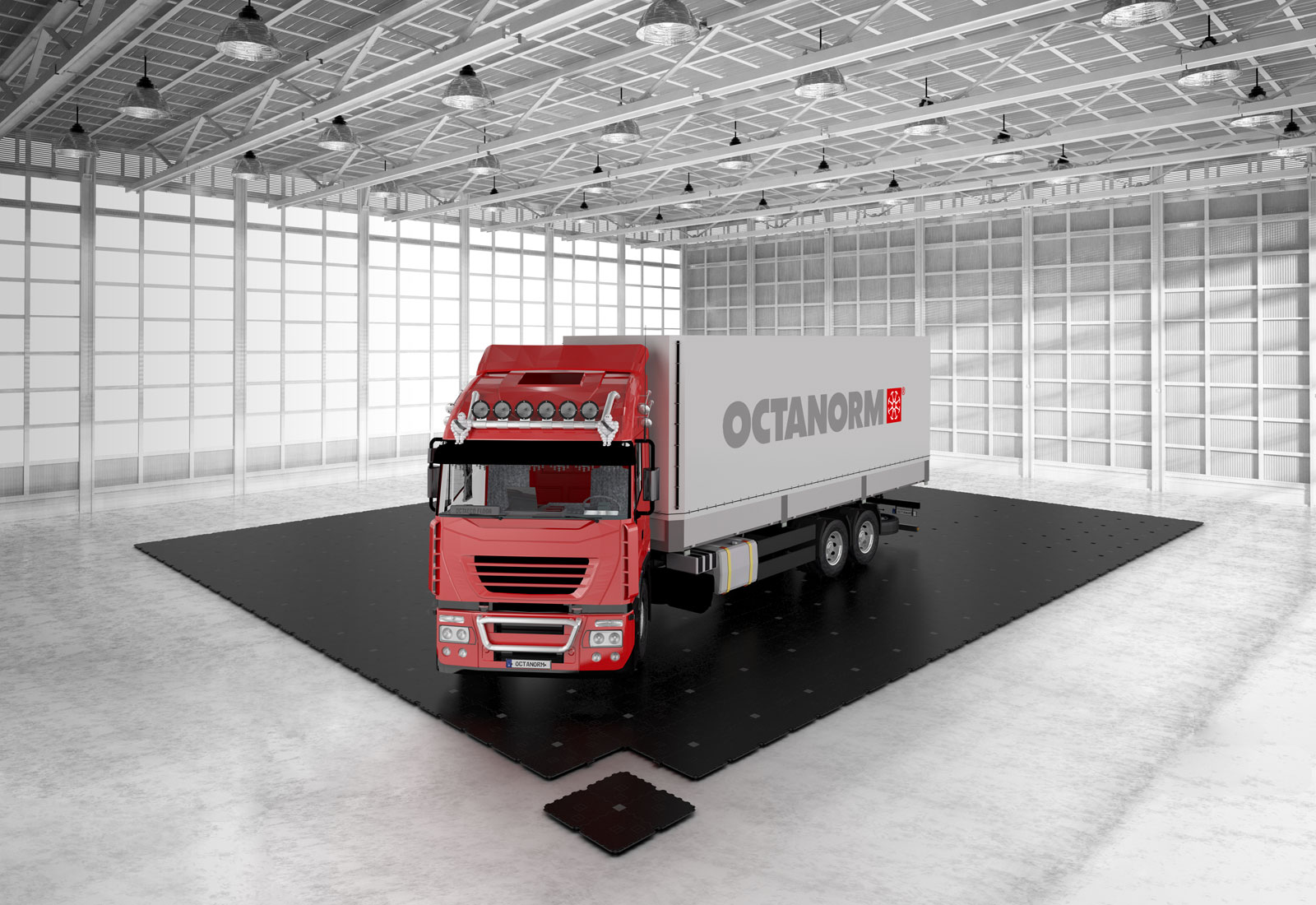 Der Messeboden OCTAeco floor zeichnet sich durch eine extrem schnelle Montage aus. Schauen Sie sich unserer Video an, hier montieren 3 Mann innerhalb von 10 Minuten 50 m² Messeboden. Die einzelnen Platten besitzen eine Größe von 500 x 500 mm. Die Aufbauhöhe des OCTAeco floors ist sehr flach, wobei die einzelne Platte trotz geringem Eigengewicht (12 kg/m²) extrem tragfähig (20.000 kg/m²) ist. Für die Verlegung von Kabeln und Strom bietet der Messeboden OCTAeco floor bis zu 17 Bodenauslässe je m². Dieser innovative Messeboden, der zu 100% aus recyceltem Kunststoff hergestellt wird, ist extrem strapazierfähig und unempfindlich gegen Feuchtigkeit und Temperaturschwankungen. Der Transport erfolgt auf einer Euro-Palette (40 – 50 m² je Palette).