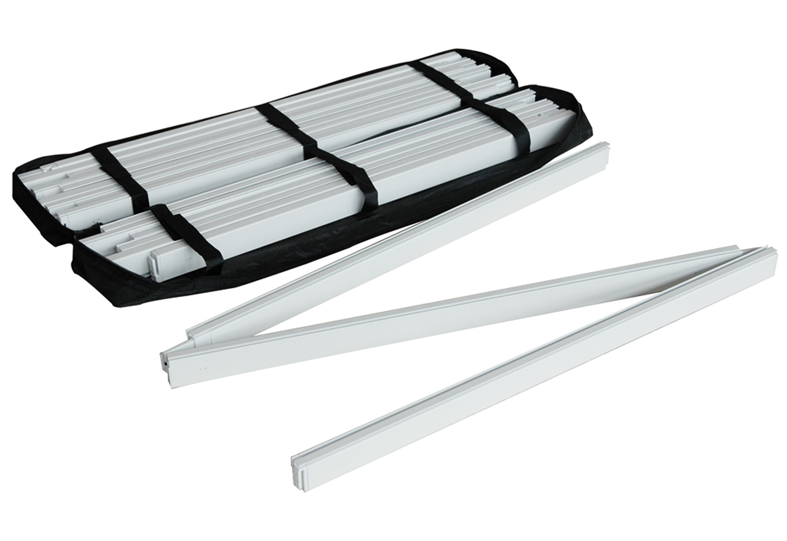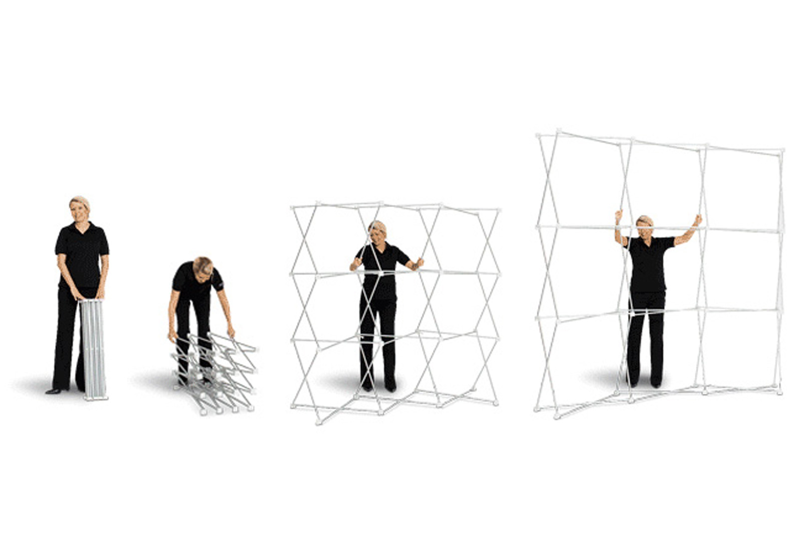 Die GRID Faltwand ist ein Update unserer bekannten Textil-Faltwand Easy Fabric. Wie diese auch, bietet GRID eine der schnellsten Möglichkeiten zur attraktiven Bild- bzw. Informationspräsentation. Während jedoch bei Easy Fabric der Stoff mit einer Klett-Flausch-Verbindung am System befestigt ist, wird bei GRID der Stoff mittels eines Gummikeders an der umlaufenden Nut am System angebracht. So wird der Stoff völlig knitterfrei gespannt. Trotzdem geht der Aufbau so schnell, dass innerhalb von wenigen Minuten eine Bildwand von 5 m² aufgebaut ist.
